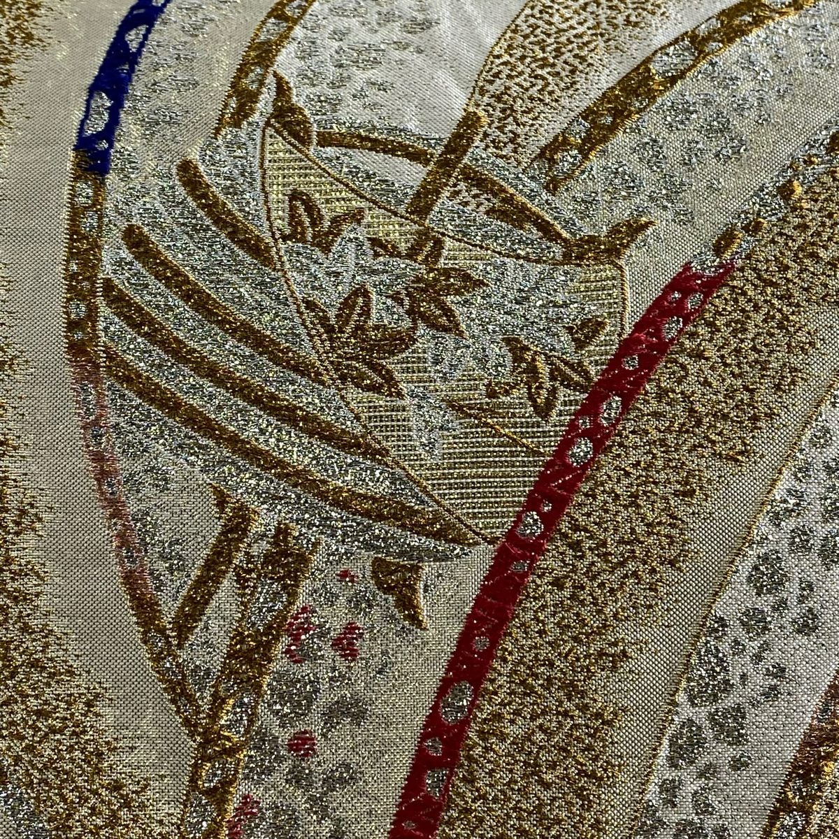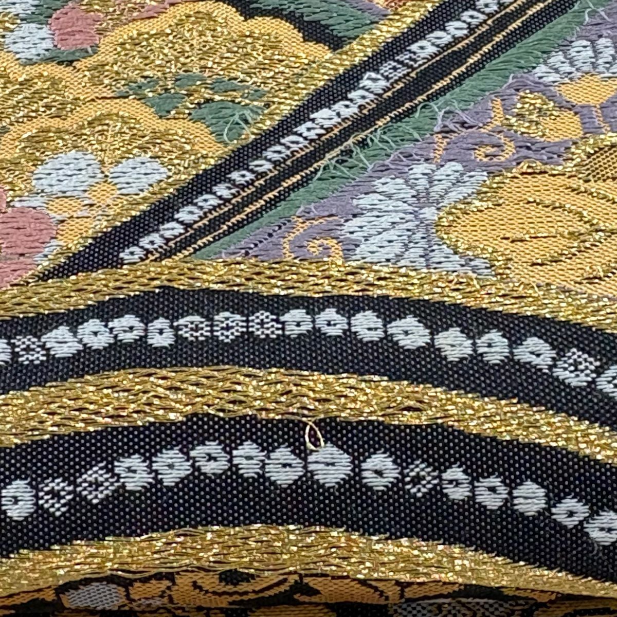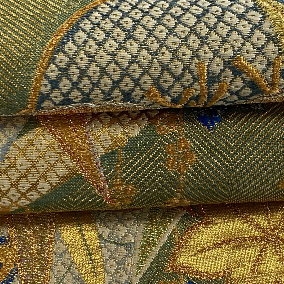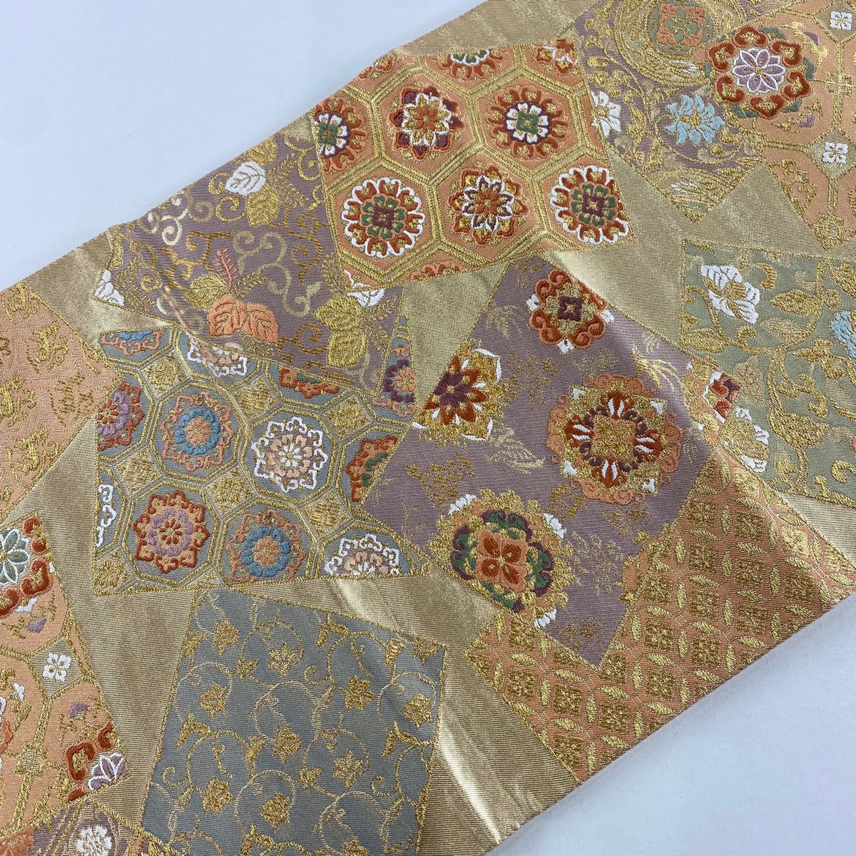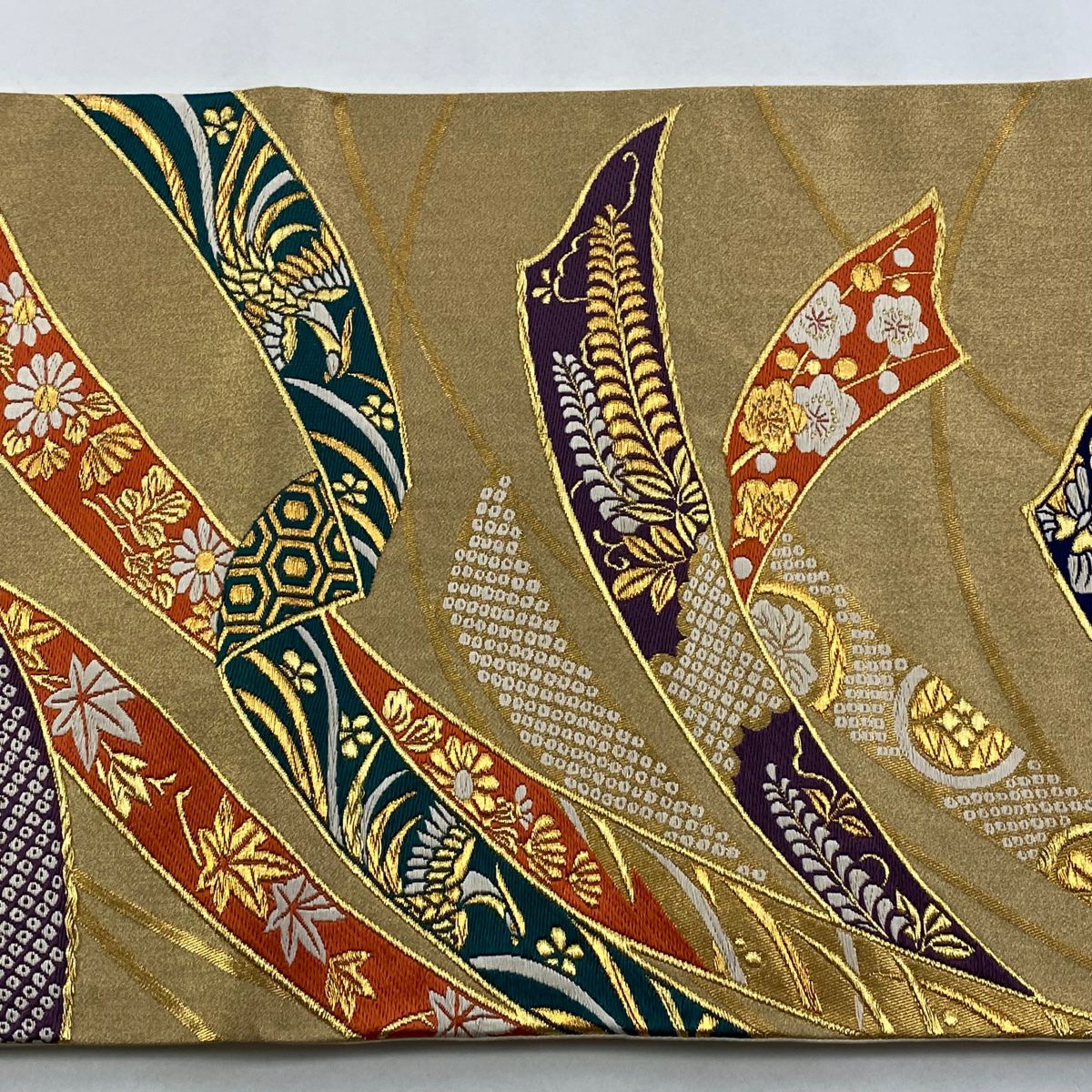 【在庫一掃】 【美品】 袋帯 秀品 幾何学 箔 金色 六通 正絹