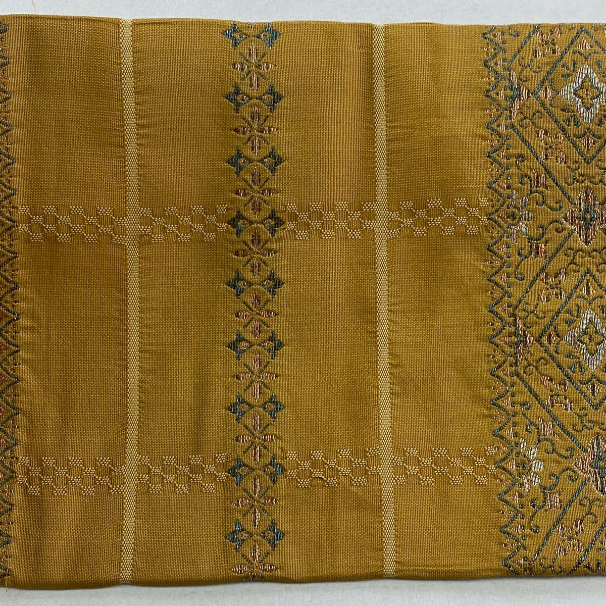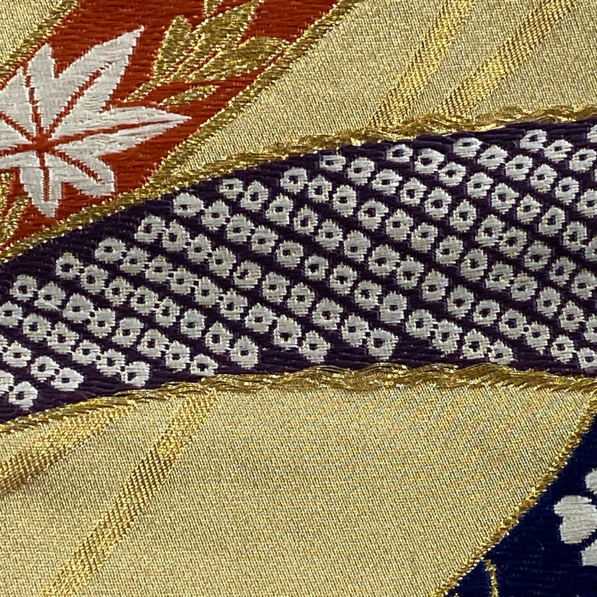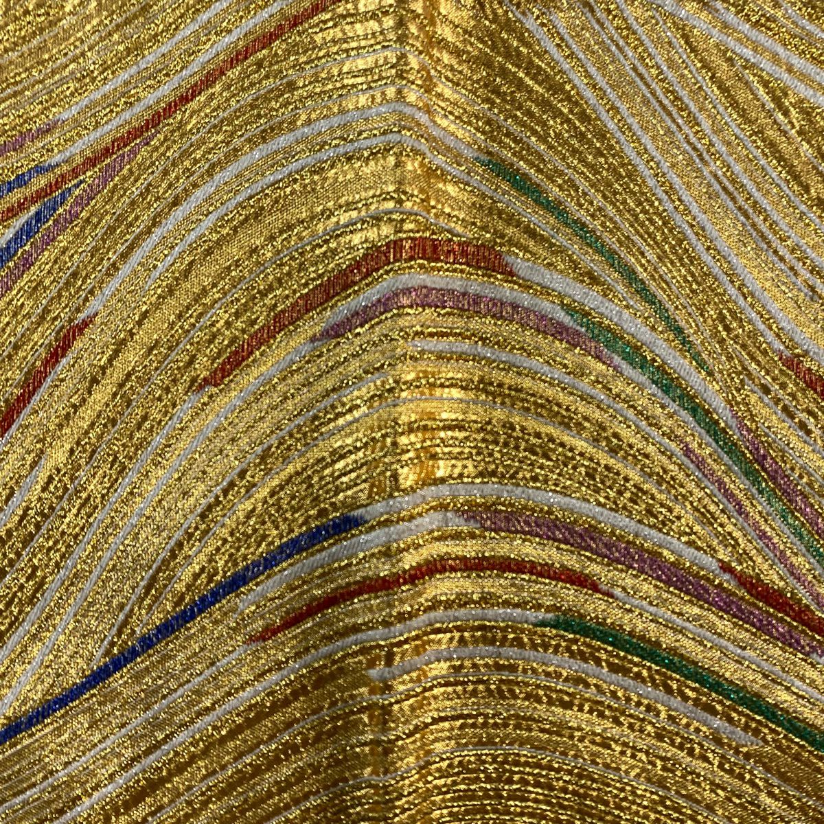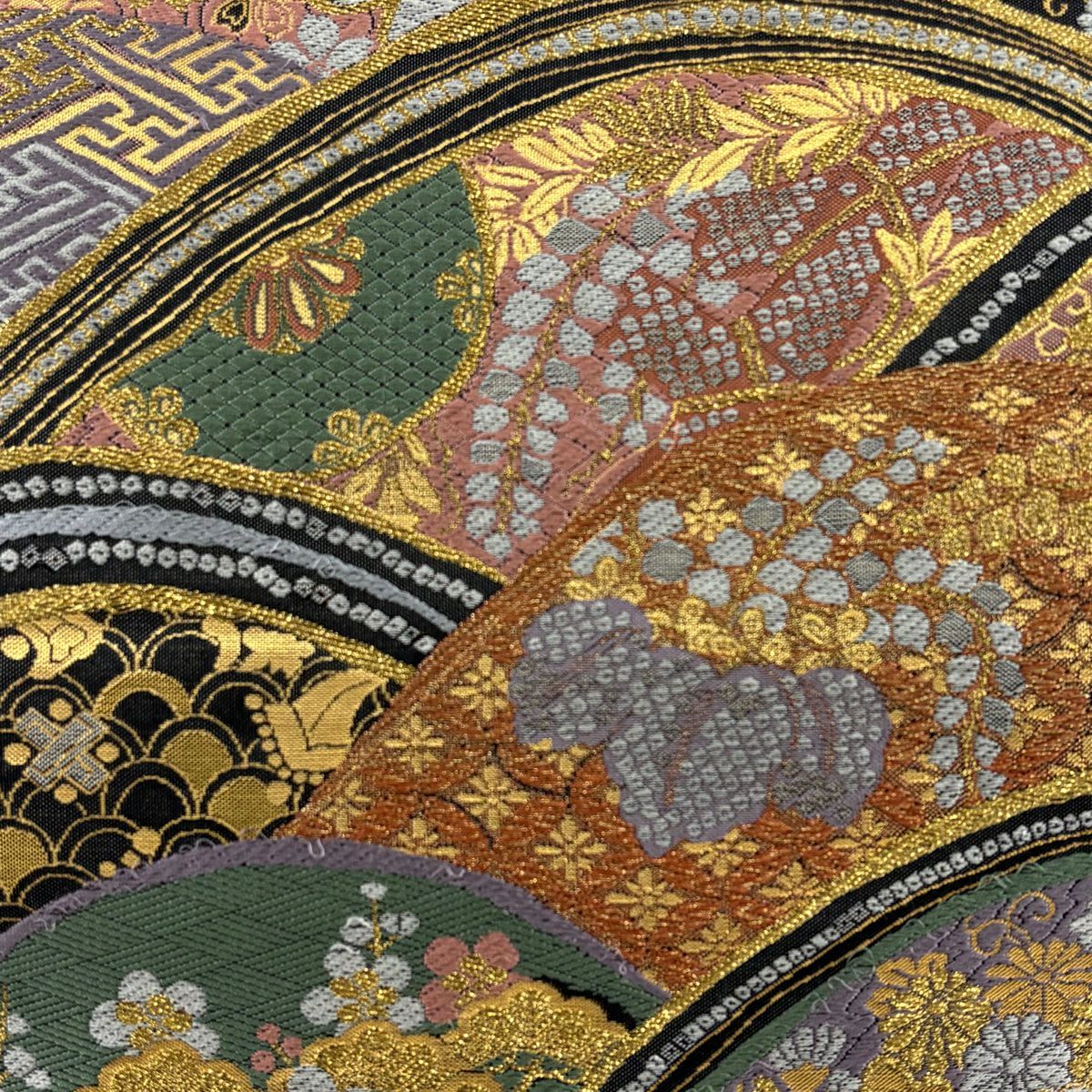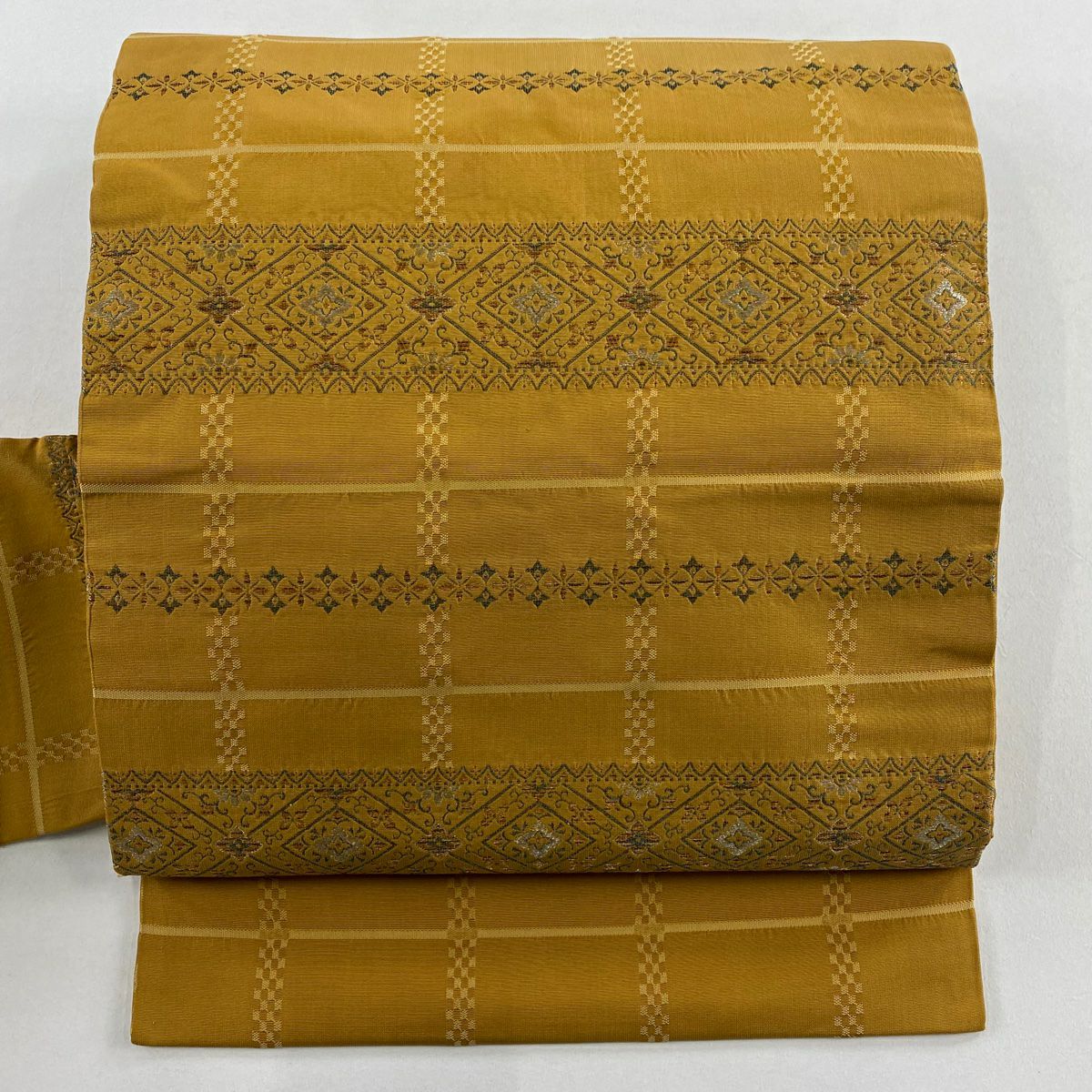 【在庫一掃】 【美品】 袋帯 秀品 幾何学 箔 金色 六通 正絹