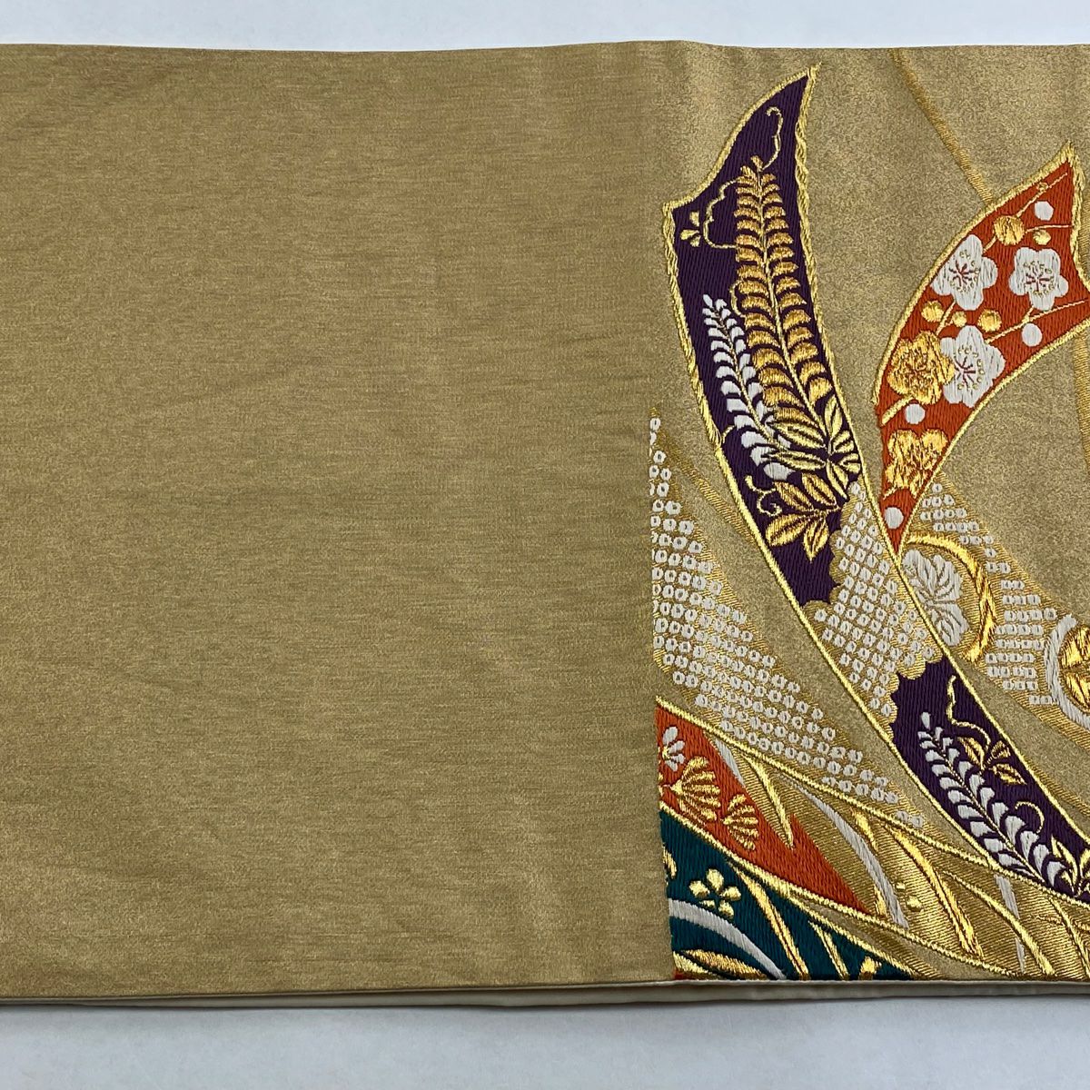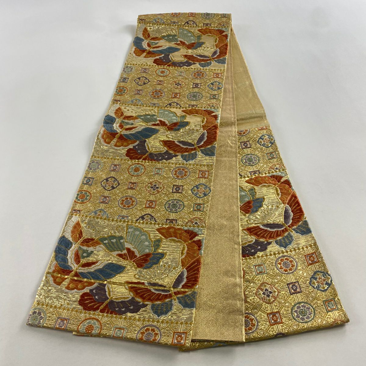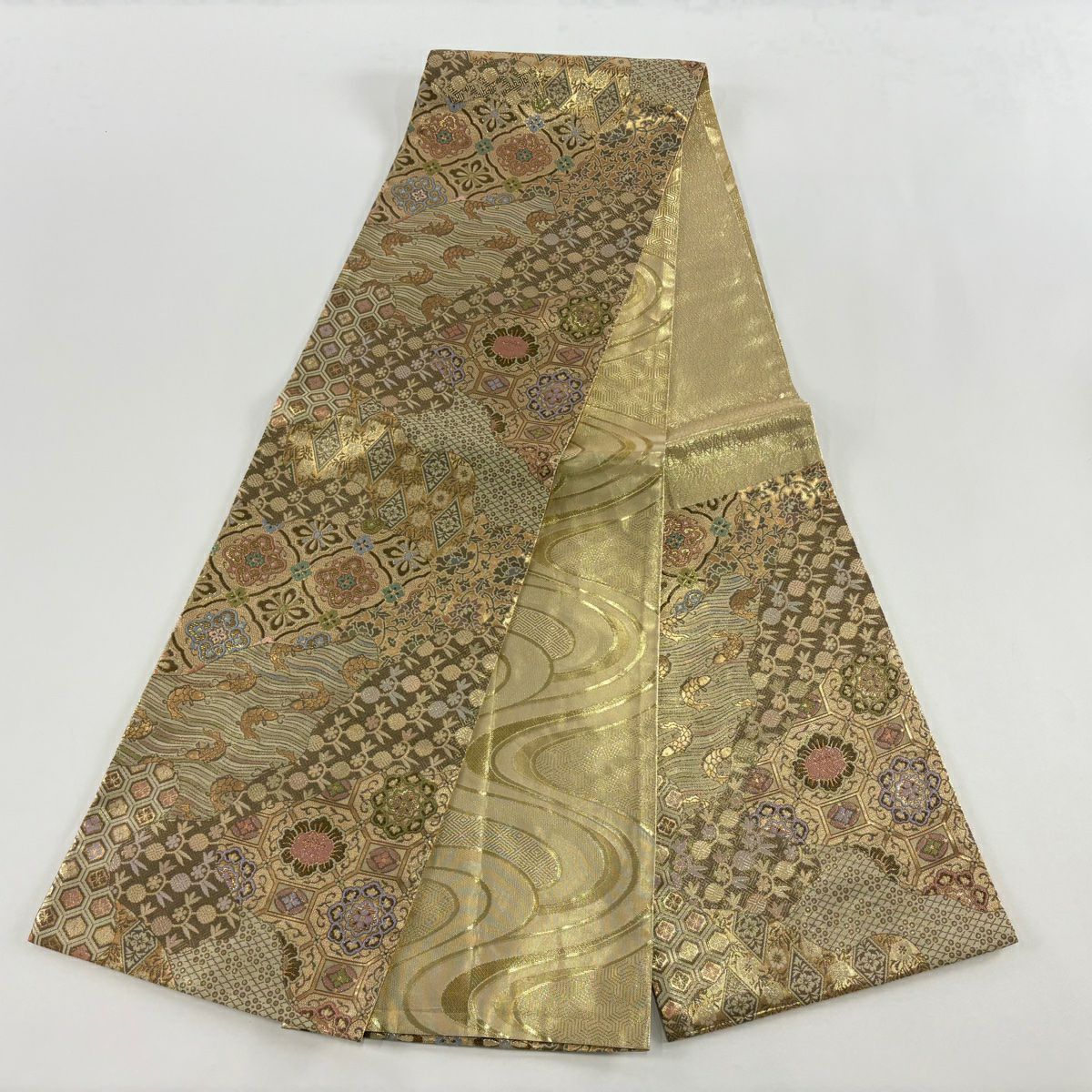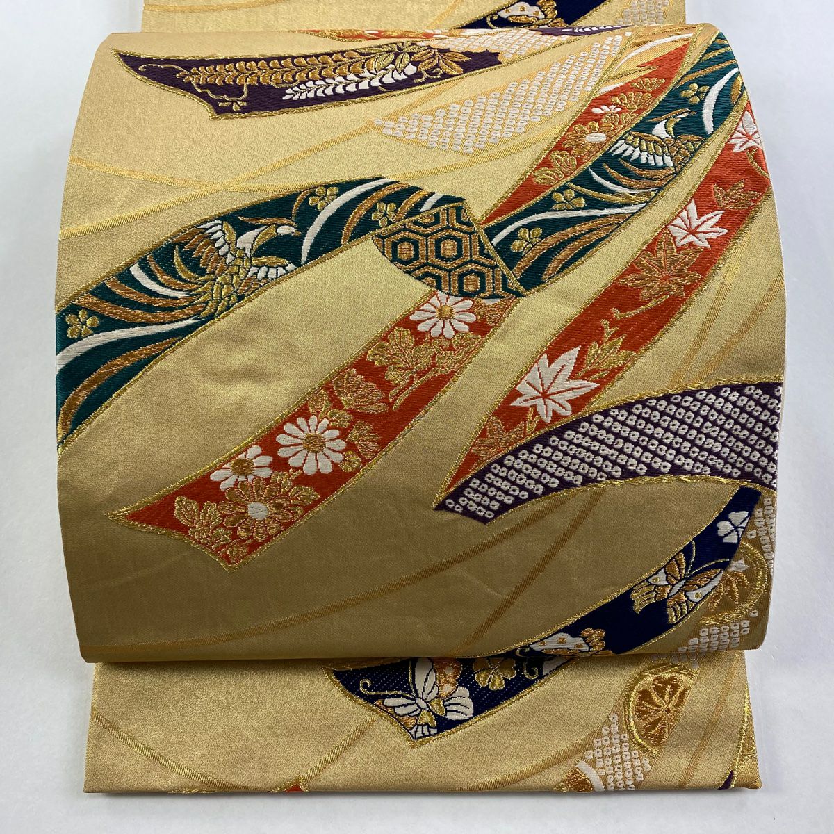 【在庫一掃】 袋帯 秀品 色紙 華文 金糸 箔 金色 六通 正絹