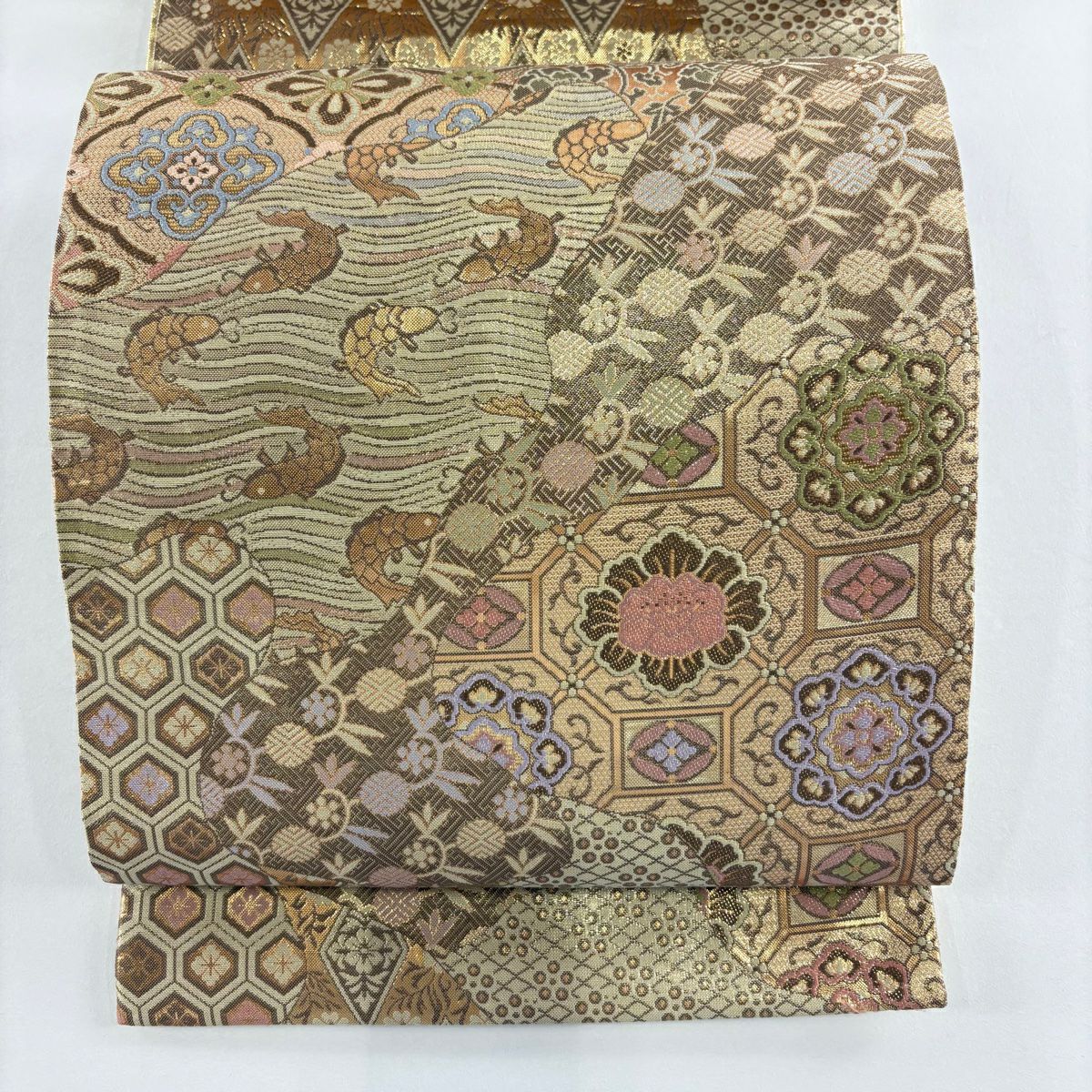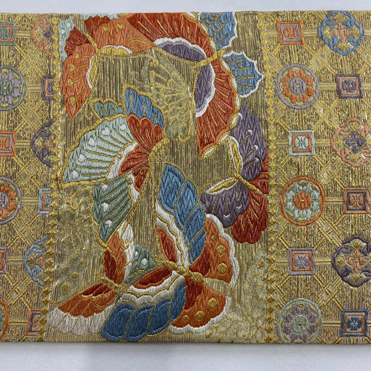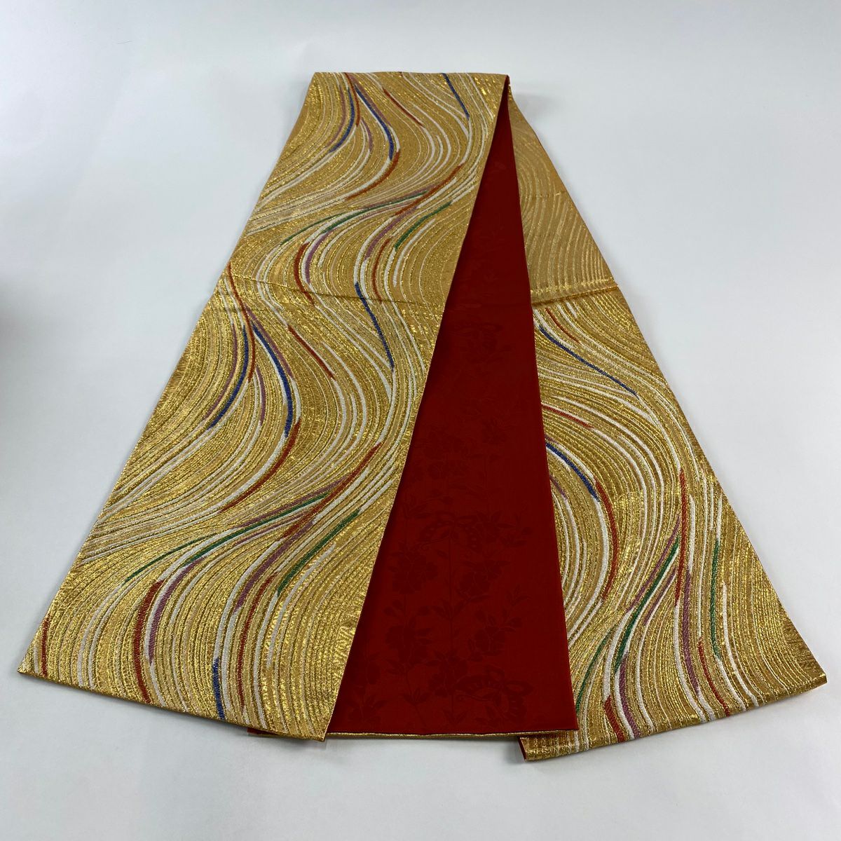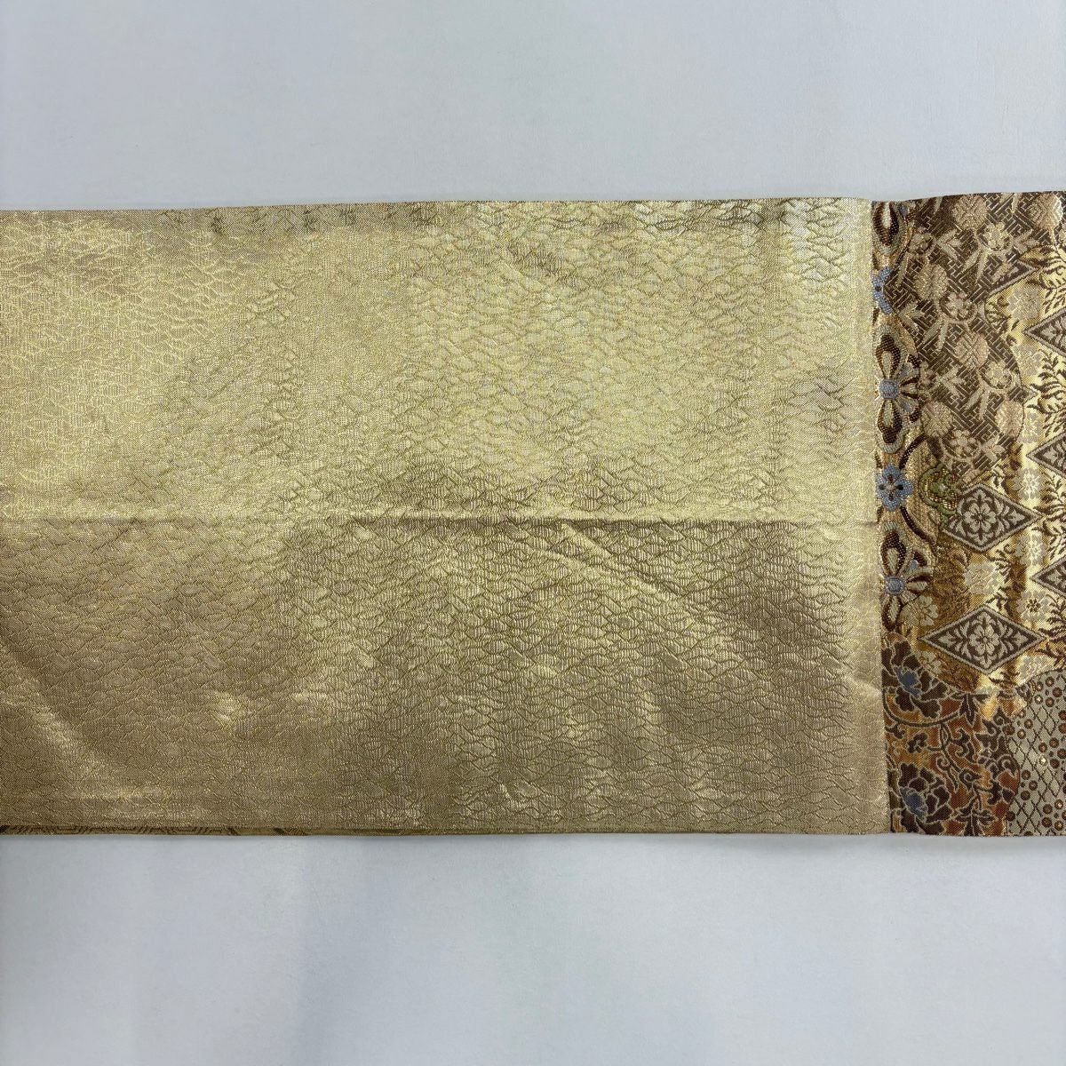 【在庫一掃】 袋帯 秀品 色紙 華文 金糸 箔 金色 六通 正絹