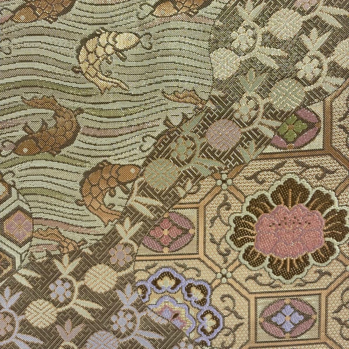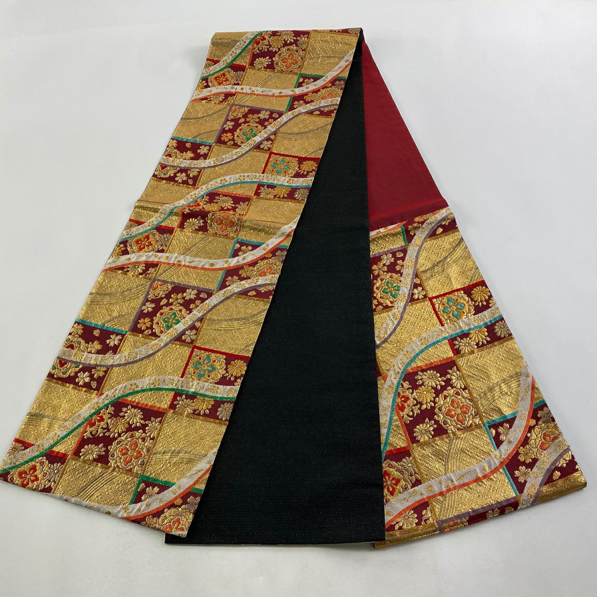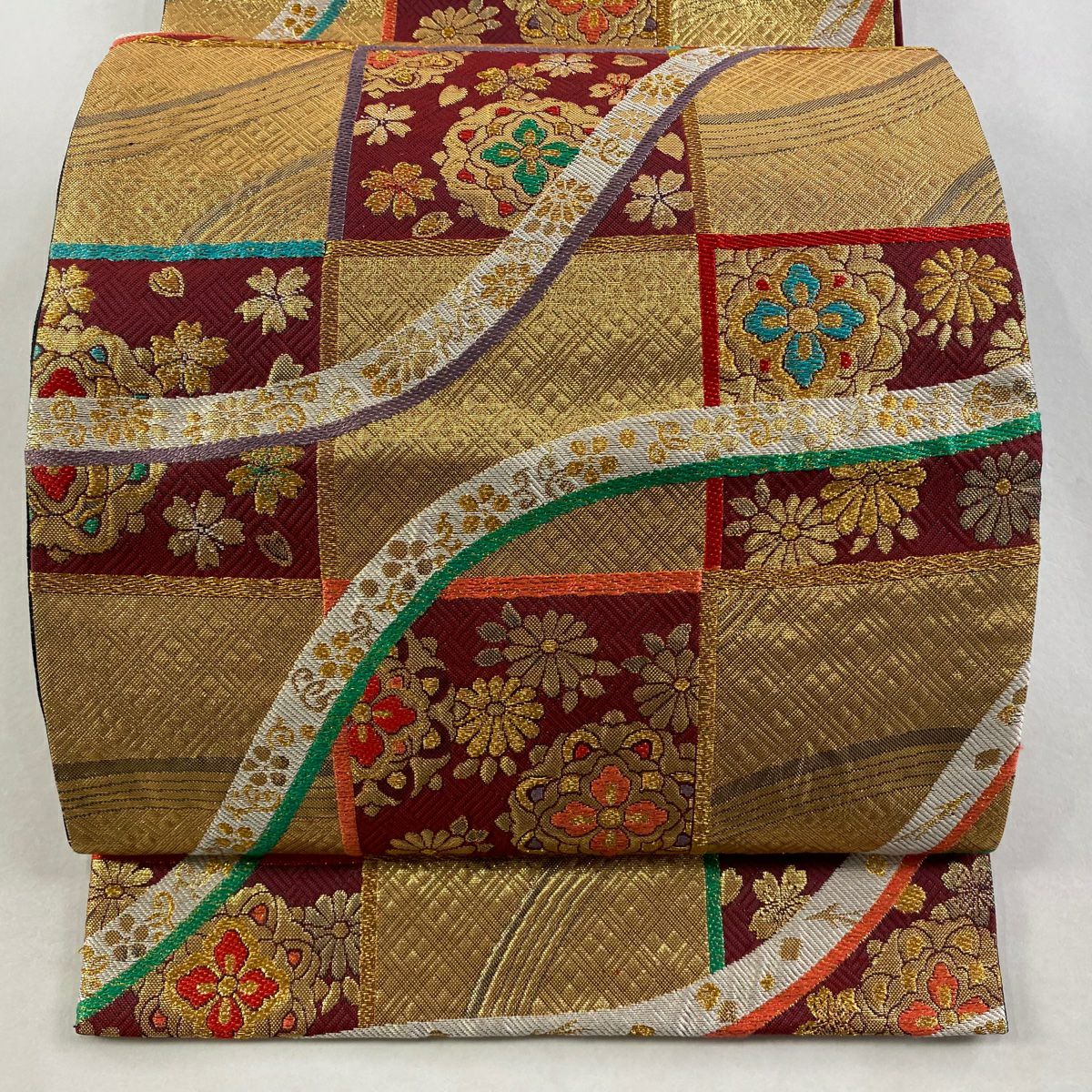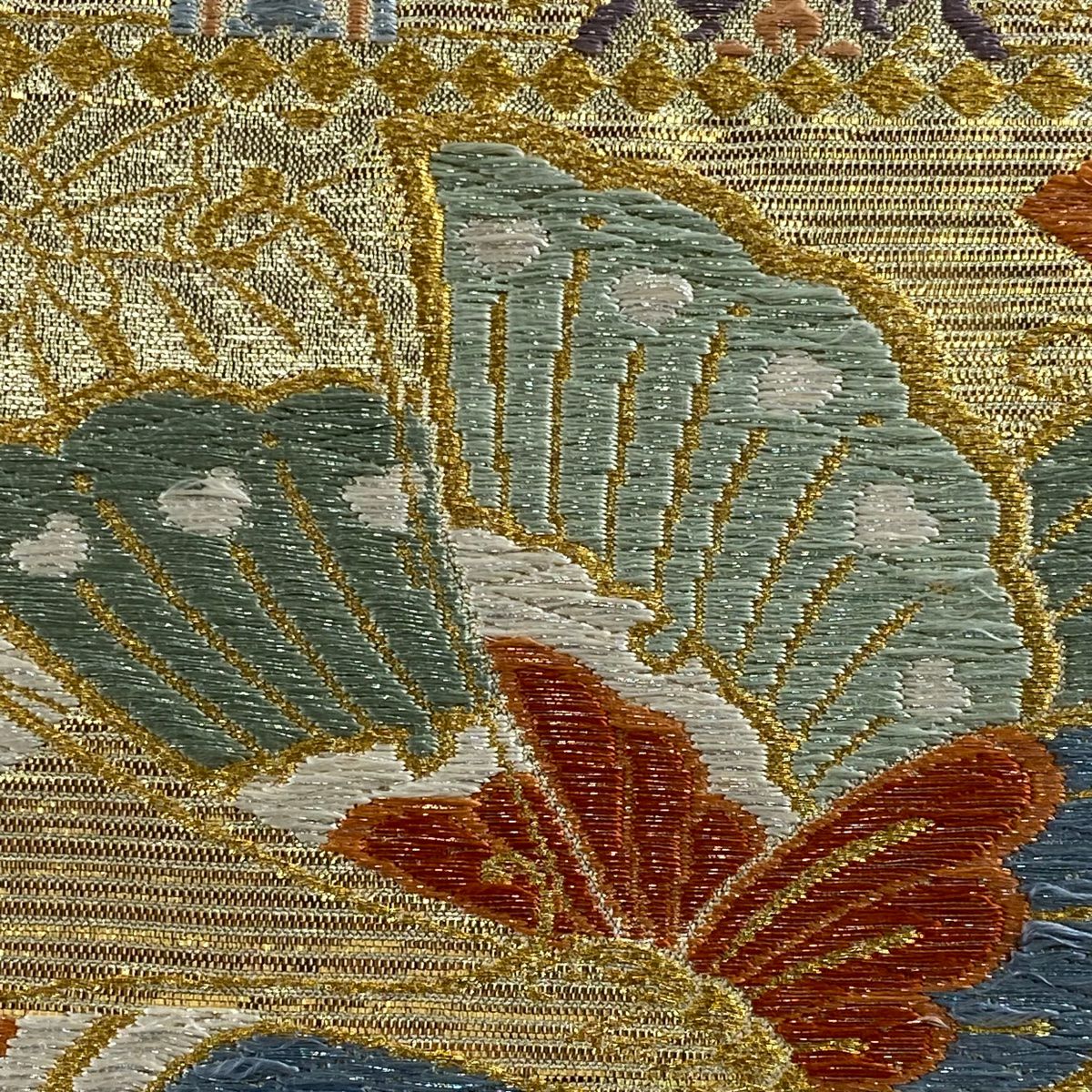 【在庫一掃】 袋帯 秀品 色紙 華文 金糸 箔 金色 六通 正絹