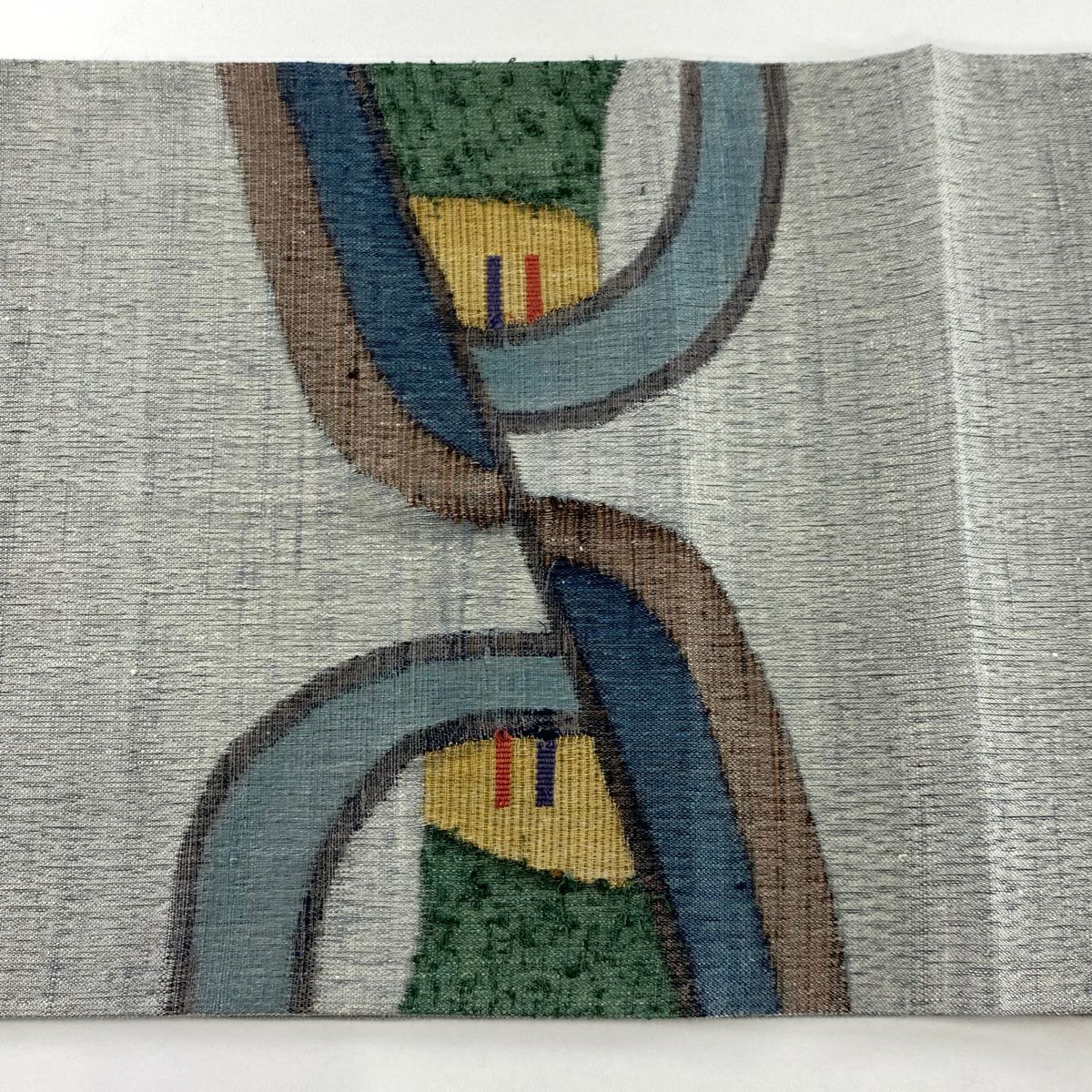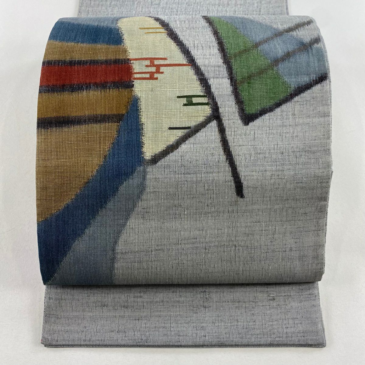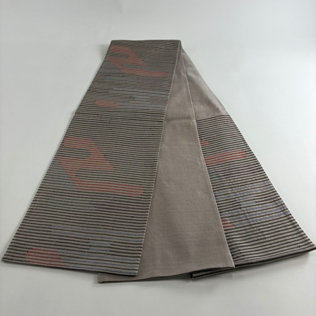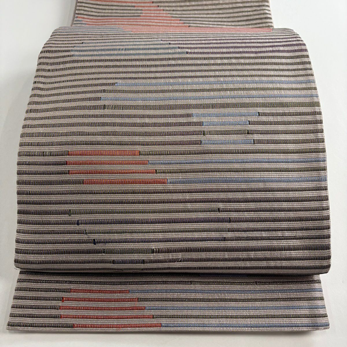 【在庫一掃】 【美品】 袋帯 秀品 幾何学 灰色 お太鼓柄 正絹