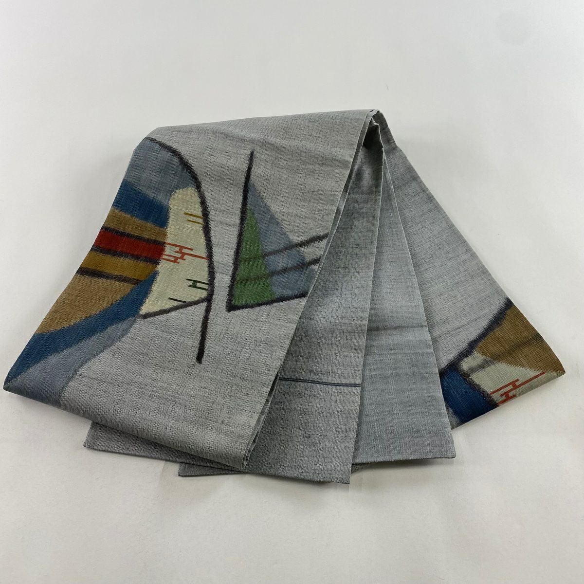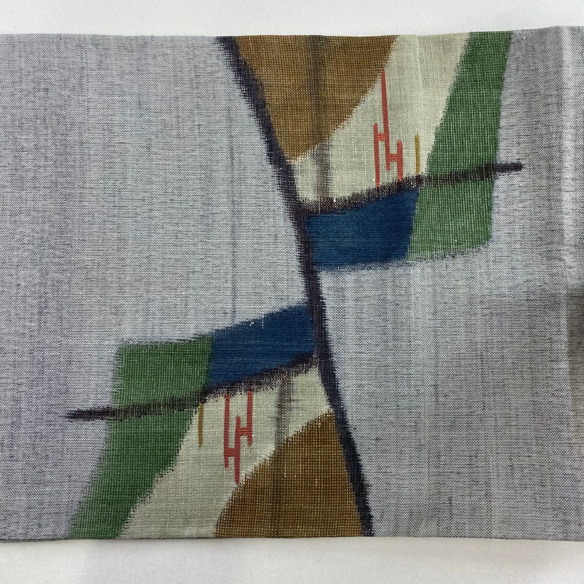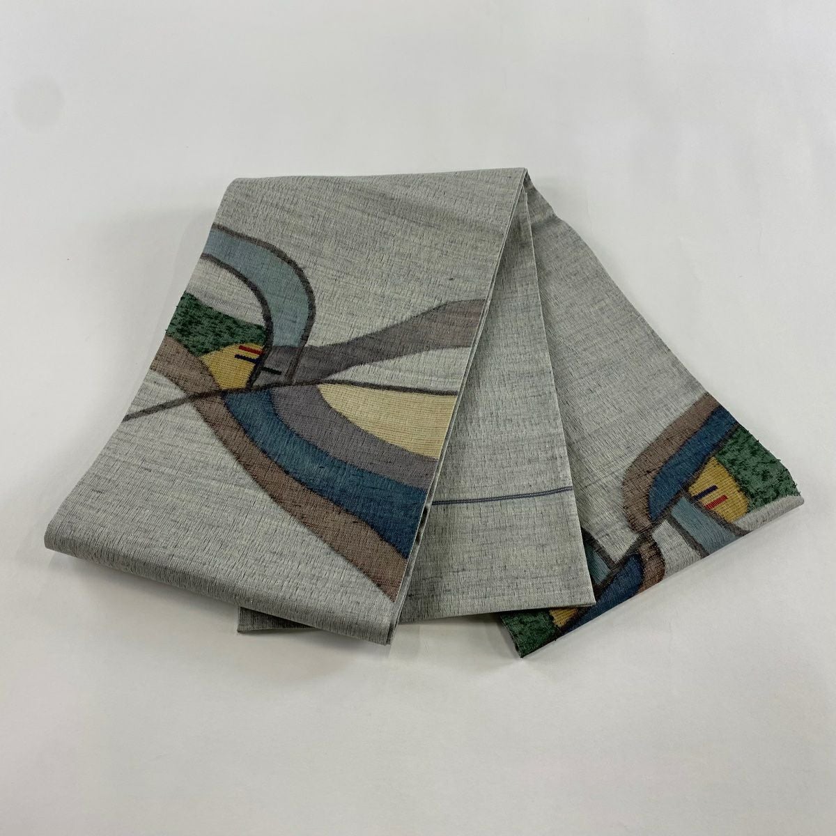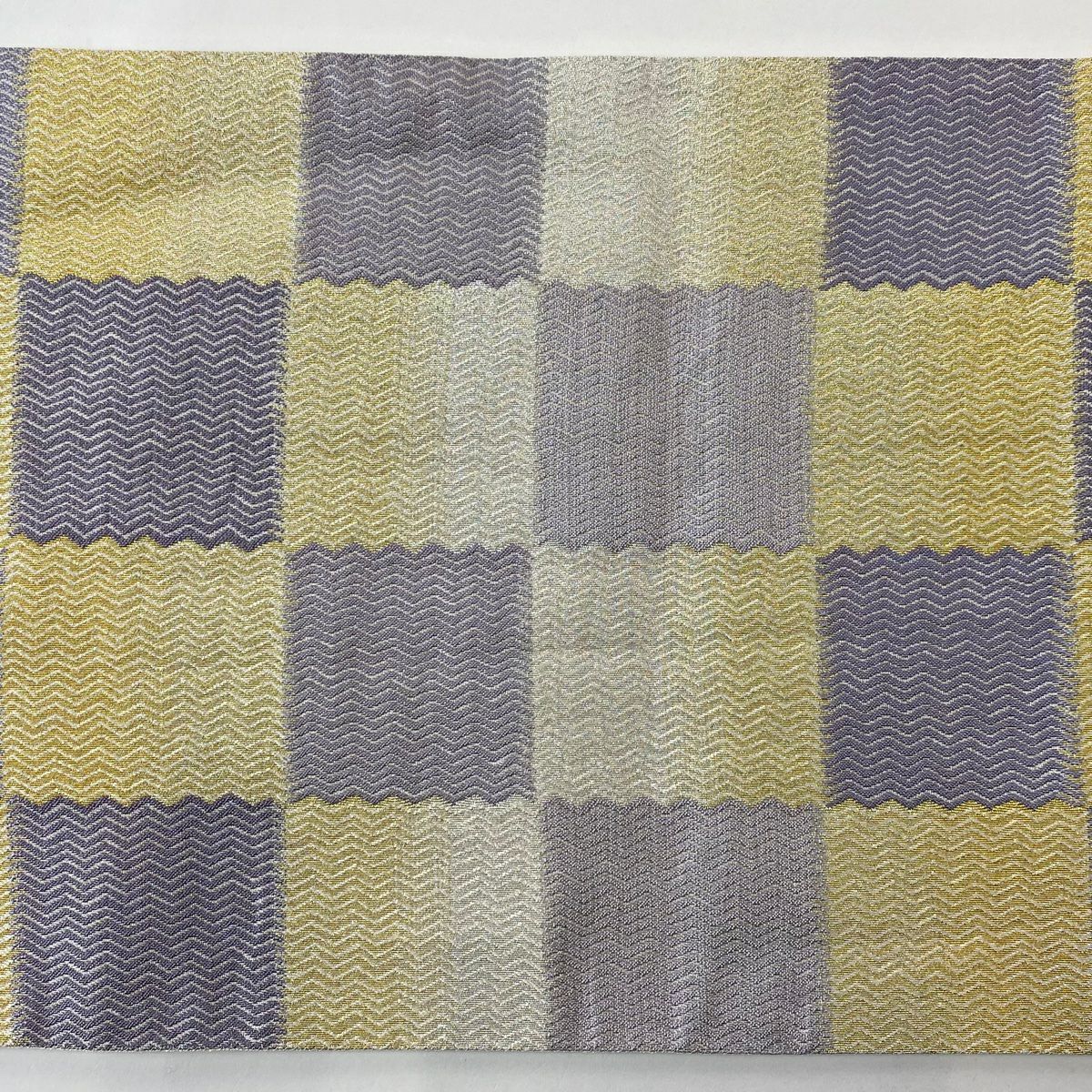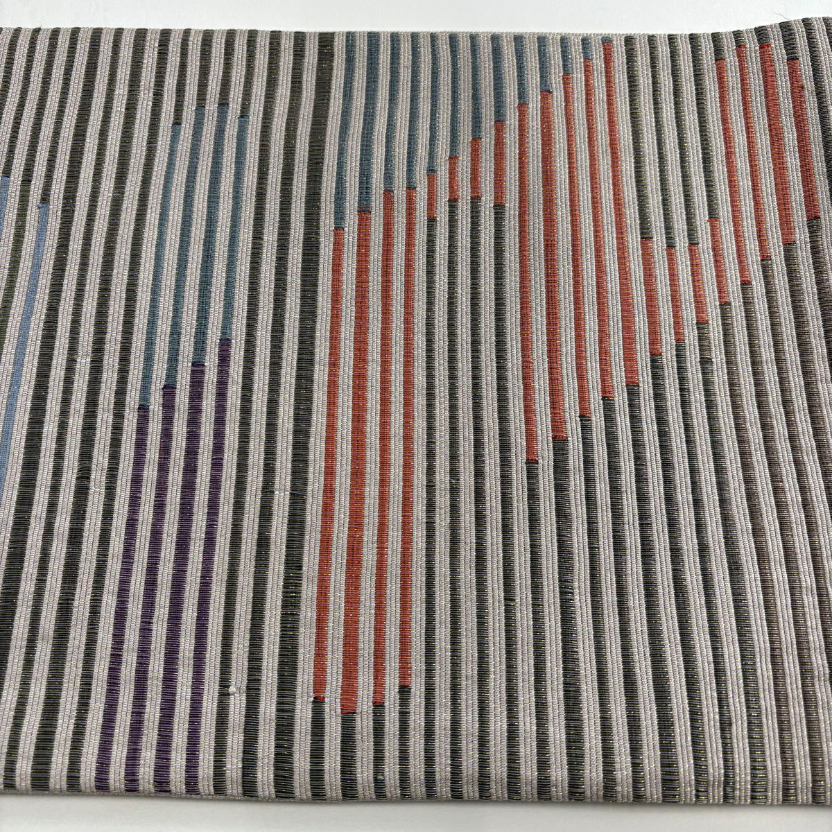 【在庫一掃】 【美品】 袋帯 秀品 幾何学 灰色 お太鼓柄 正絹