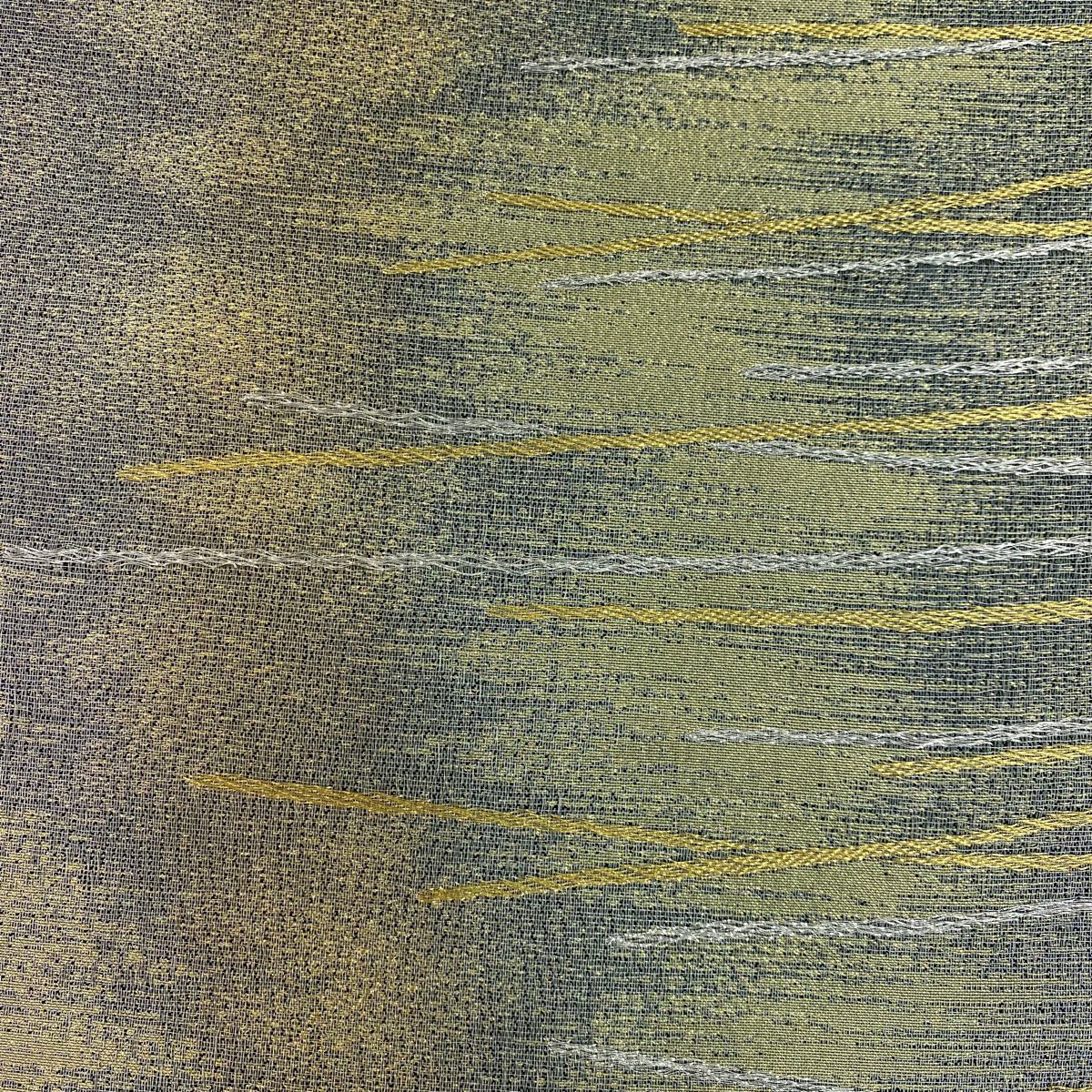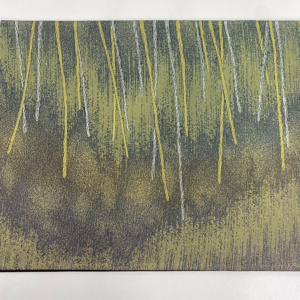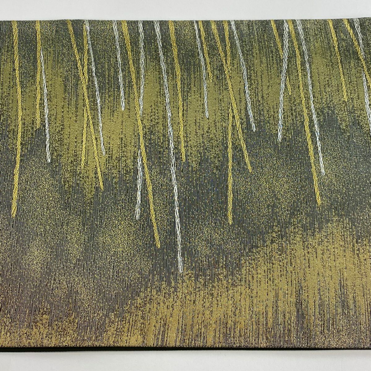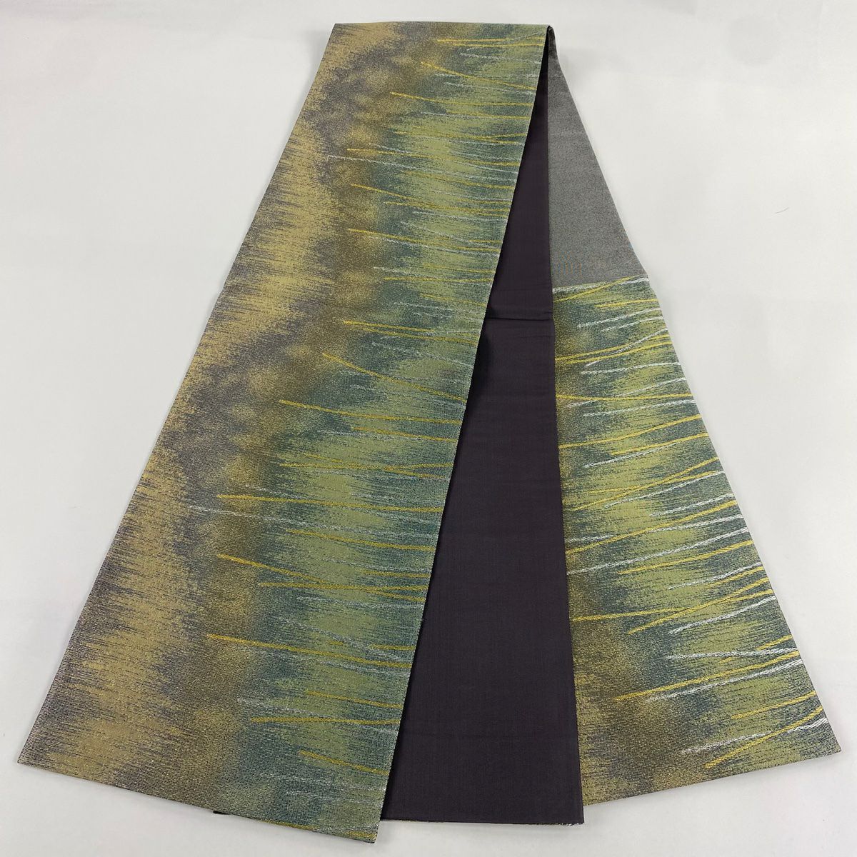 【在庫一掃】 【美品】 袋帯 秀品 霞 金銀糸 灰緑 六通 正絹
