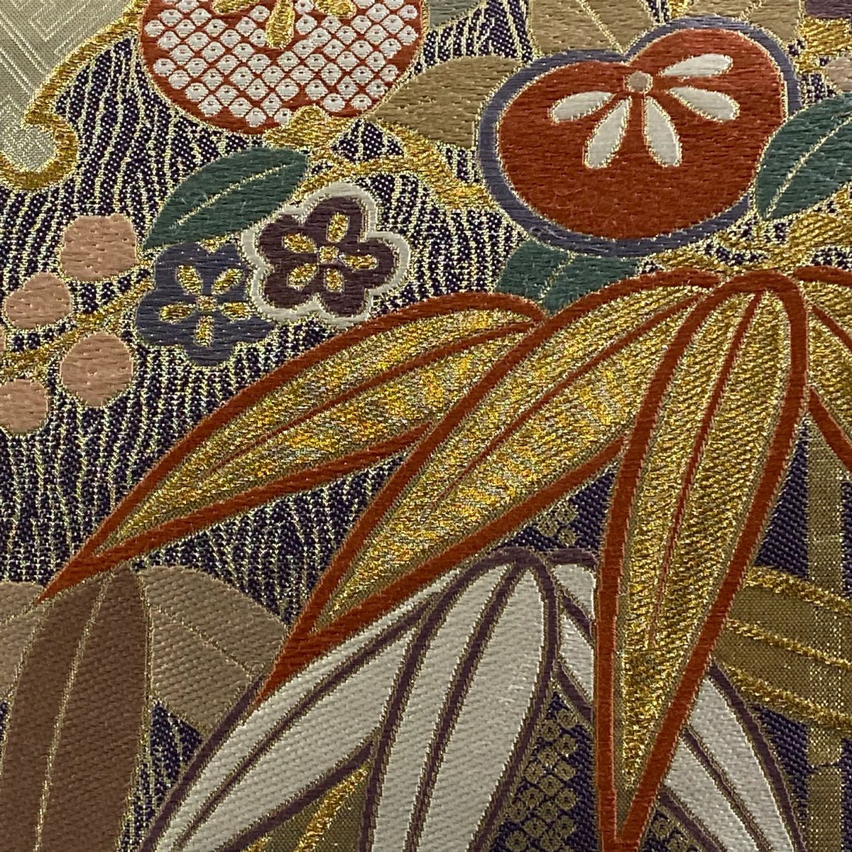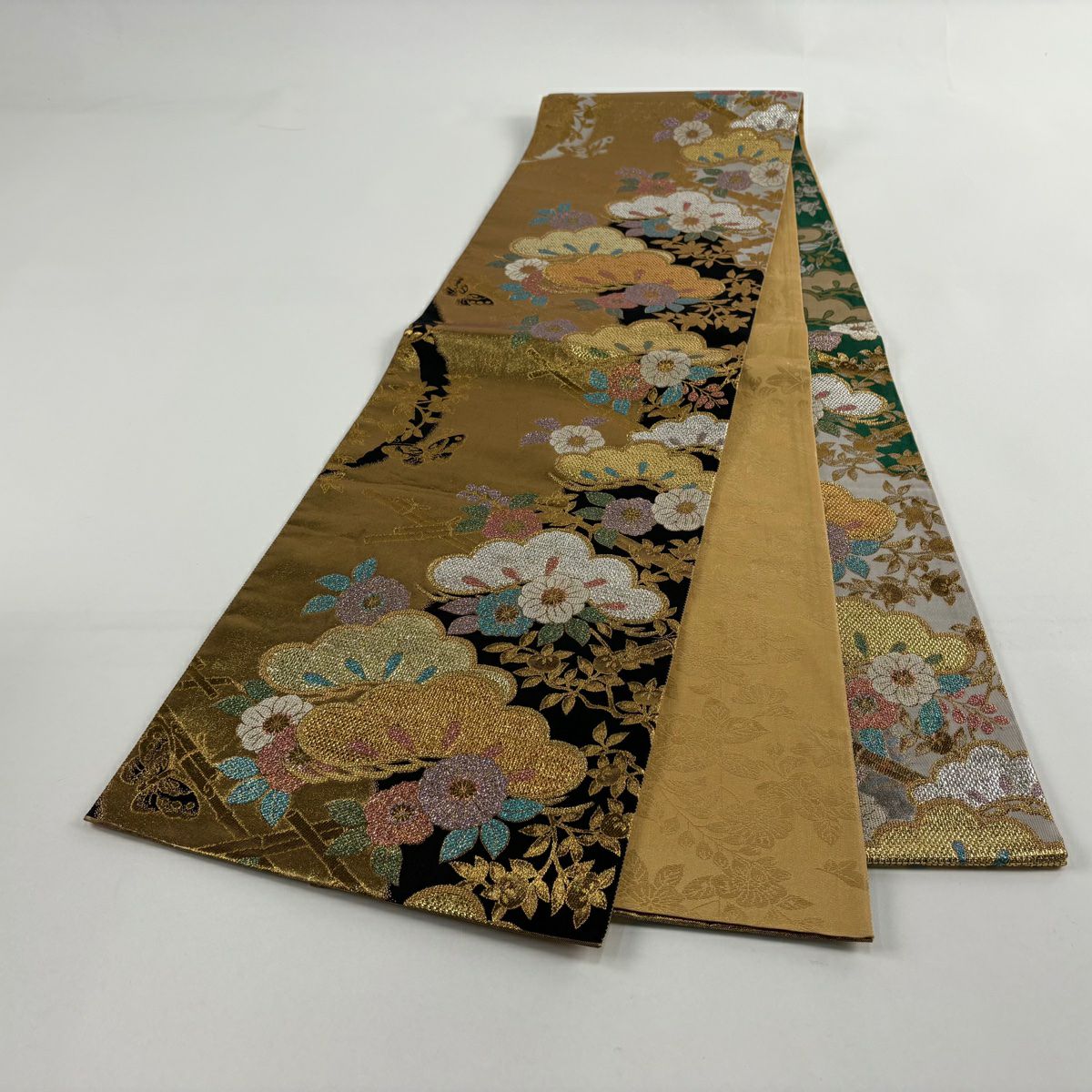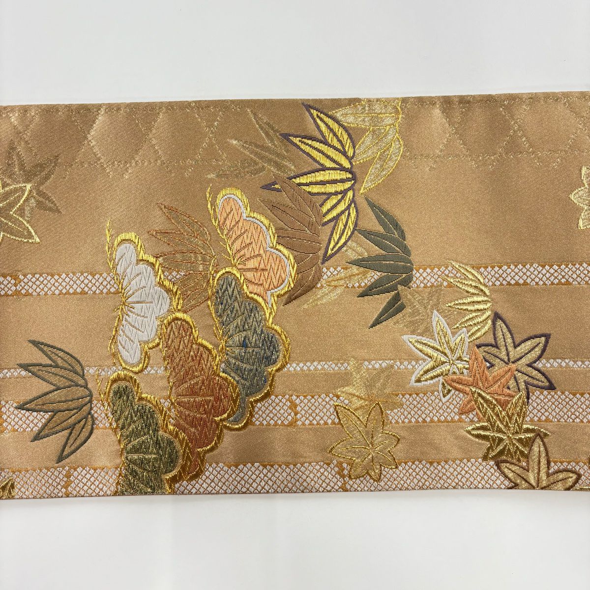【在庫一掃】 袋帯 秀品 松竹 楓 唐織 箔 金色 六通 正絹
