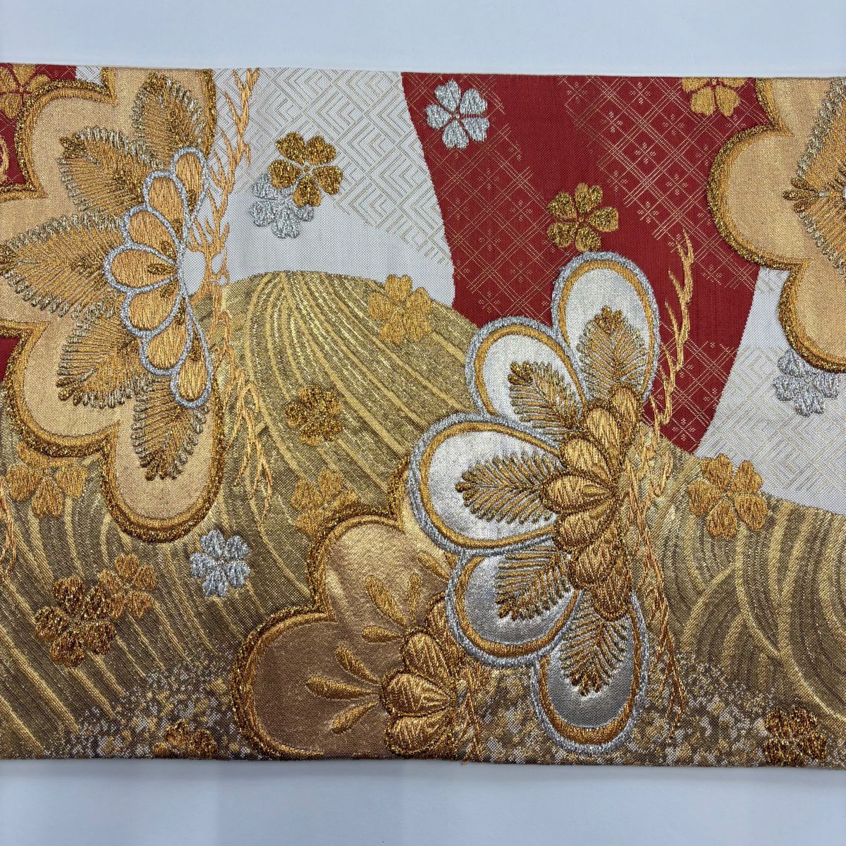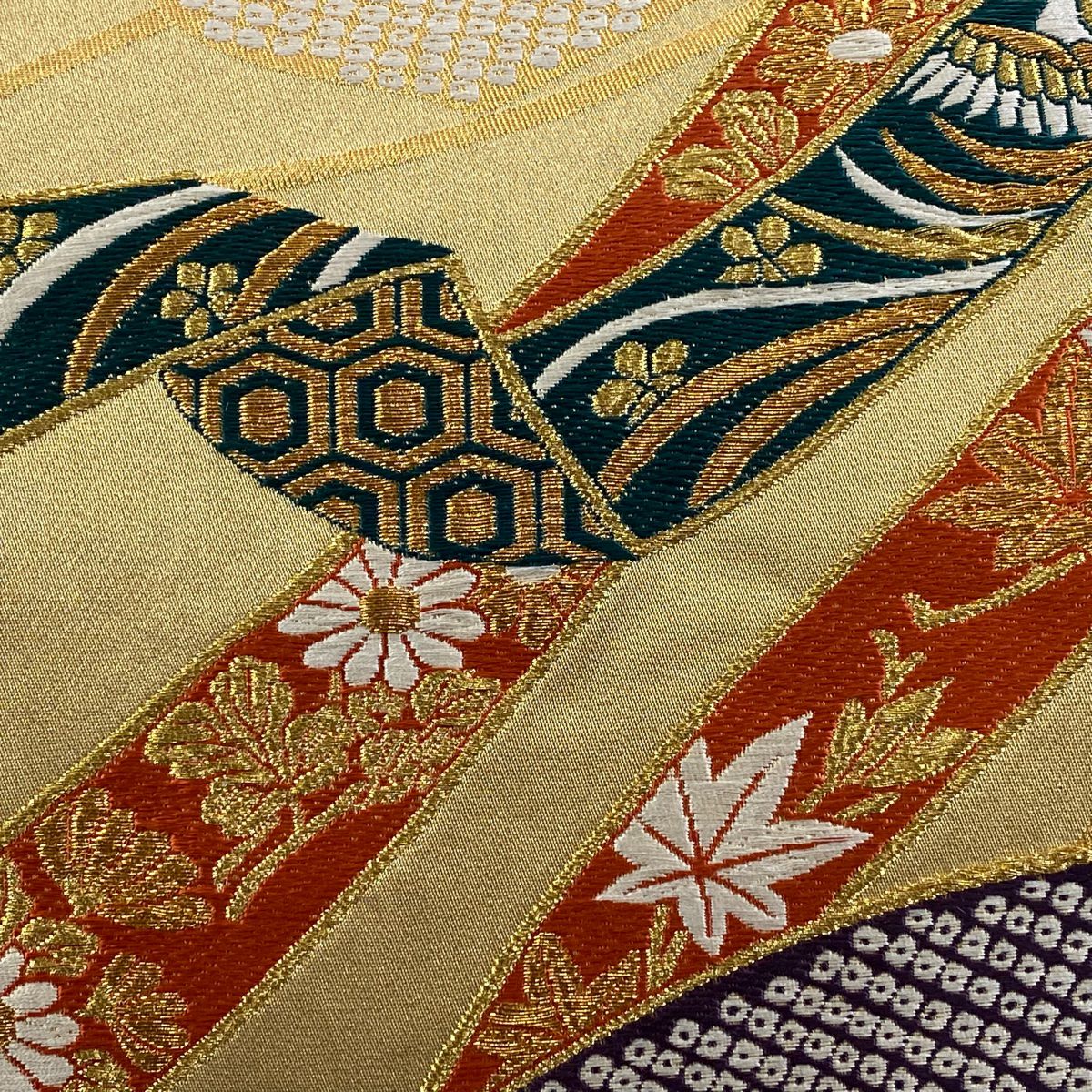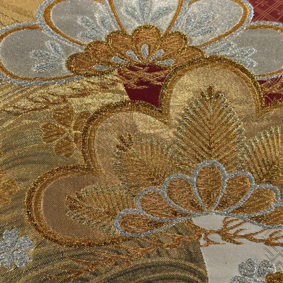 【在庫一掃】 袋帯 秀品 松竹 楓 唐織 箔 金色 六通 正絹