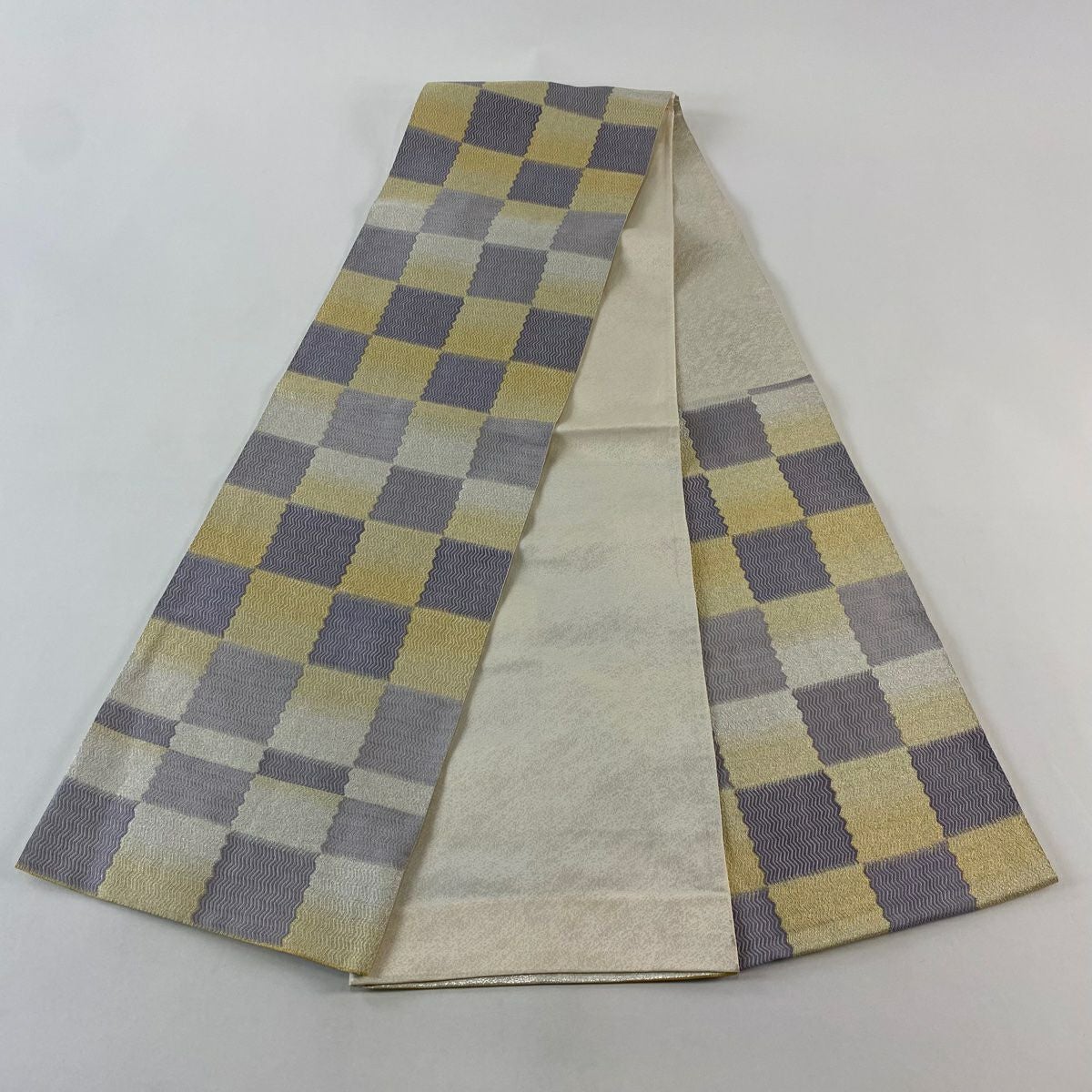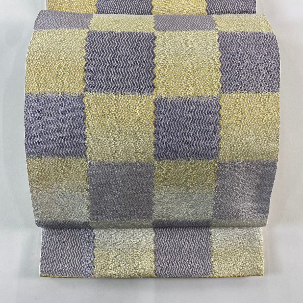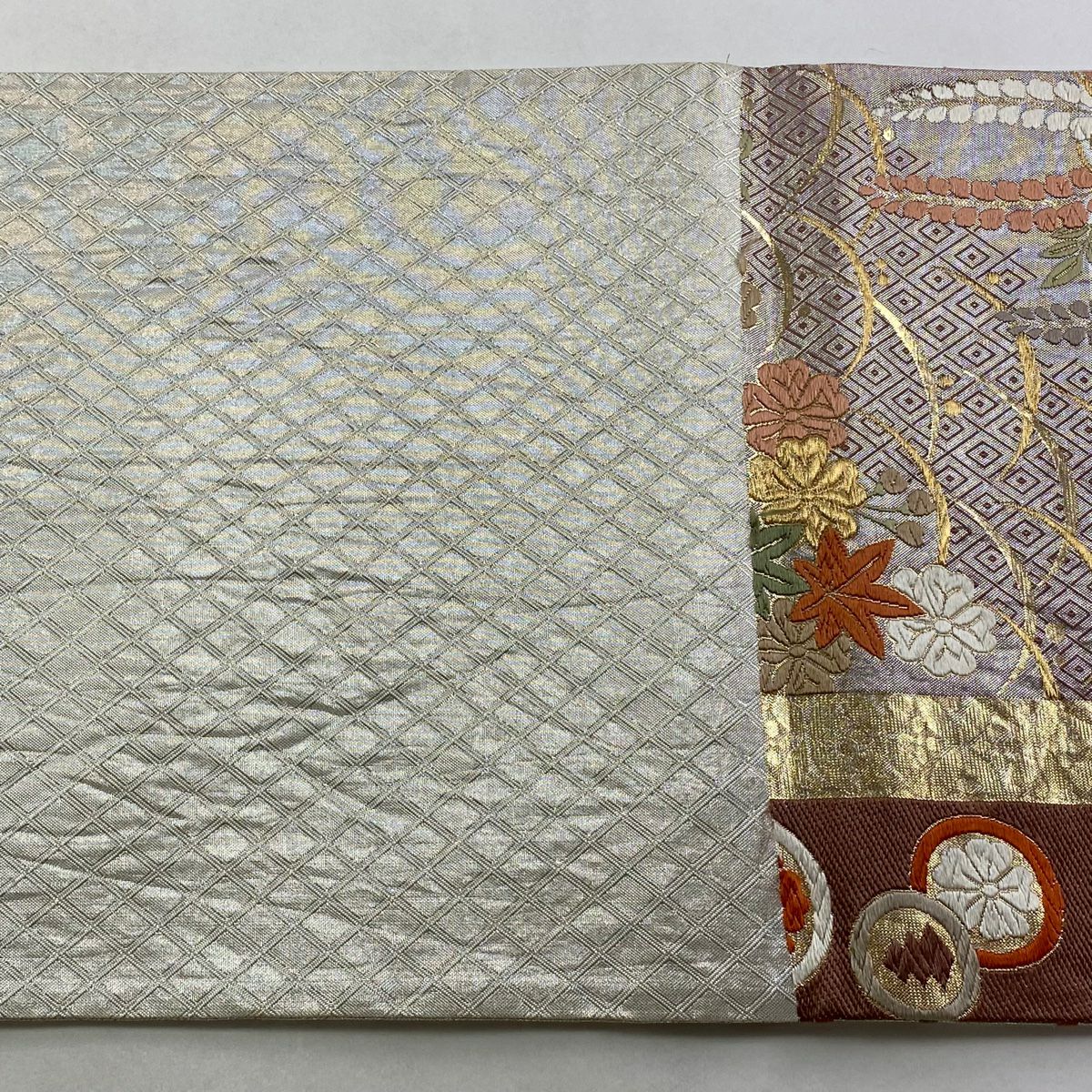【在庫一掃】 袋帯 秀品 幾何学 金銀糸 灰色 お太鼓柄 正絹