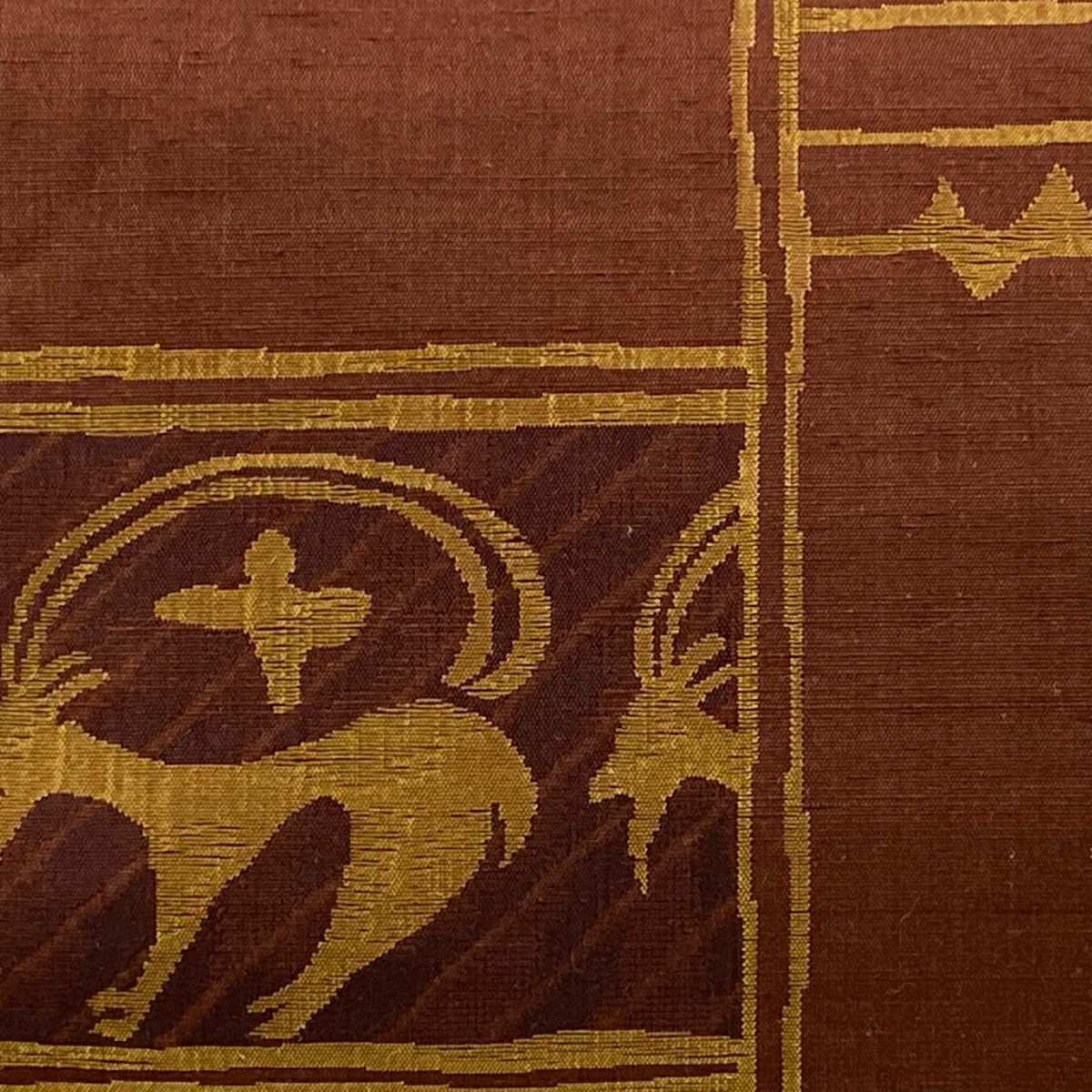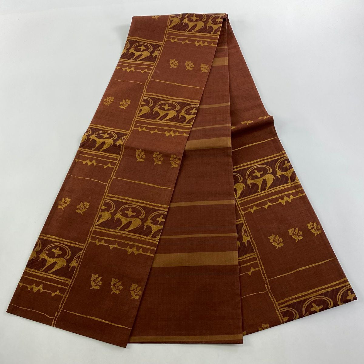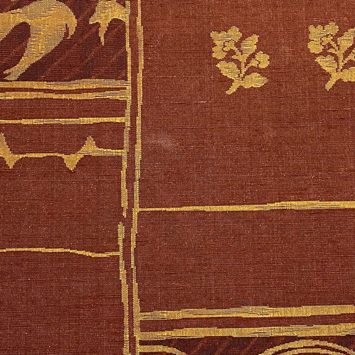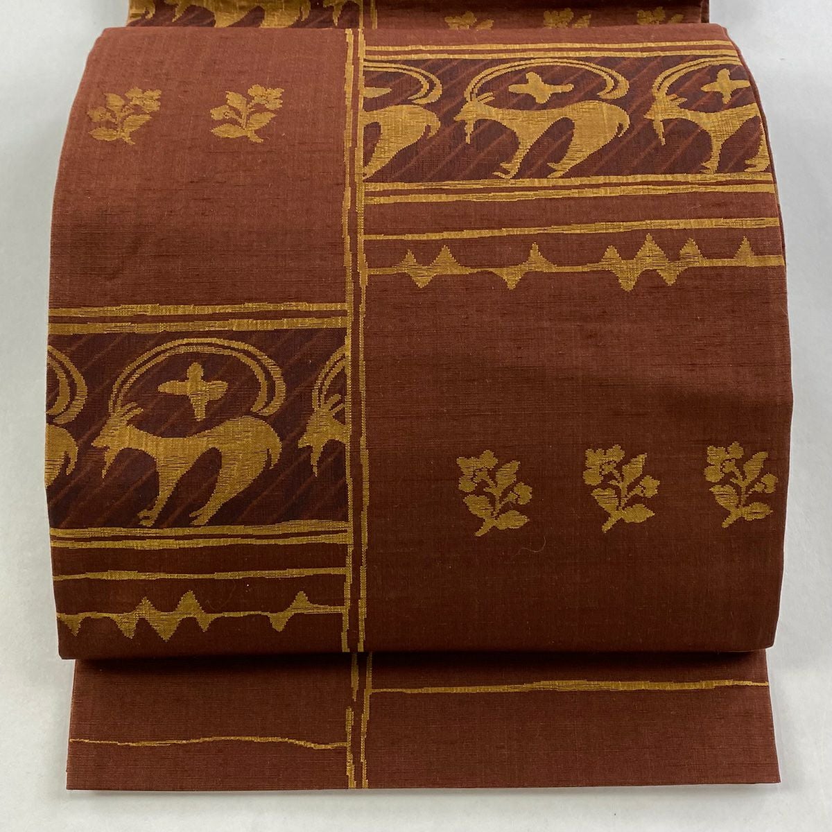 【在庫一掃】 袋帯 秀品 紬地 ヤギ 草花 赤茶 六通 正絹