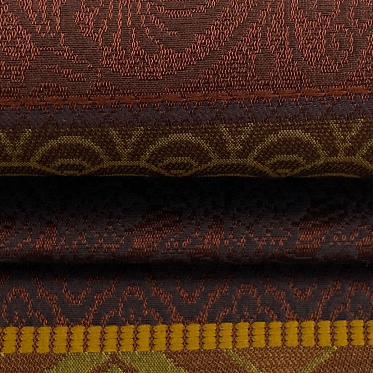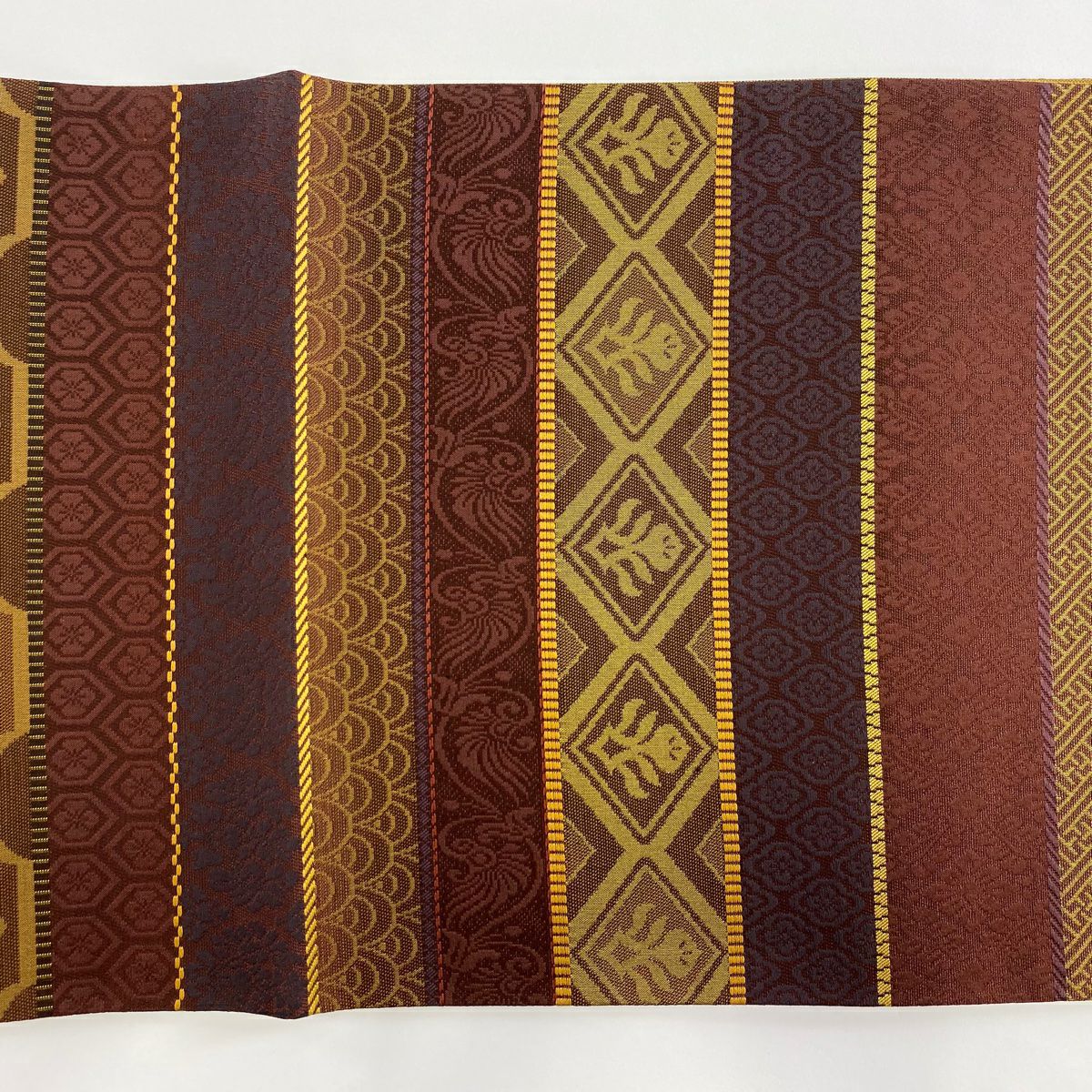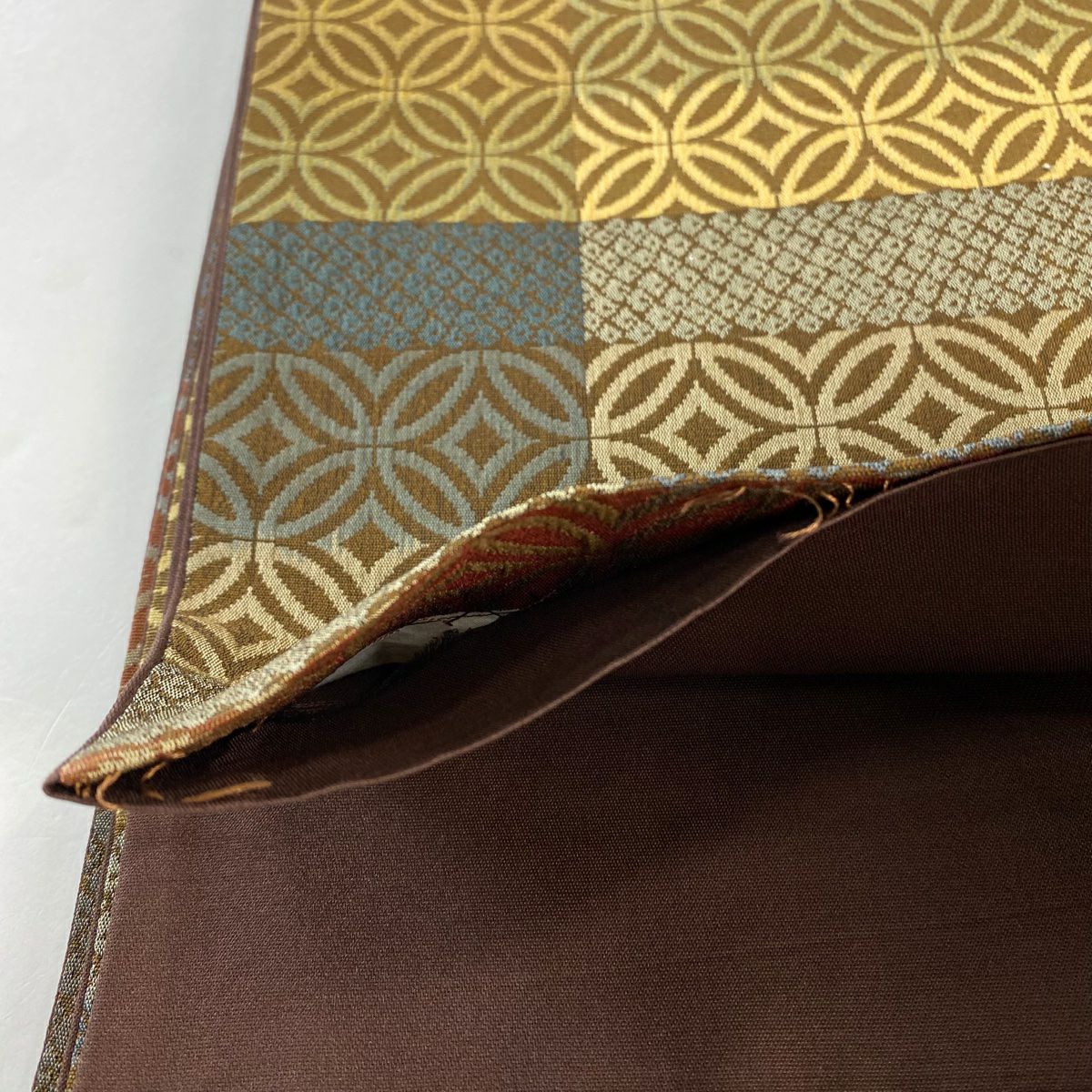 【在庫一掃】 【美品】 袋帯 秀品 幾何学 茶色 お太鼓柄 正絹