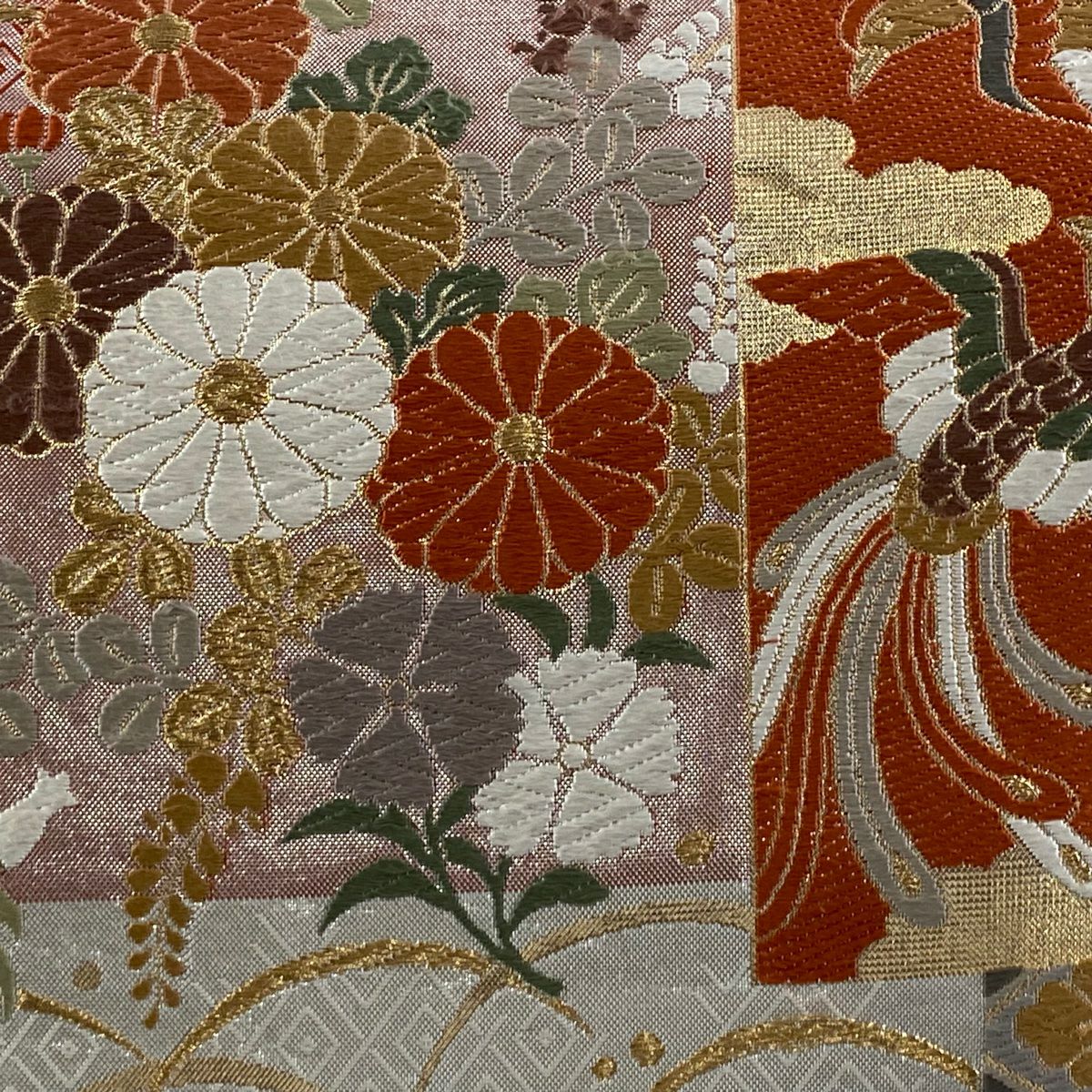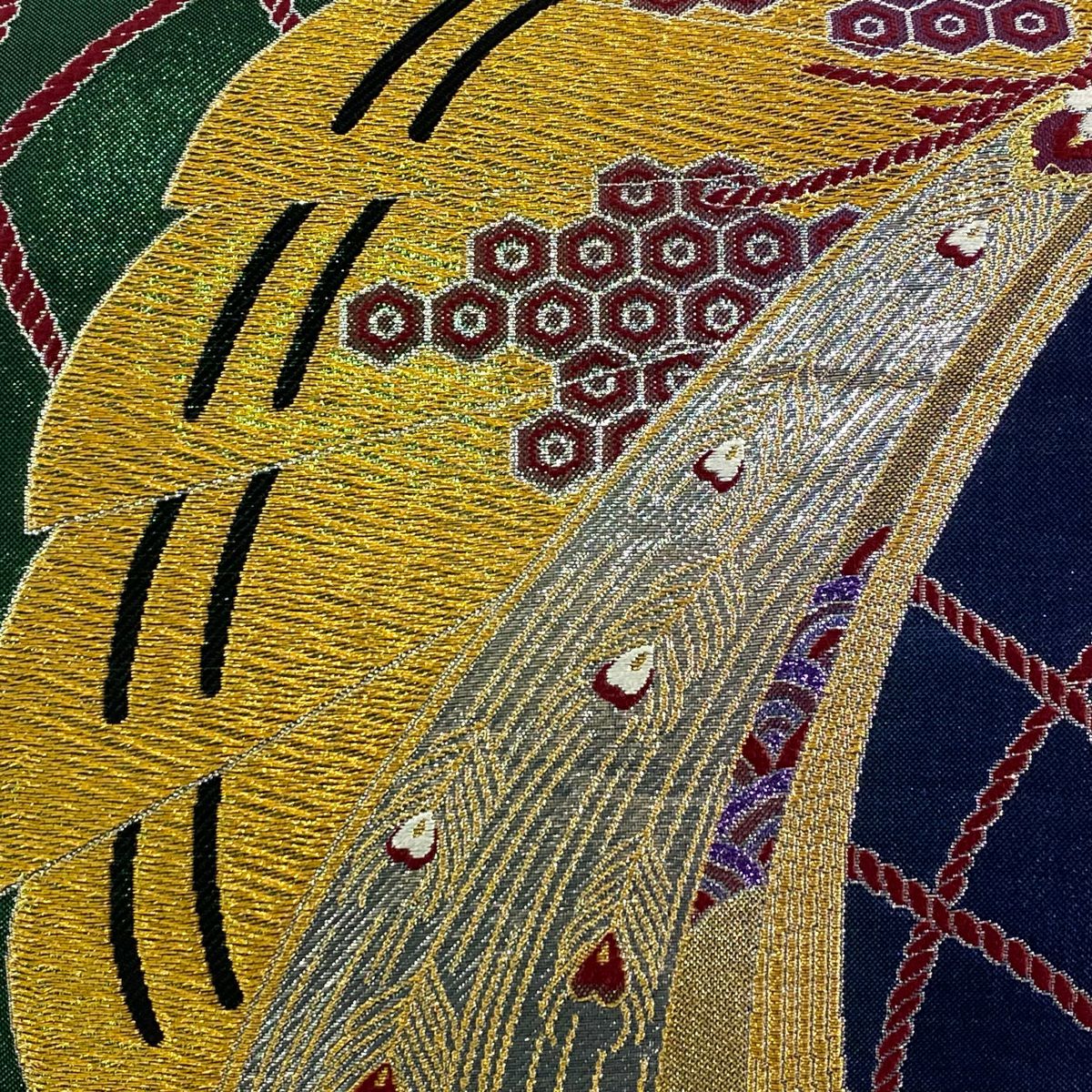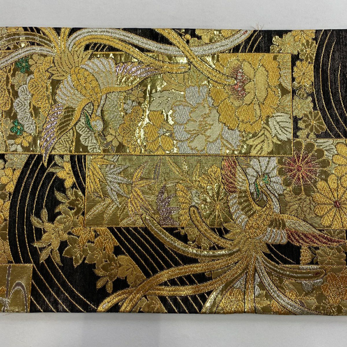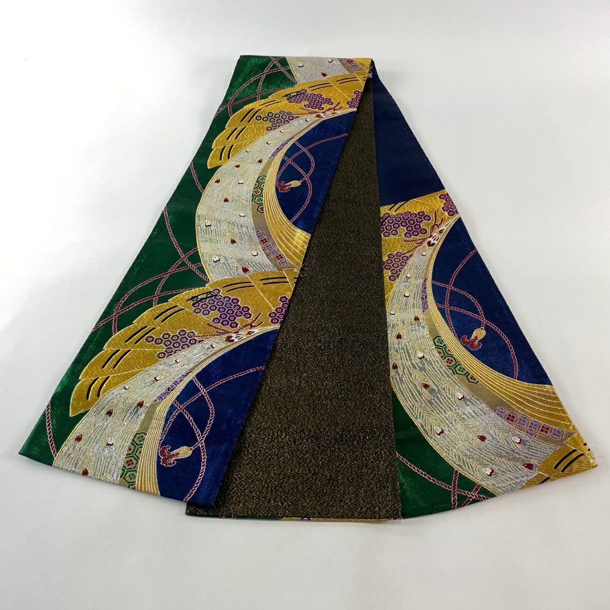 【在庫一掃】 袋帯 秀品 熨斗 鳳凰 金糸 箔 金色 六通 正絹
