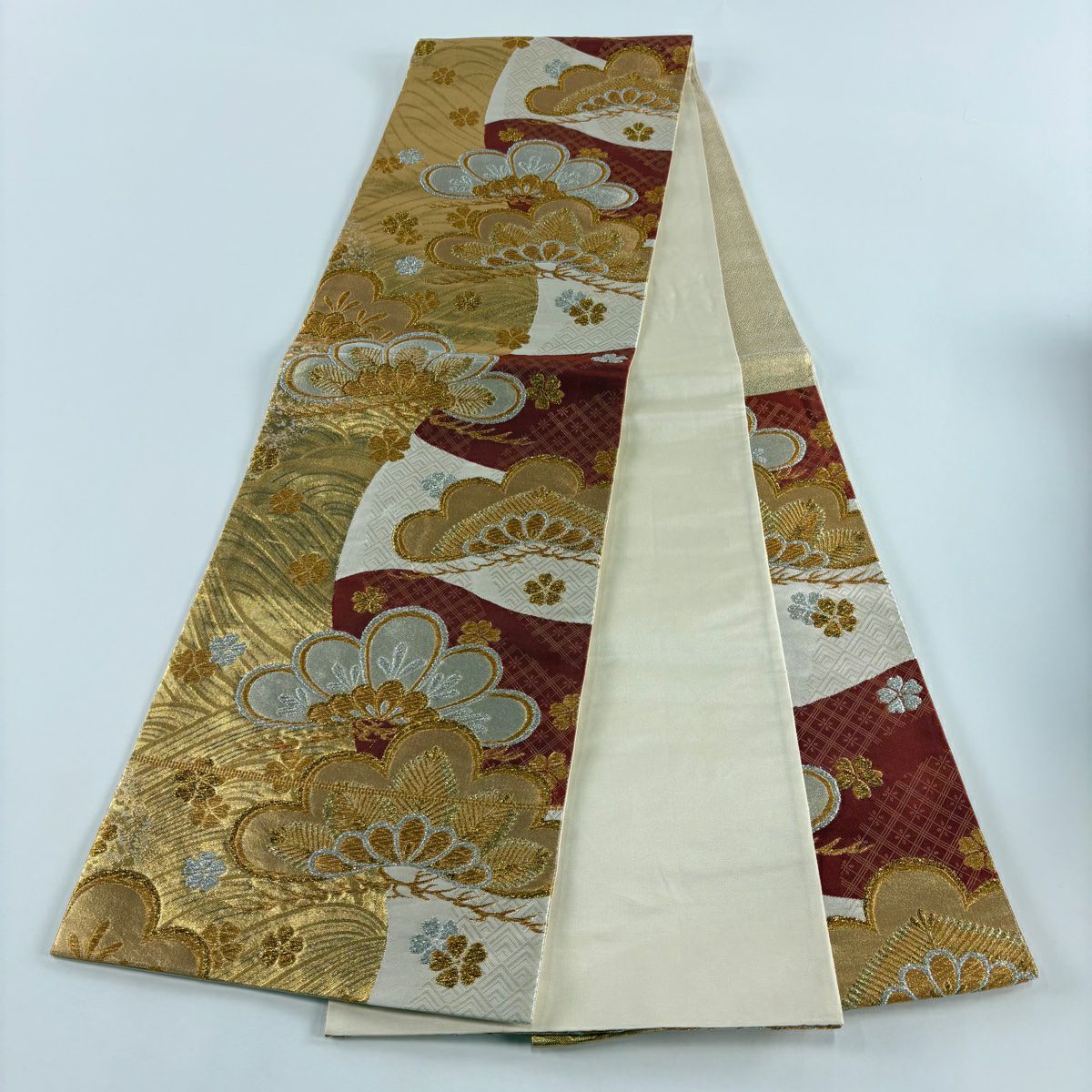 【在庫一掃】 【美品】 袋帯 秀品 松 桜 箔 金色 六通 正絹