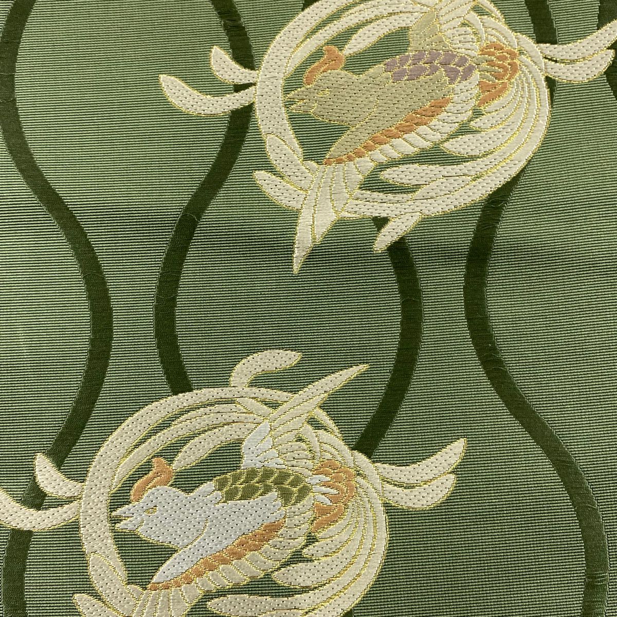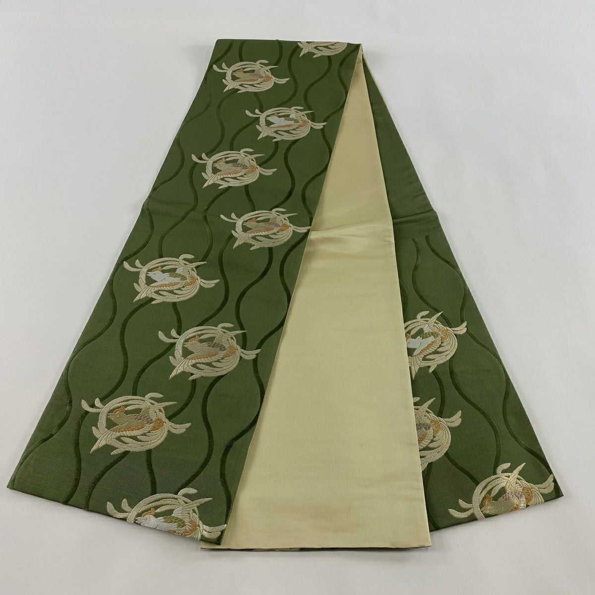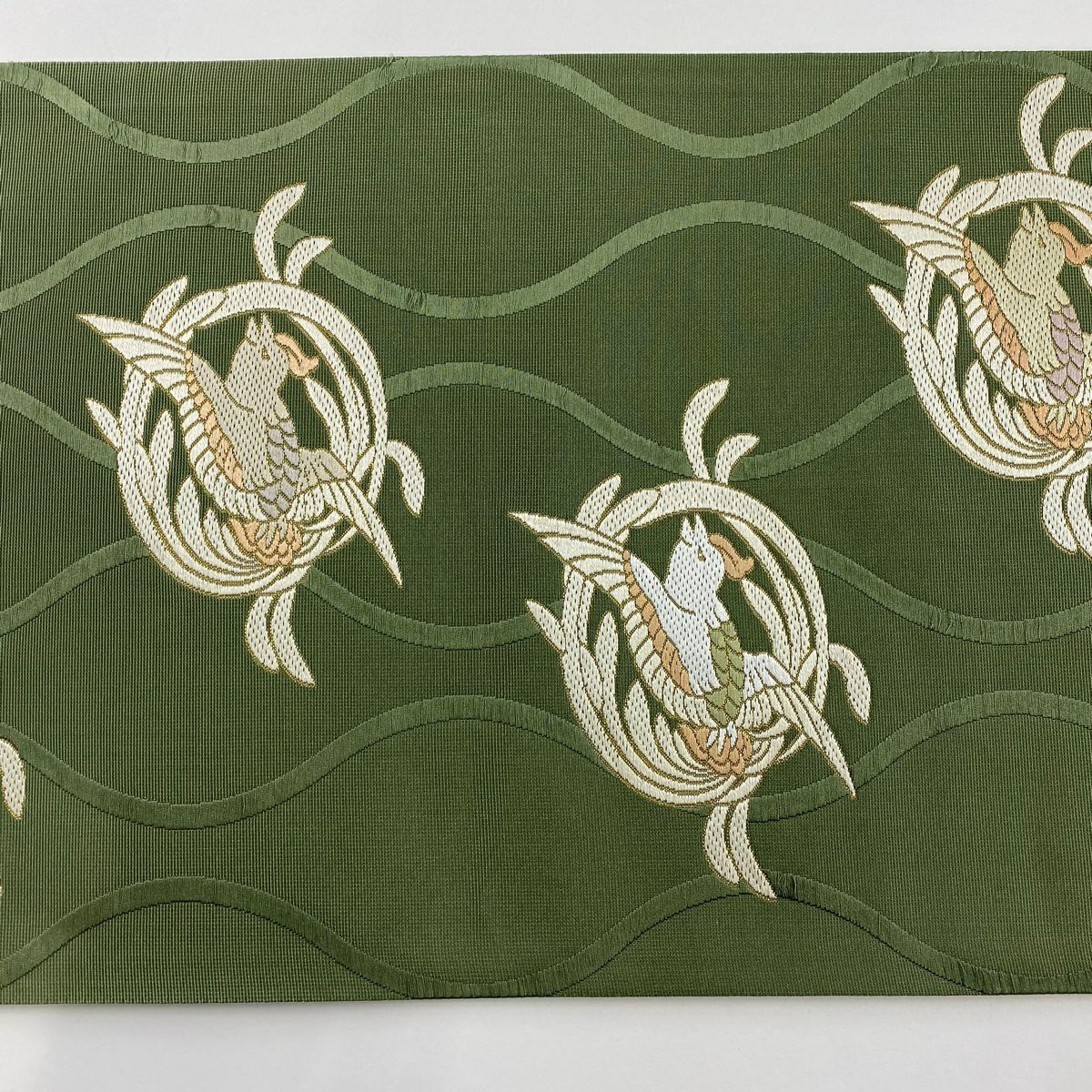 【在庫一掃】 袋帯 秀品 鳳凰 立涌 箔 よもぎ色 六通 正絹