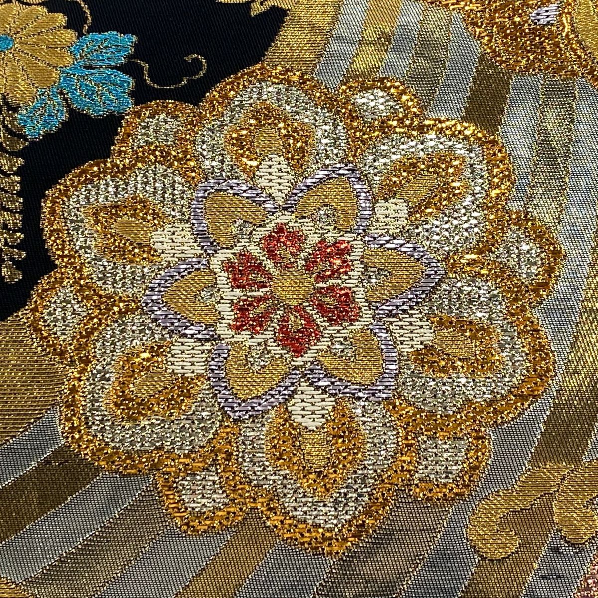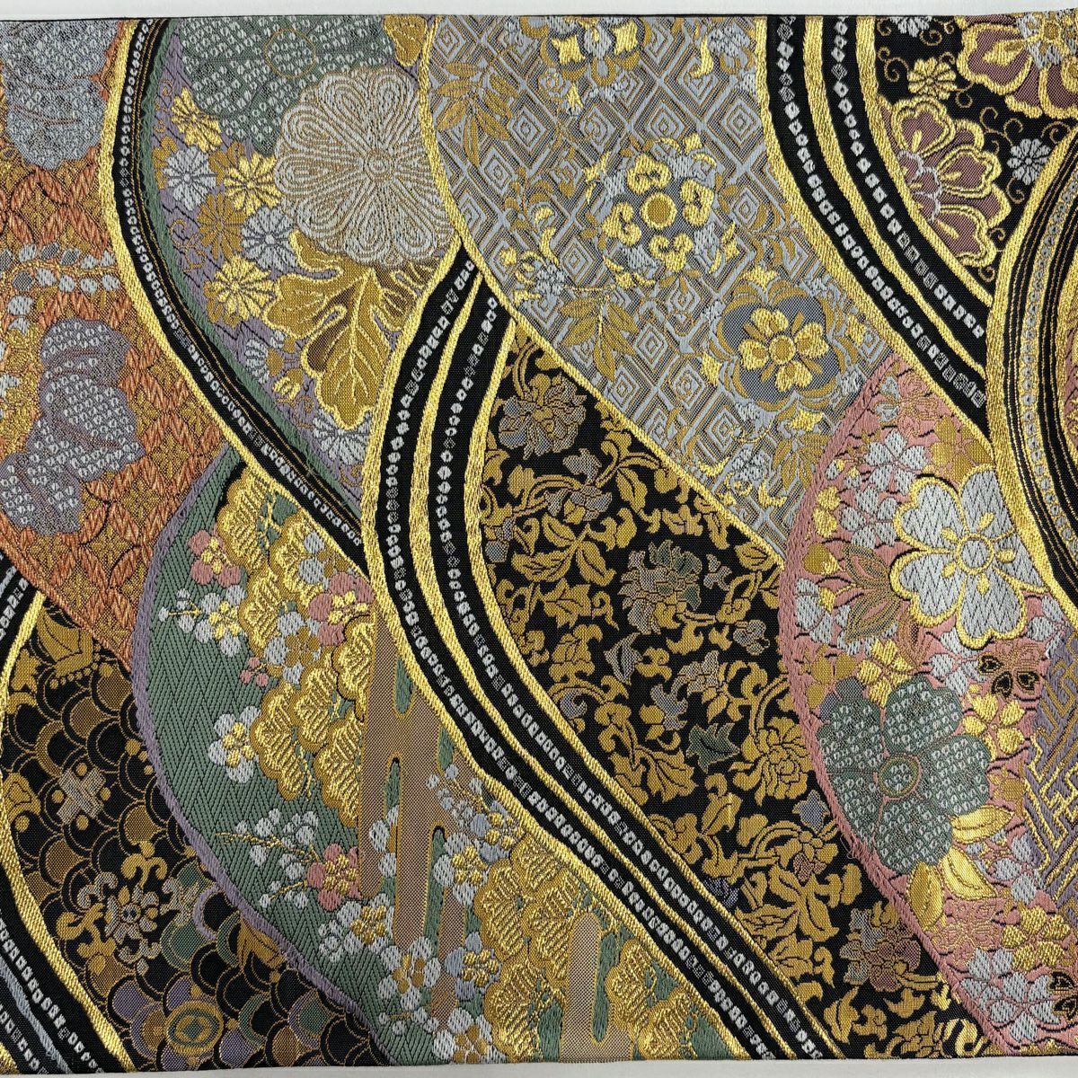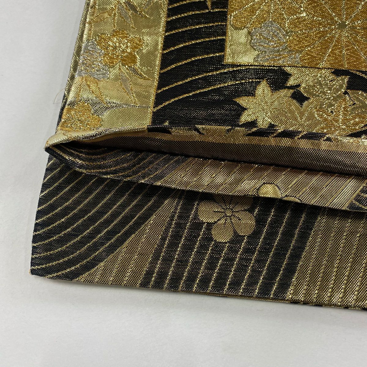 【在庫一掃】 袋帯 秀品 華文 波頭 金糸 箔 黒 六通 正絹