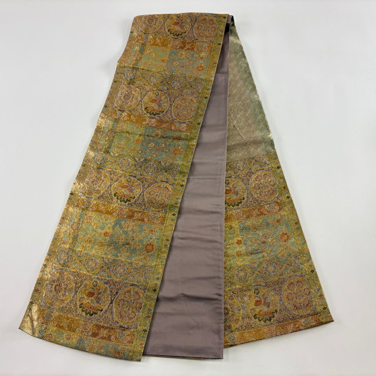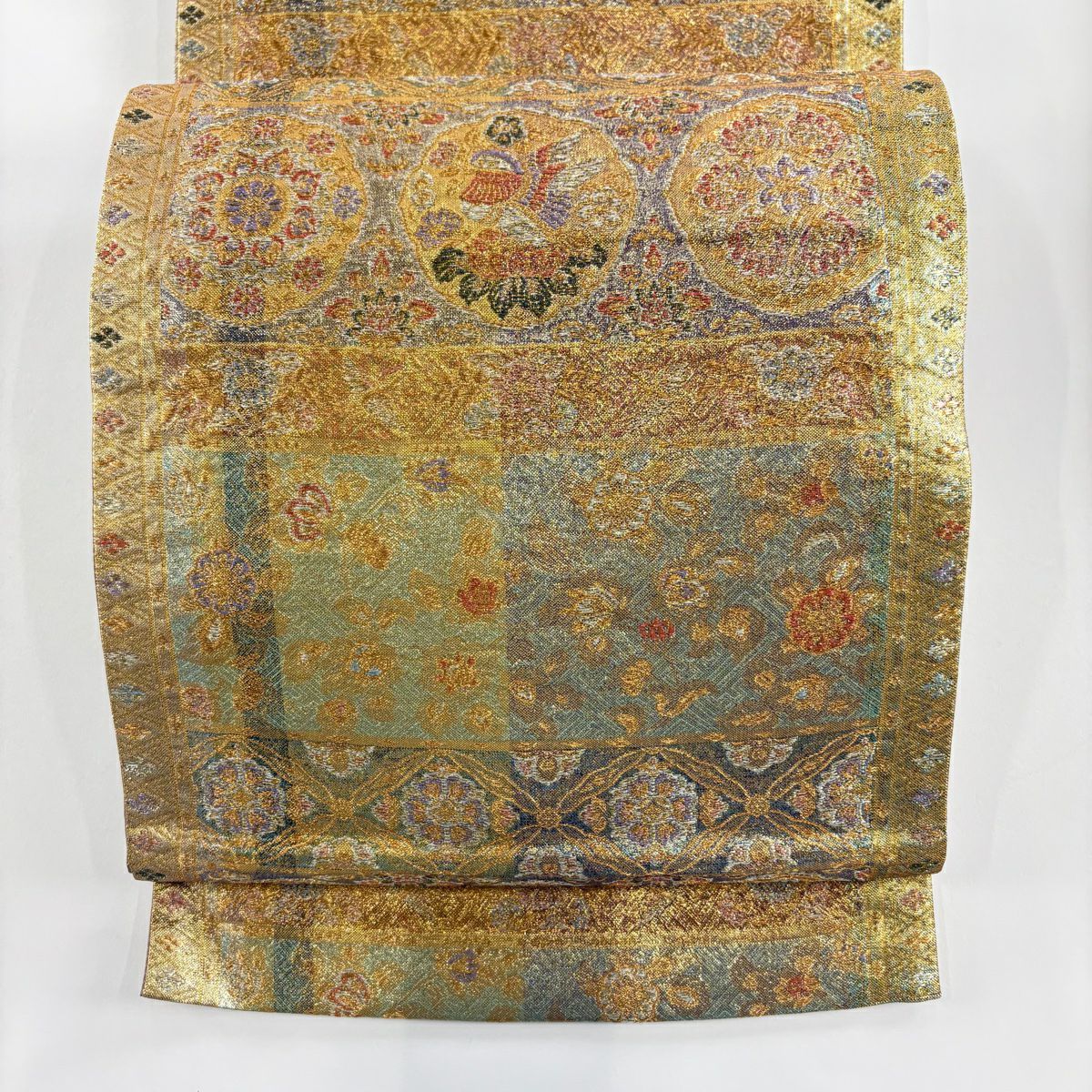 【在庫一掃】 袋帯 秀品 華文 花鳥 箔 金糸 金色 六通 正絹