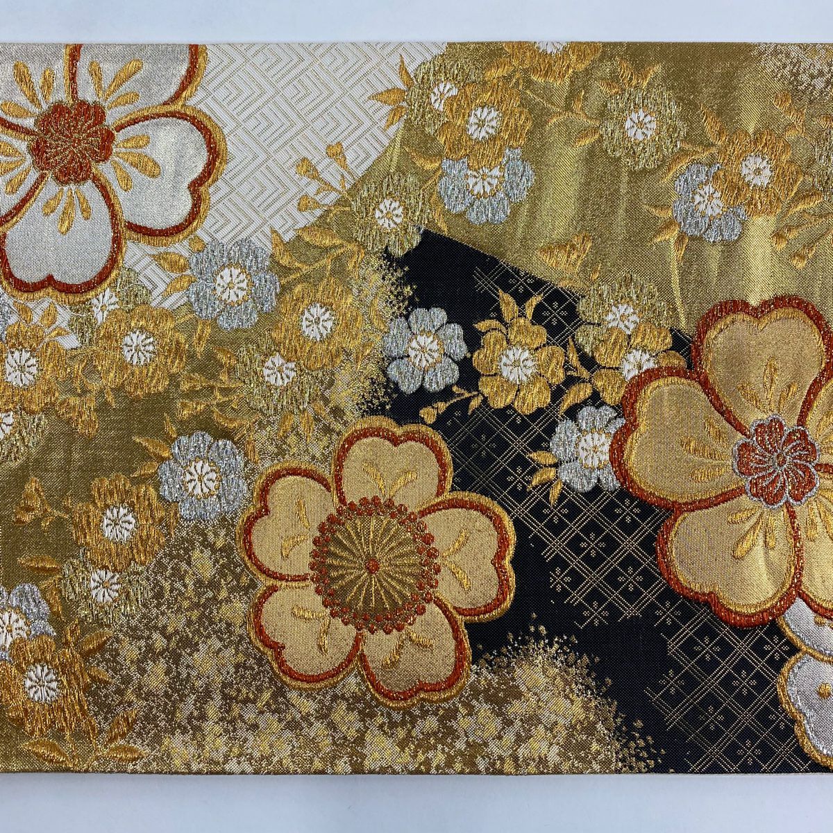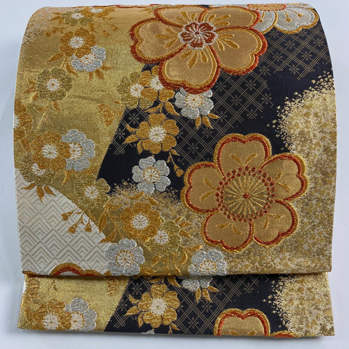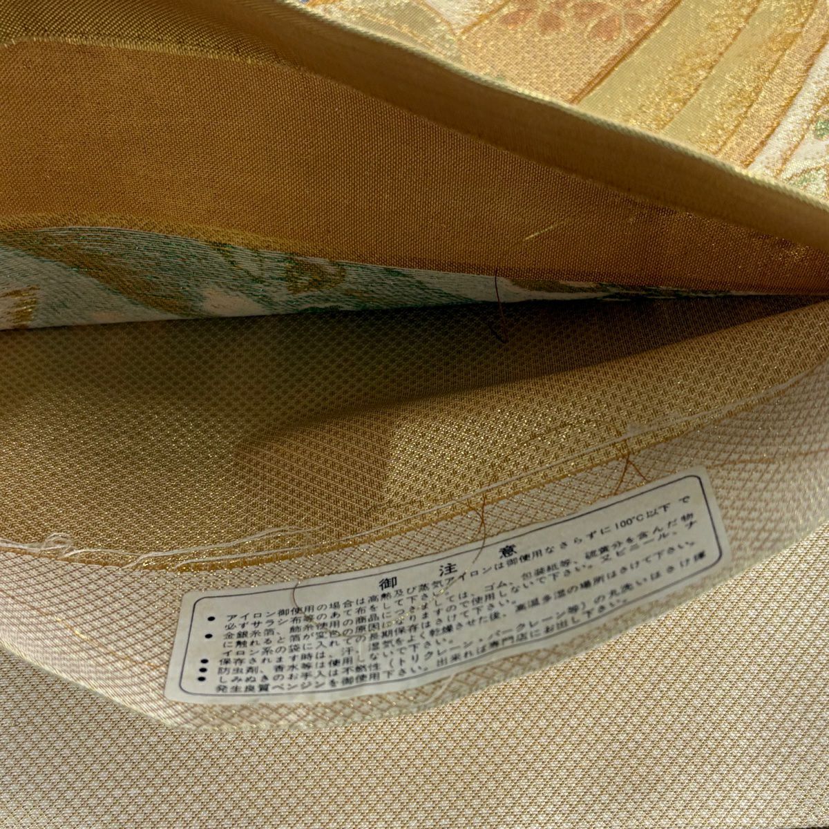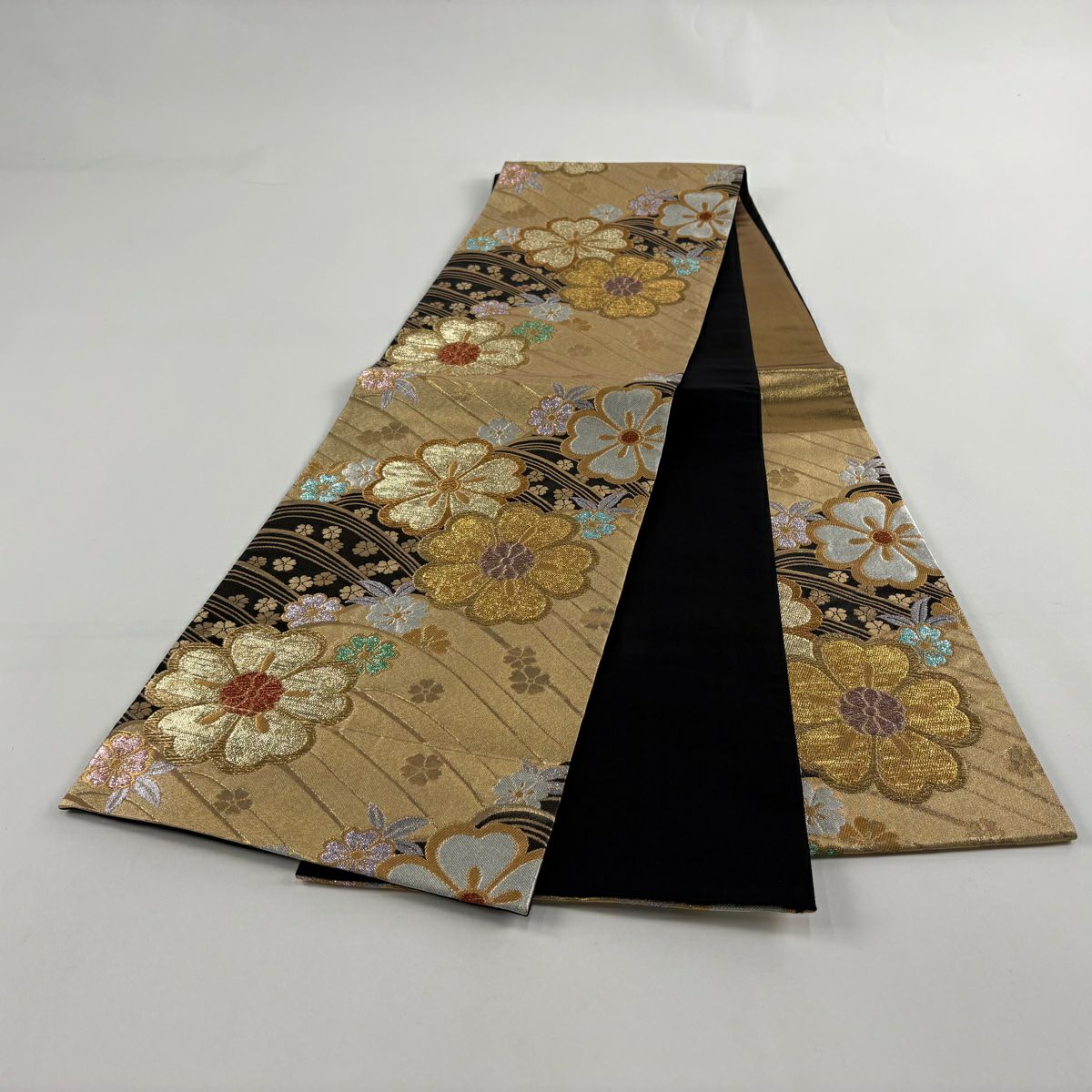 【在庫一掃】 袋帯 秀品 桜 流水 金銀糸 箔 金色 六通 正絹