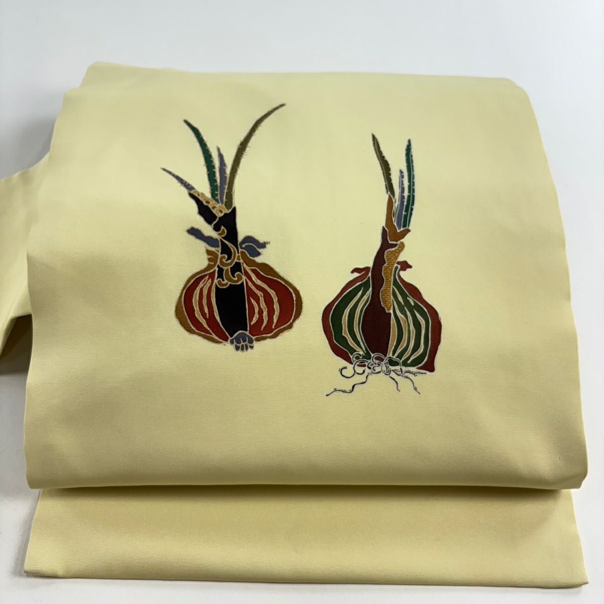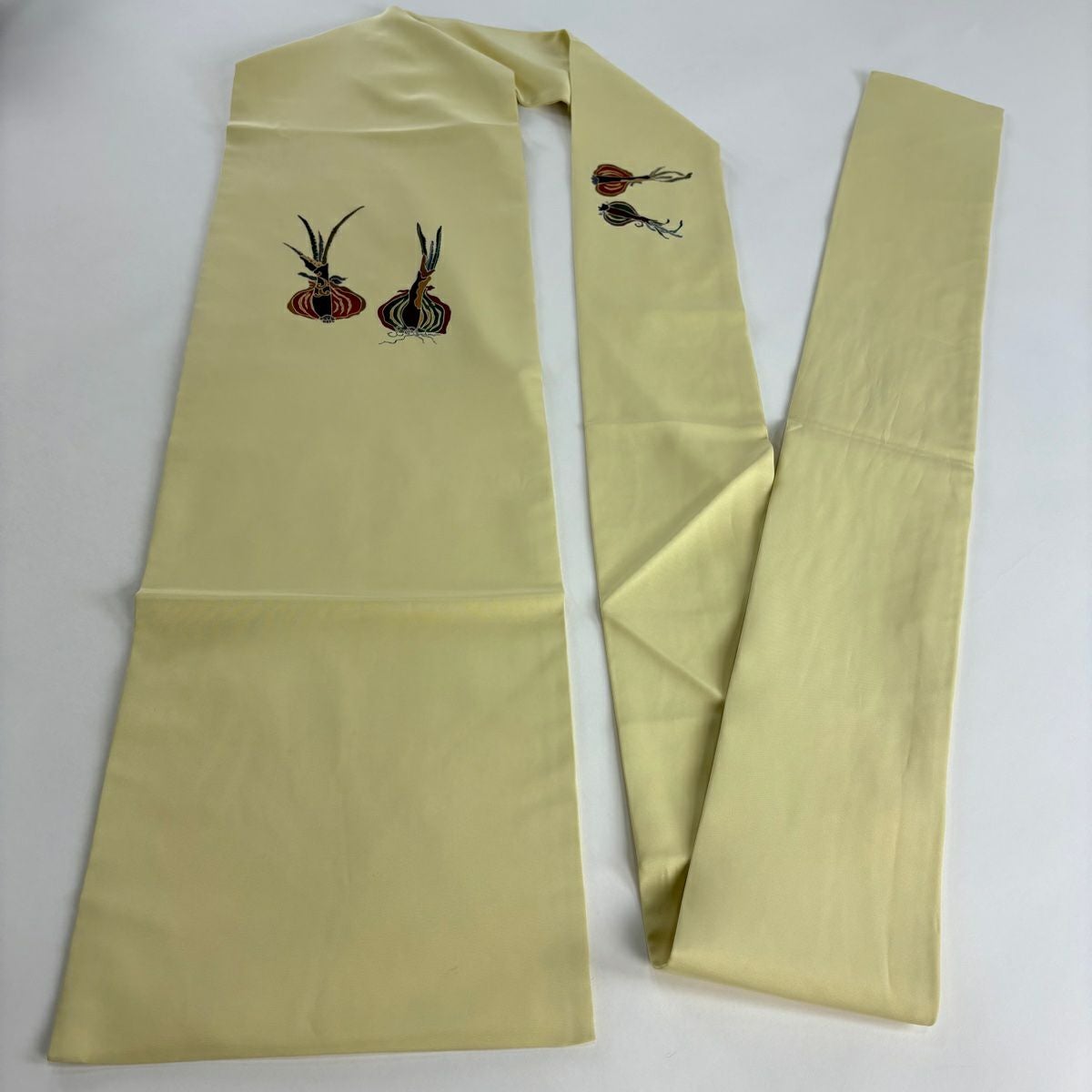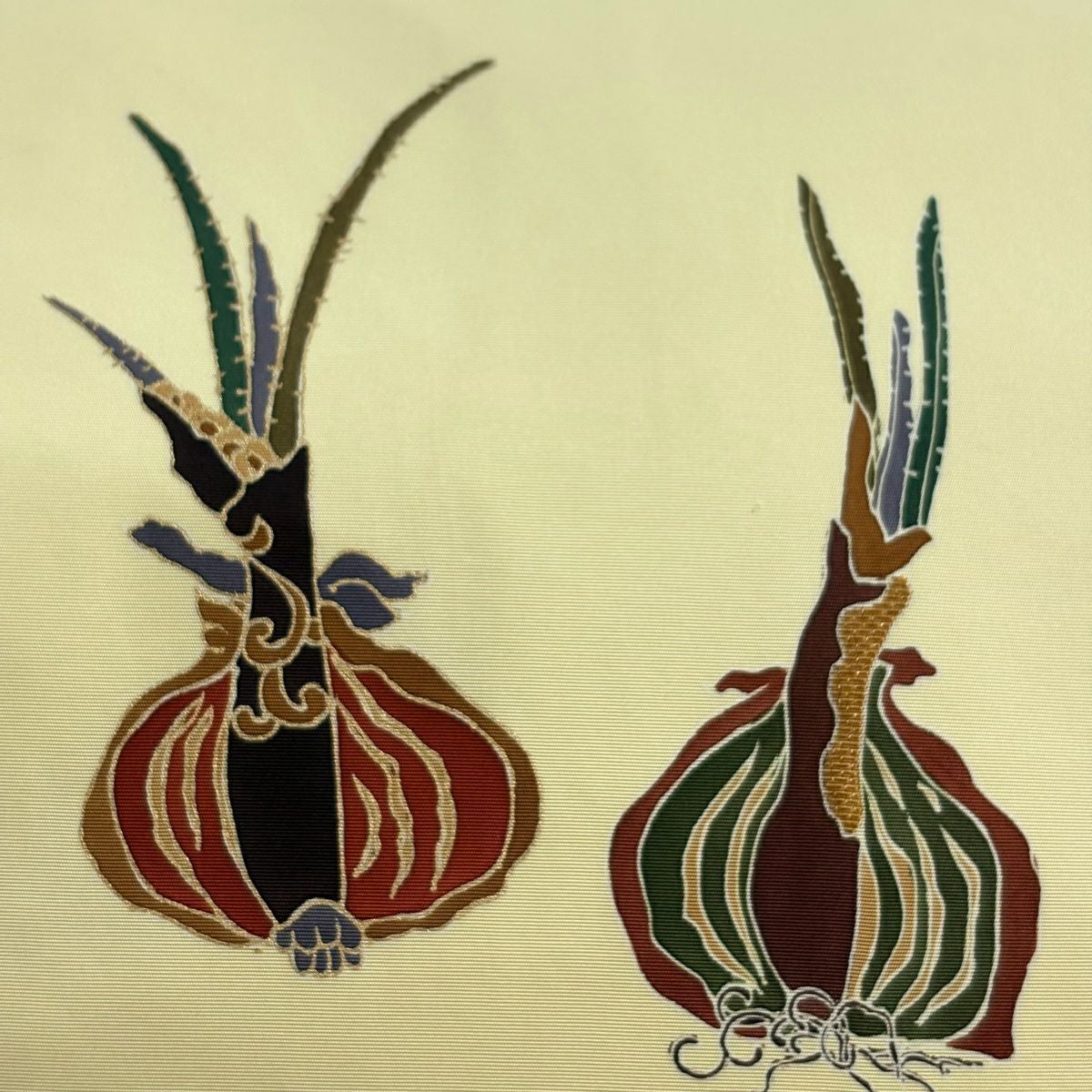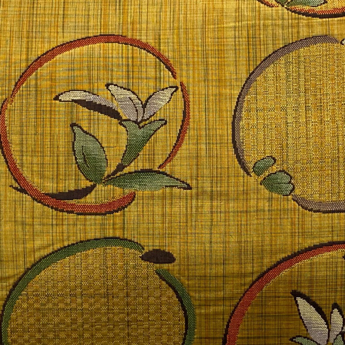 【在庫一掃】 袋帯 秀品 紬地 草花 丸文 黄土色 六通 正絹