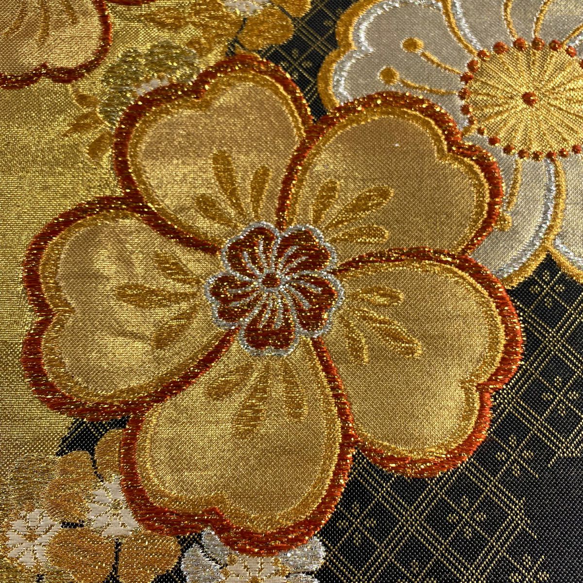 【在庫一掃】 袋帯 秀品 糸巻き 梅 金糸 箔 金色 六通 正絹