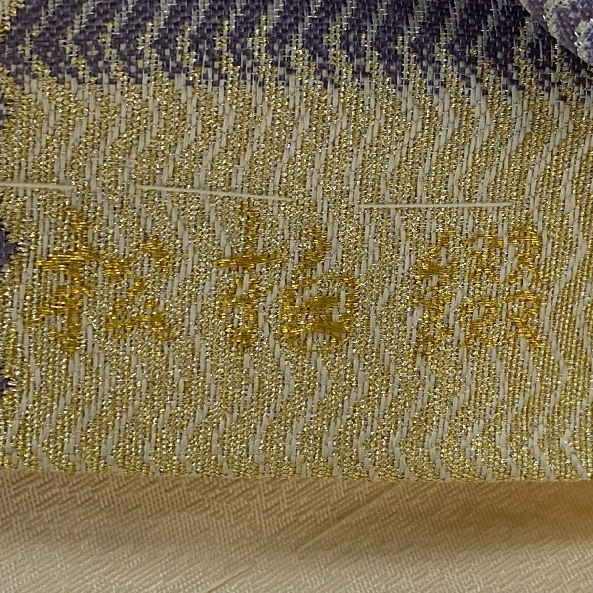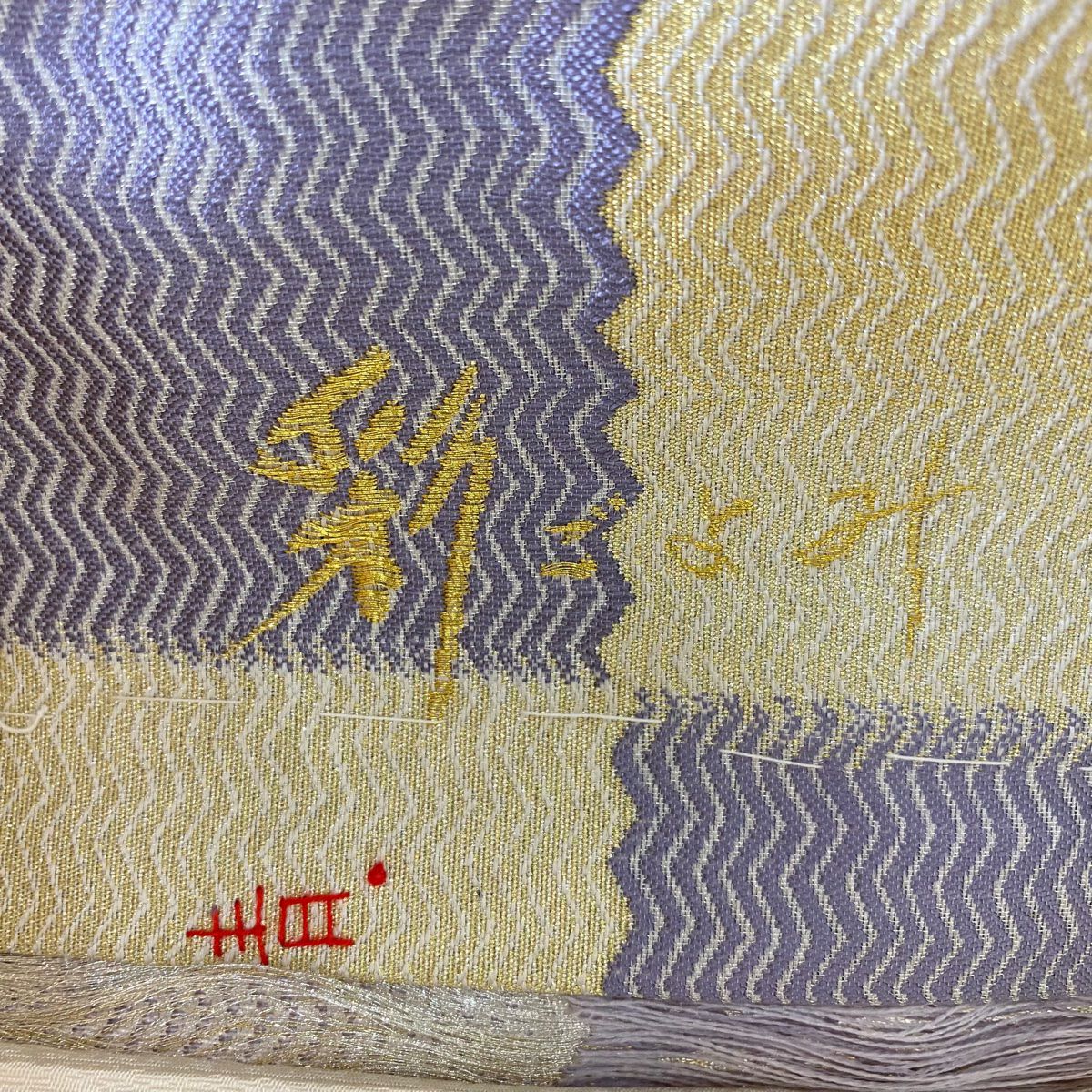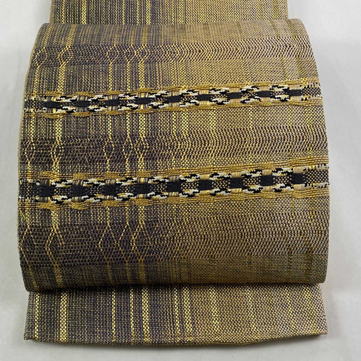 【在庫一掃】 【美品】 袋帯 秀品 横縞 金糸 灰紫 六通 正絹