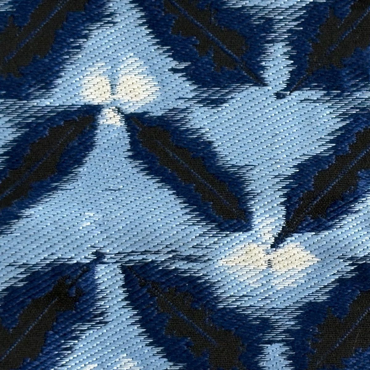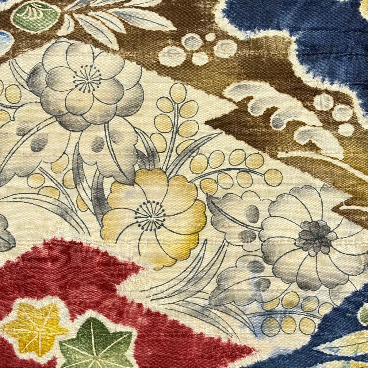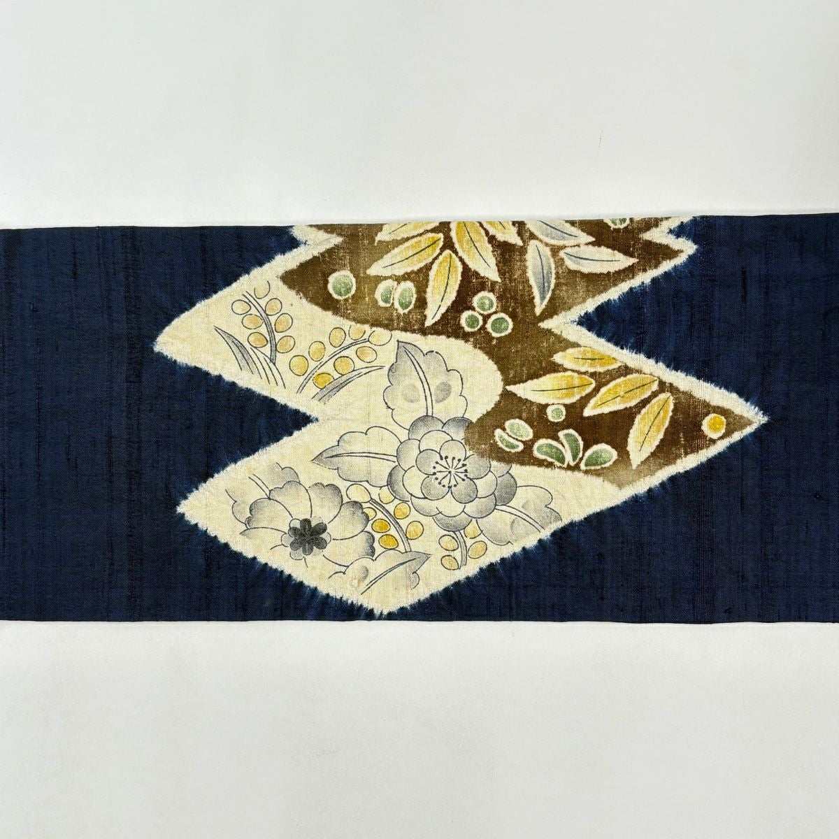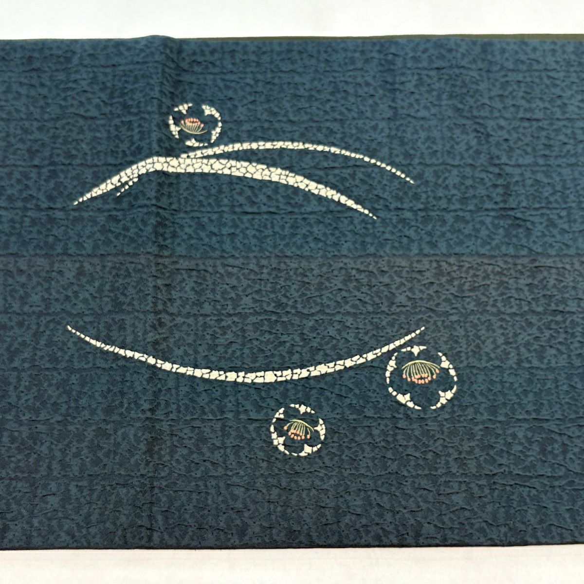 【美品】角帯 秀品 葉柄 花 藍色 正絹