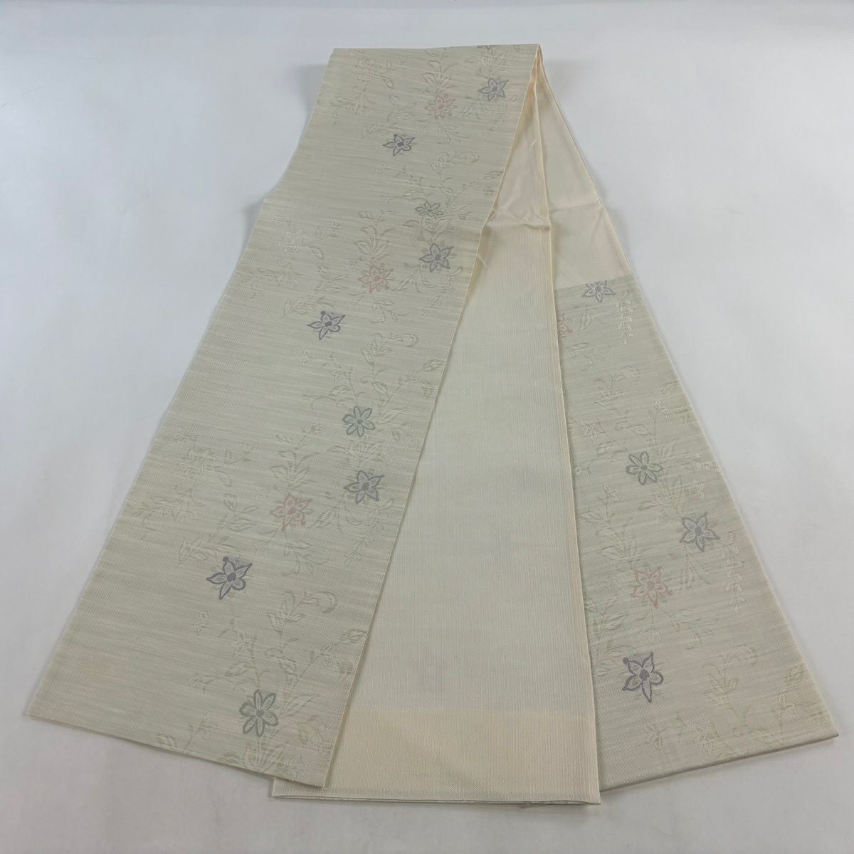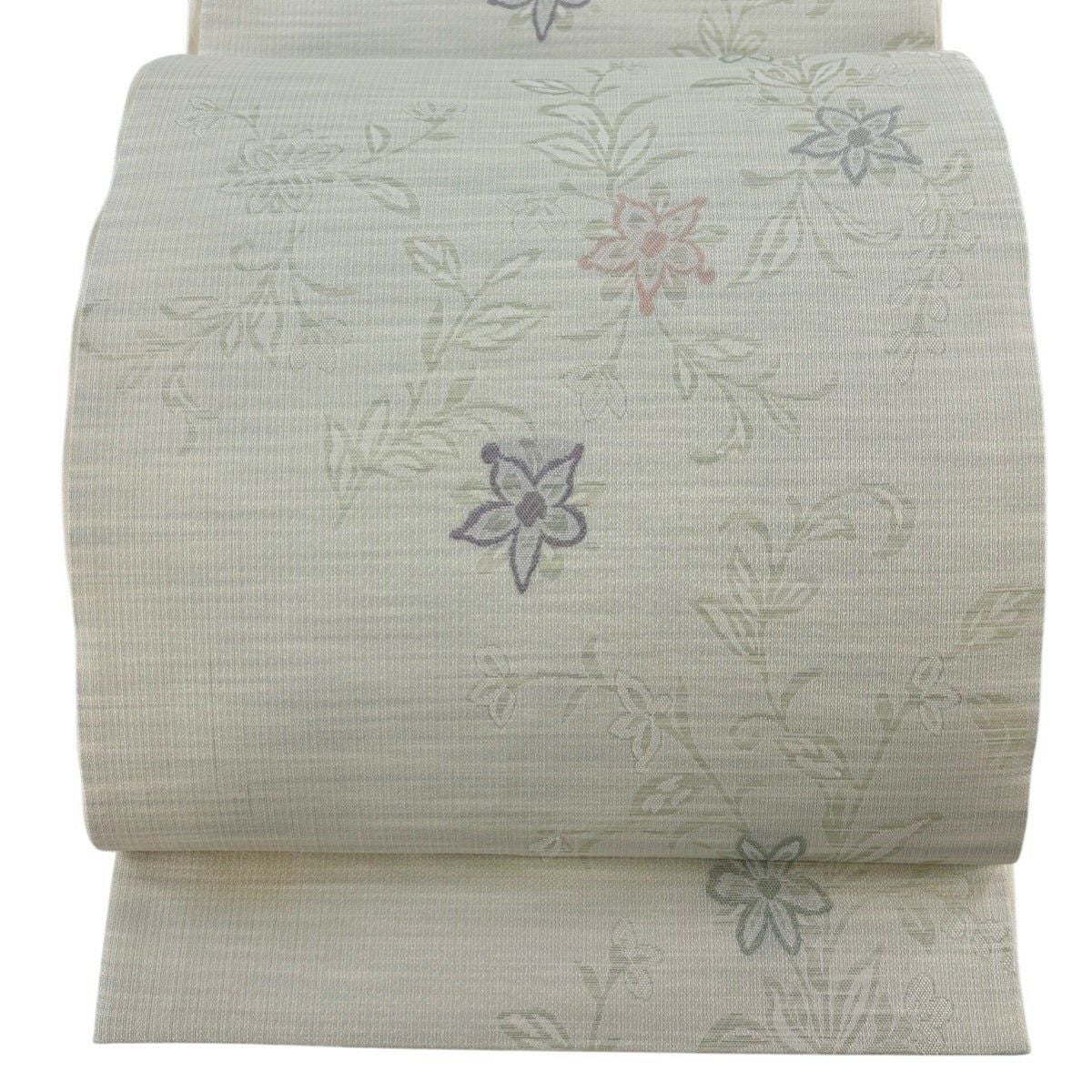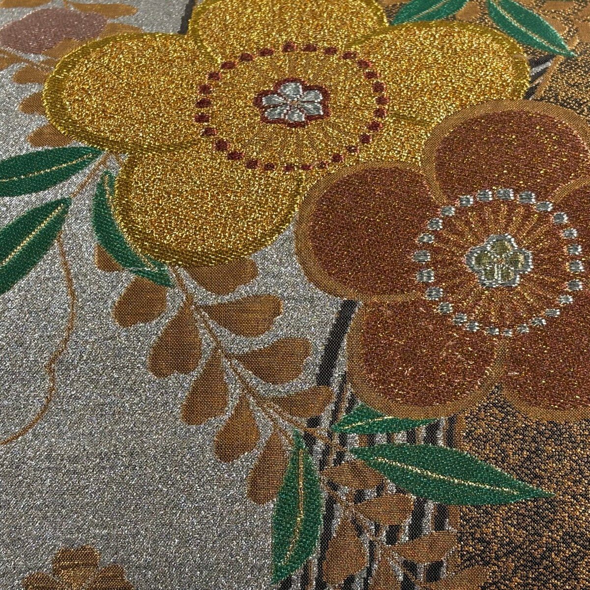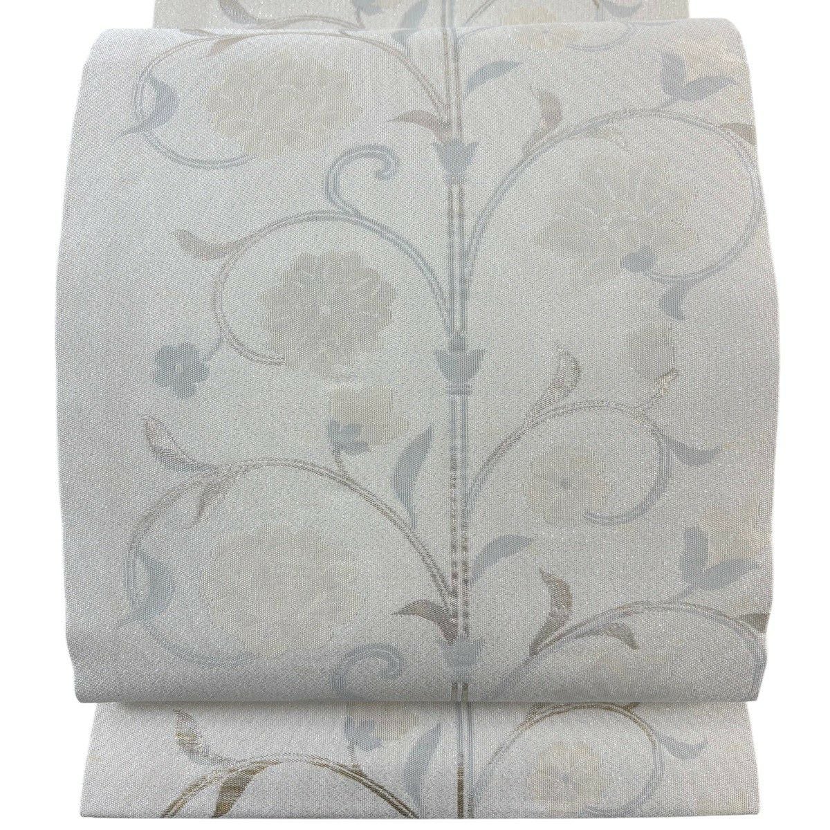 名古屋帯 秀品 枝花 箔 クリーム 正絹