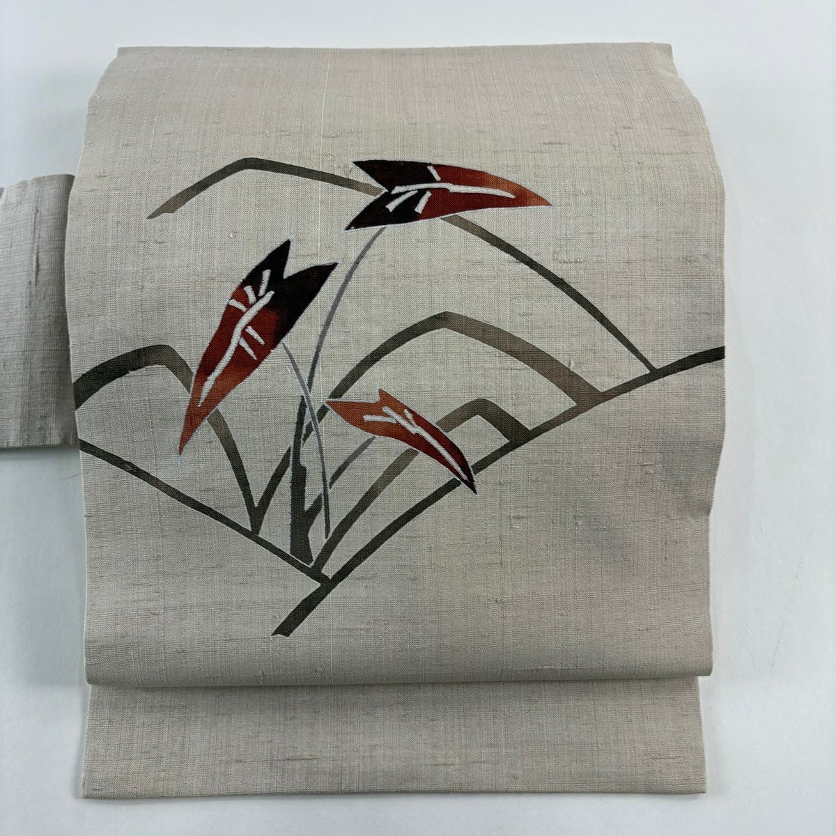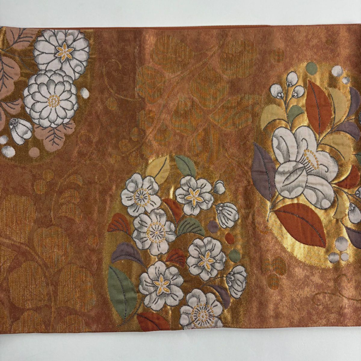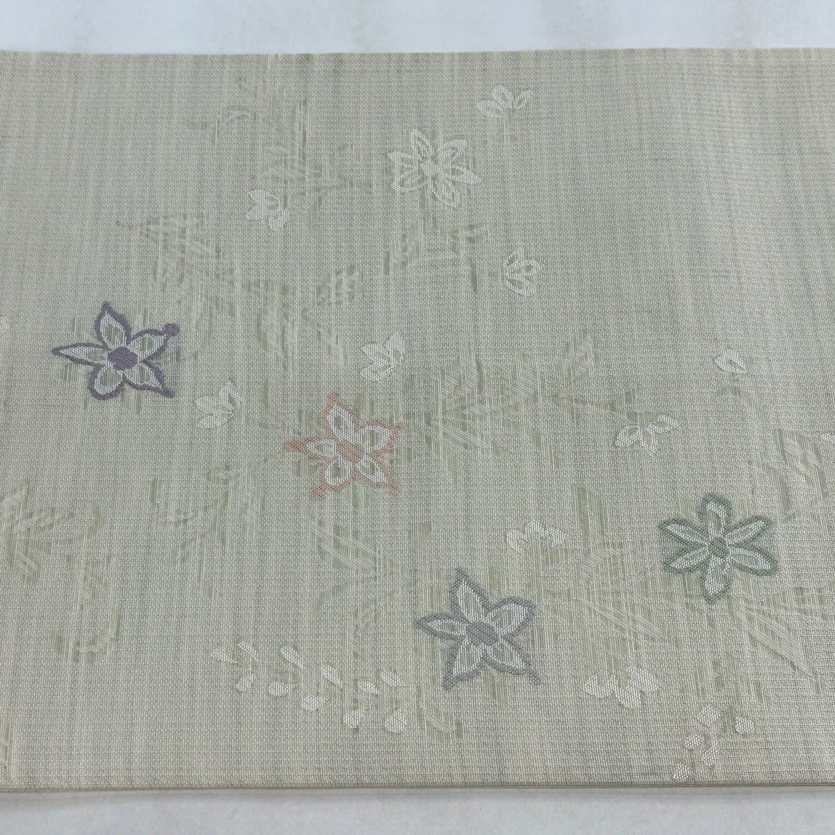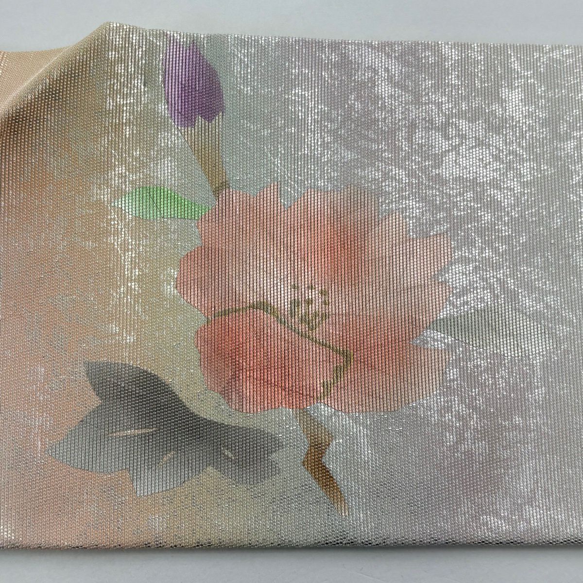 名古屋帯 秀品 枝花 箔 クリーム 正絹