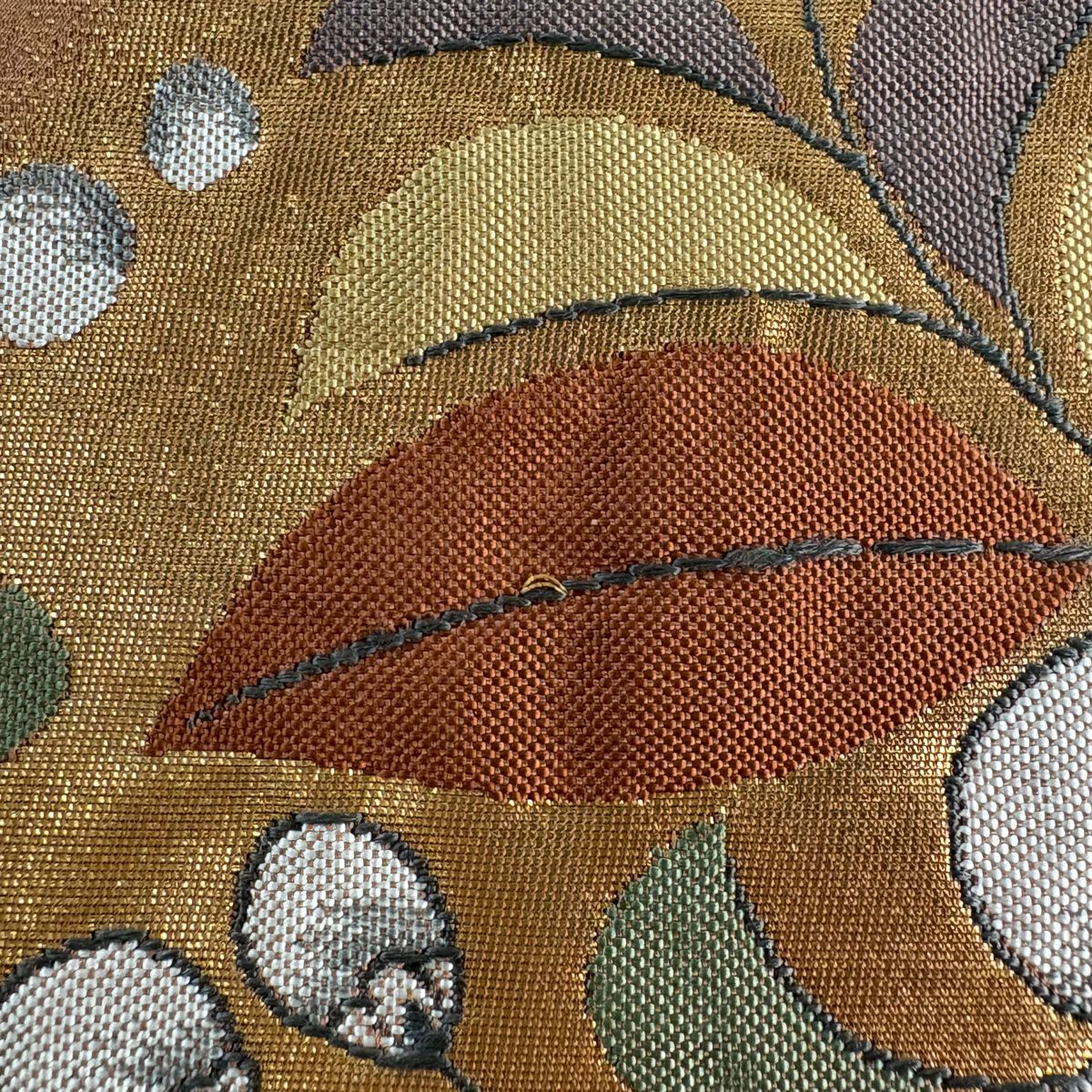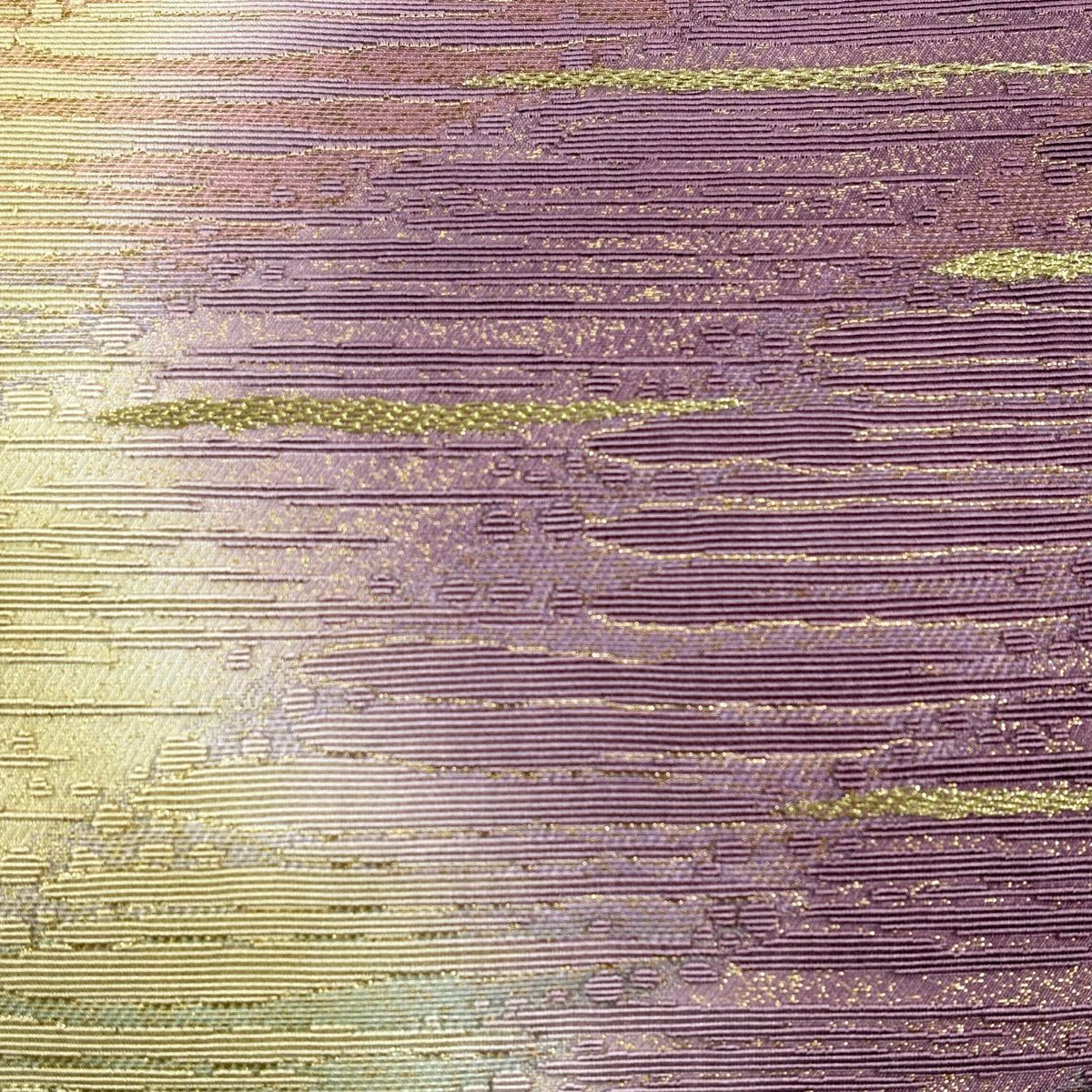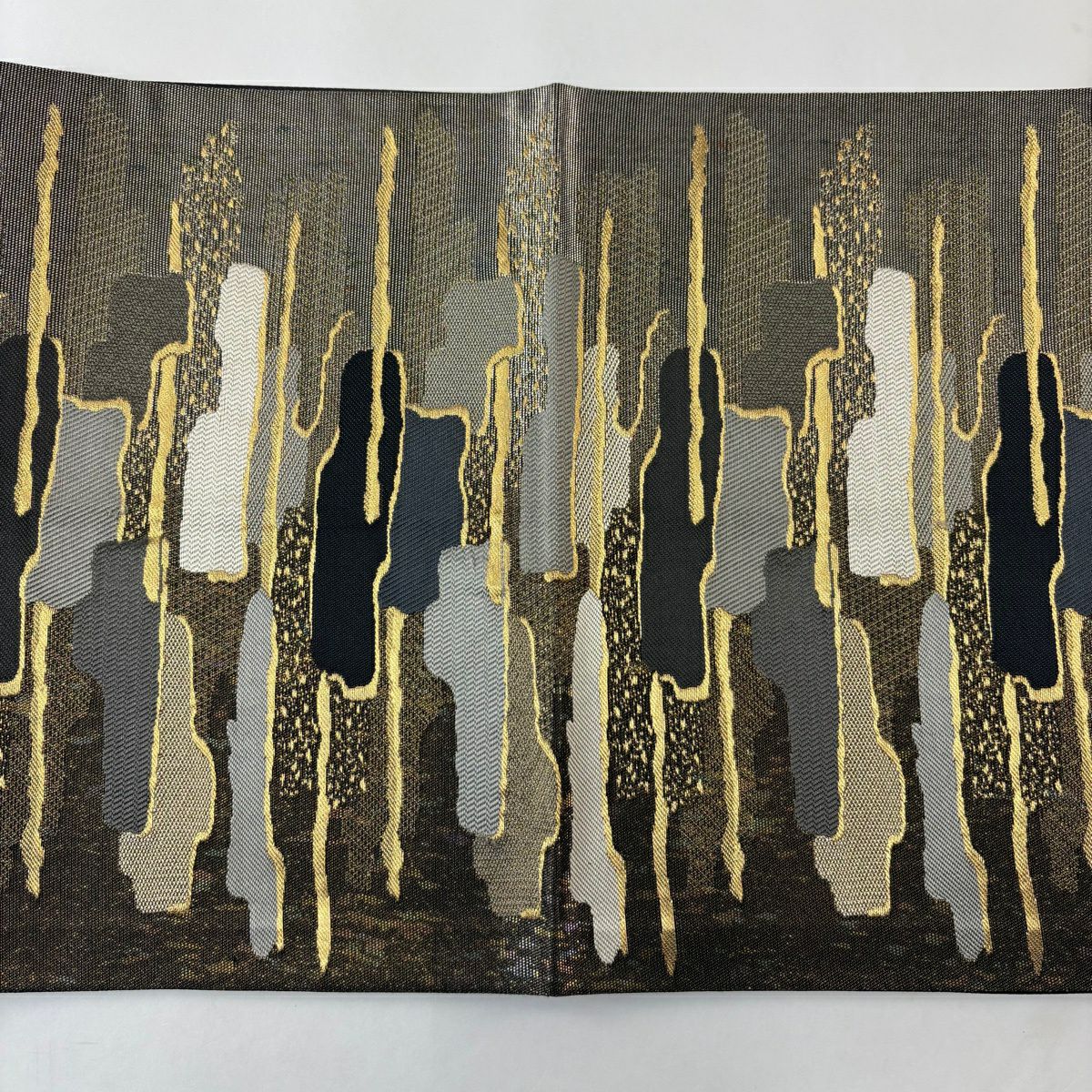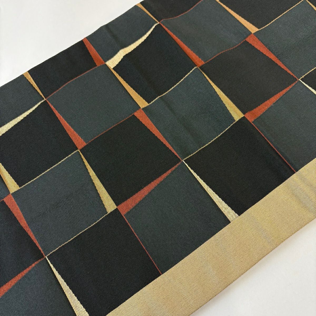 袋帯 秀品 幾何学 箔 金色 全通 正絹