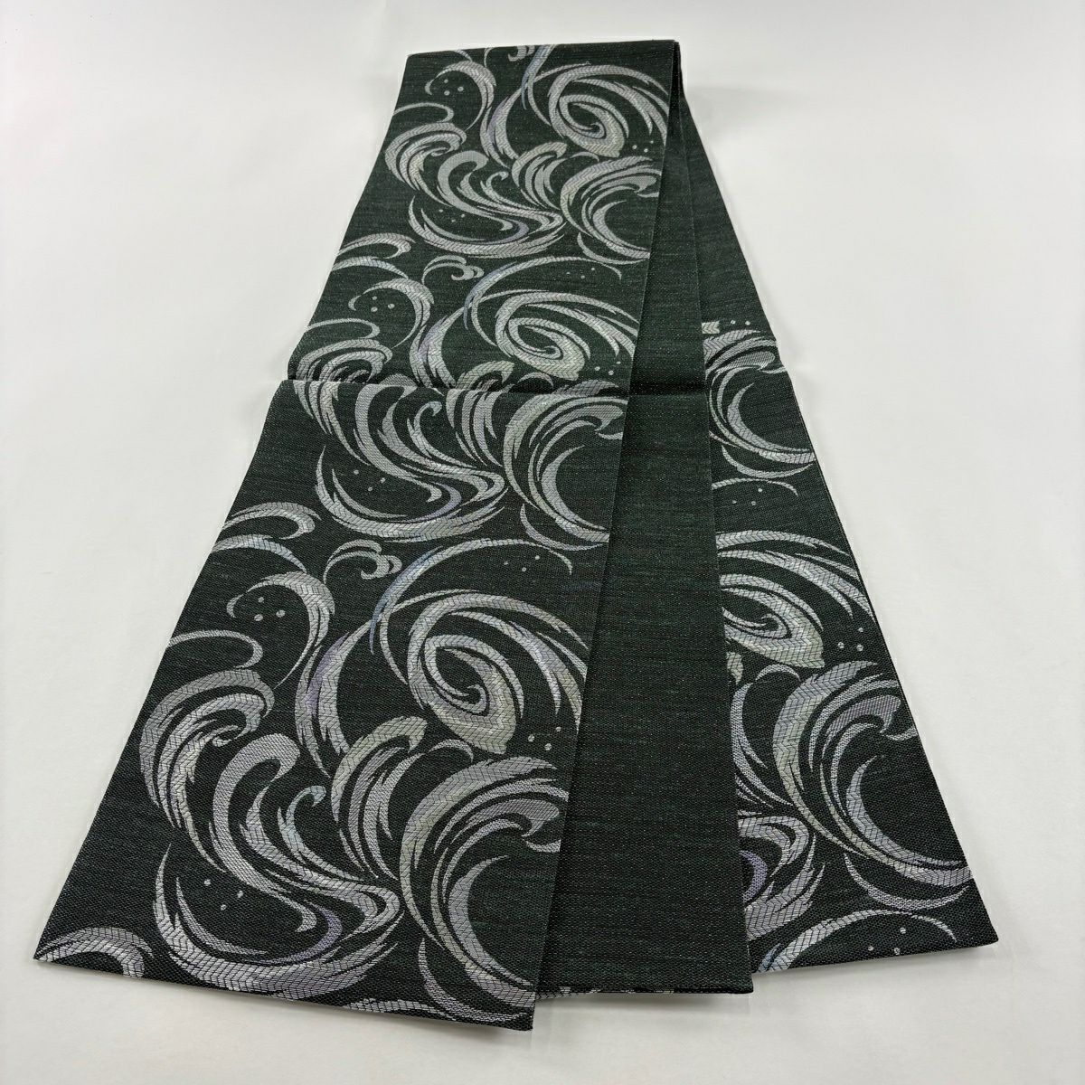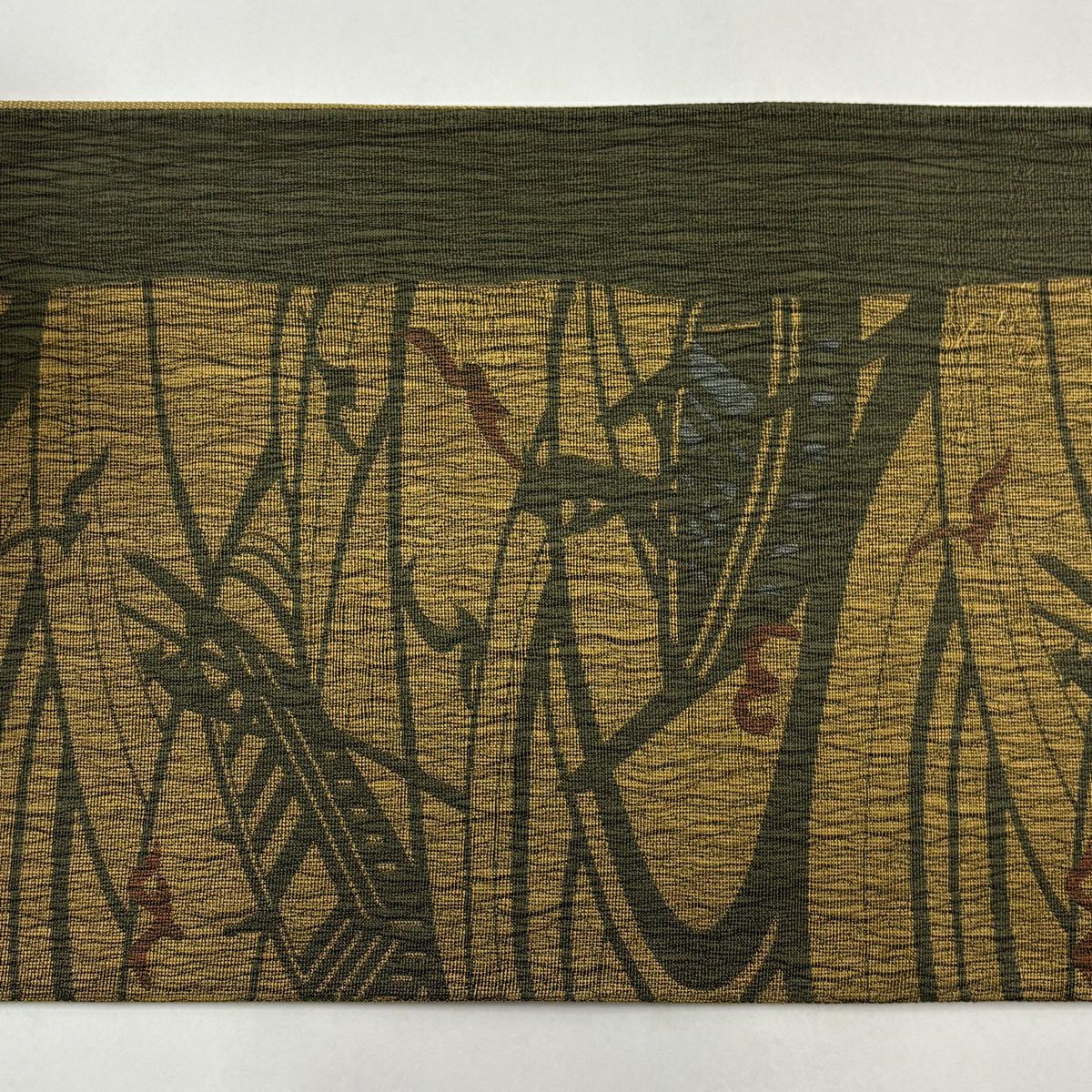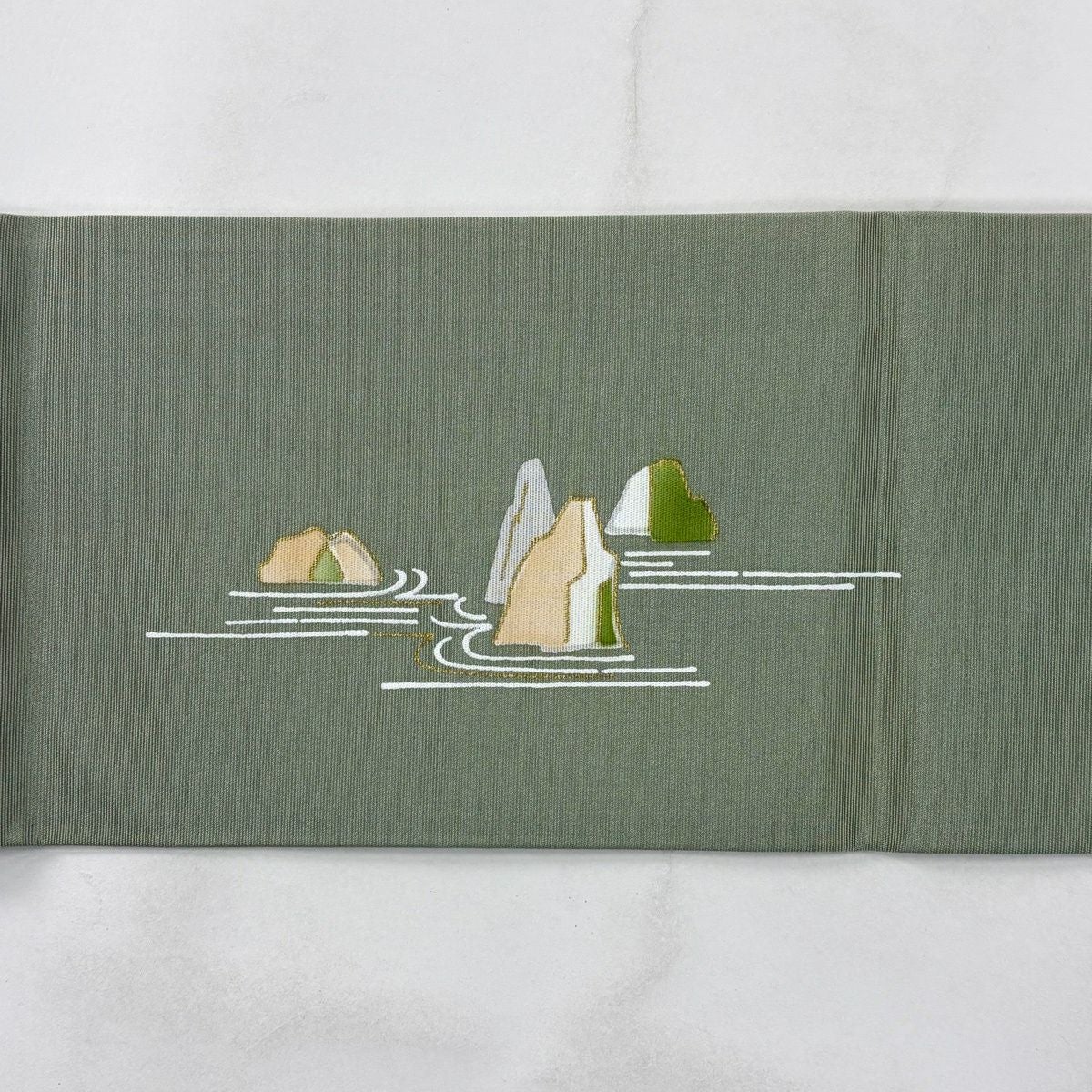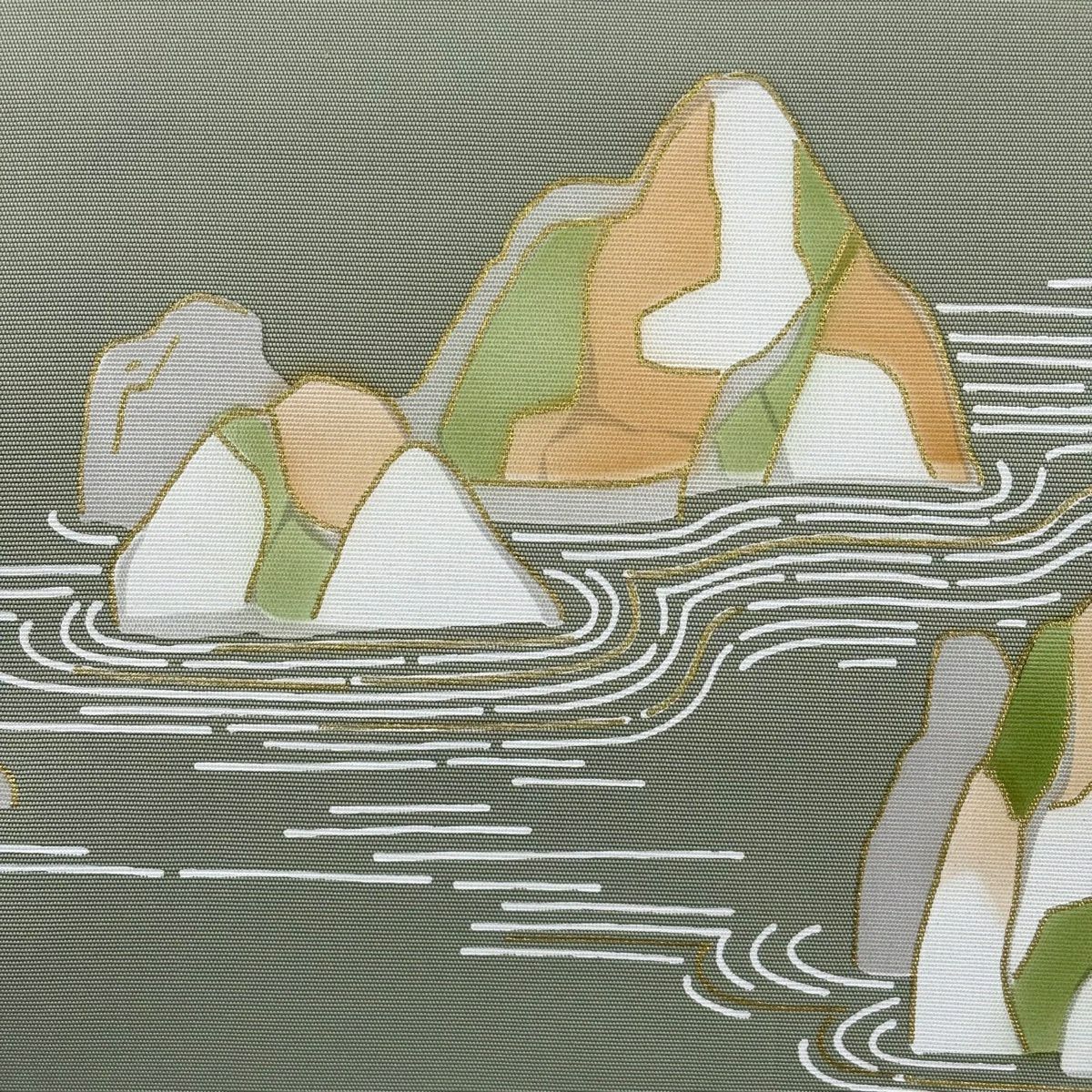 名古屋帯 秀品 枯山水 金彩 灰緑 正絹