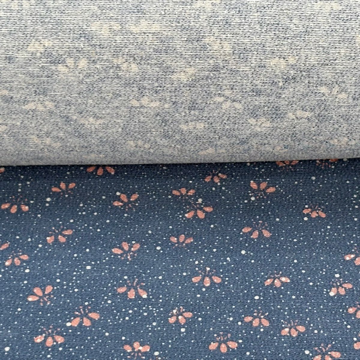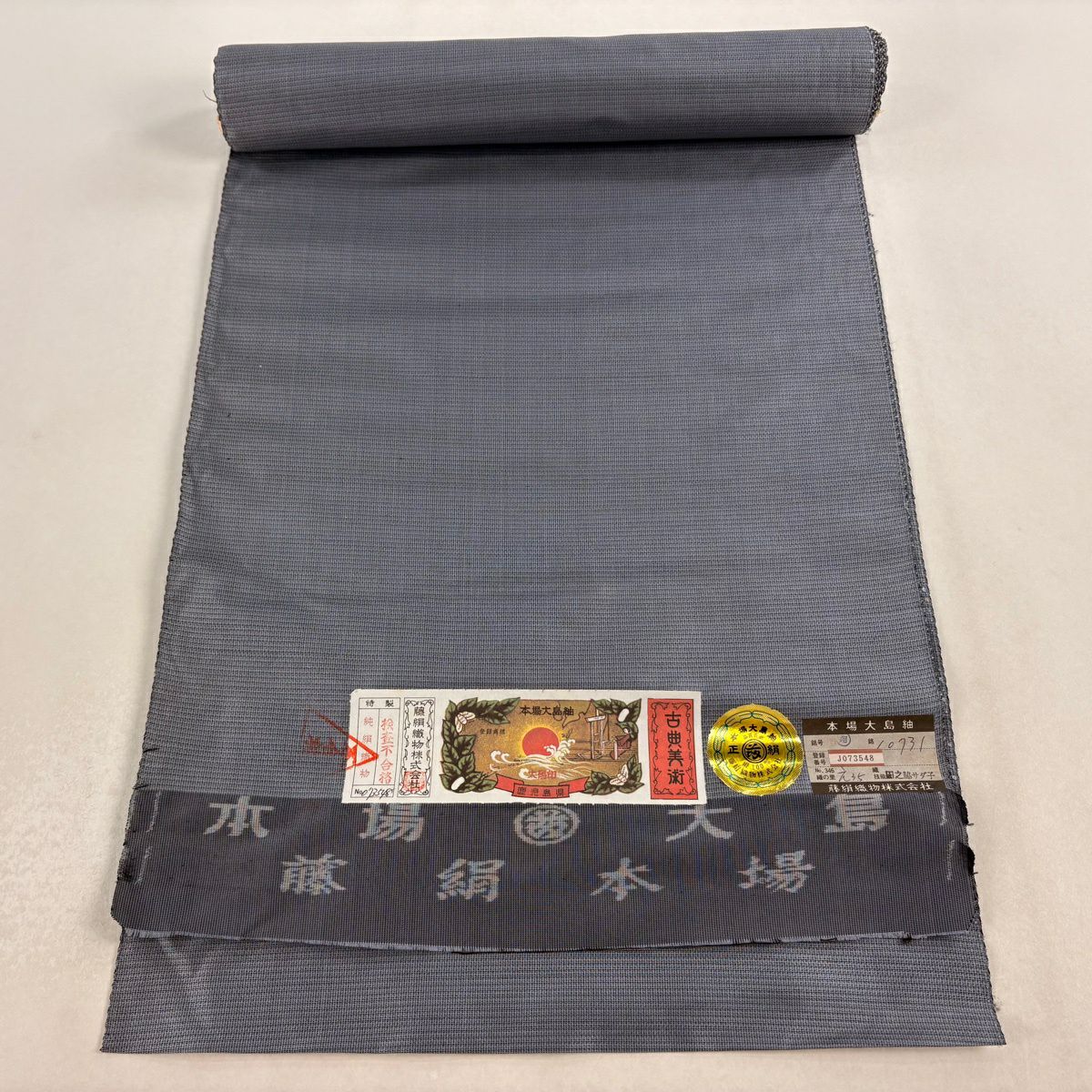 反物 秀品 小紋 紬地 花 青灰色 正絹