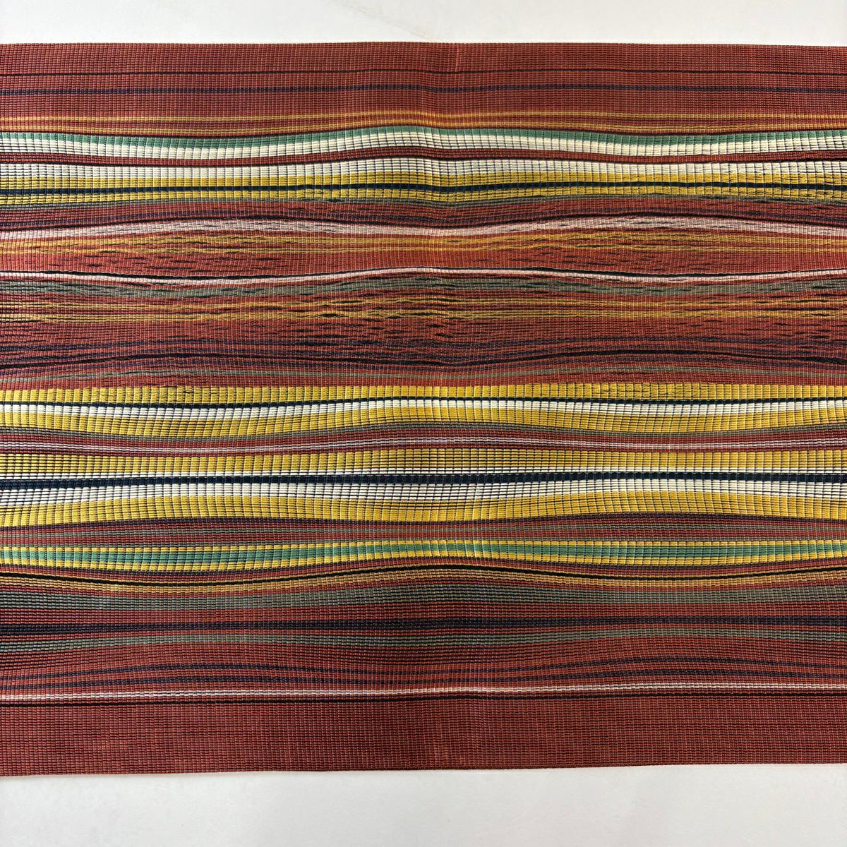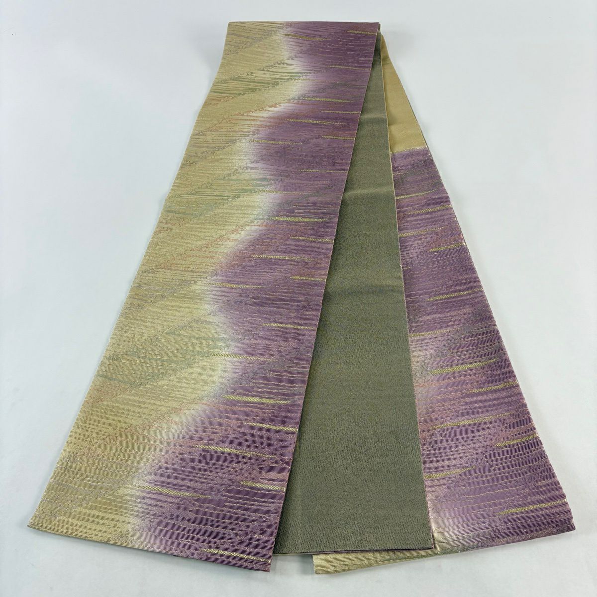 【美品】 袋帯 秀品 縞 緑 全通 正絹