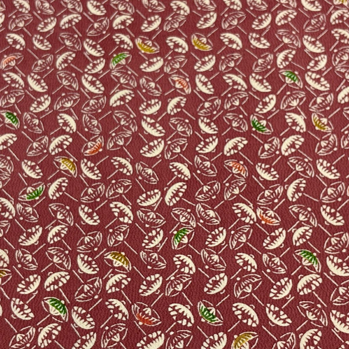 反物 秀品 小紋 番傘 縮緬 小豆色 正絹