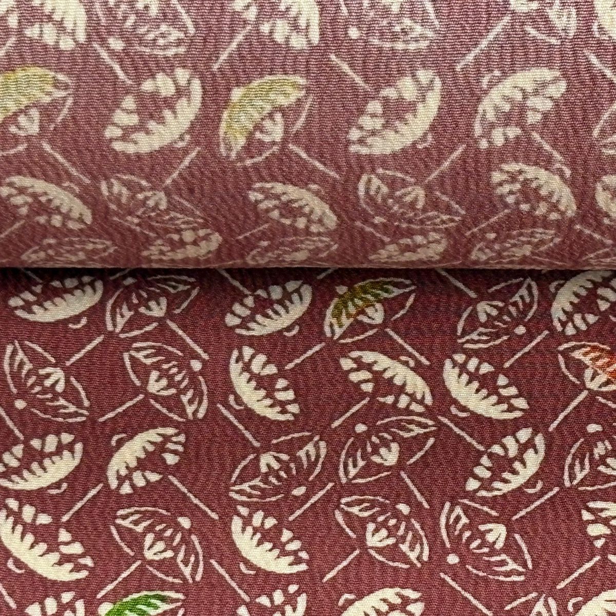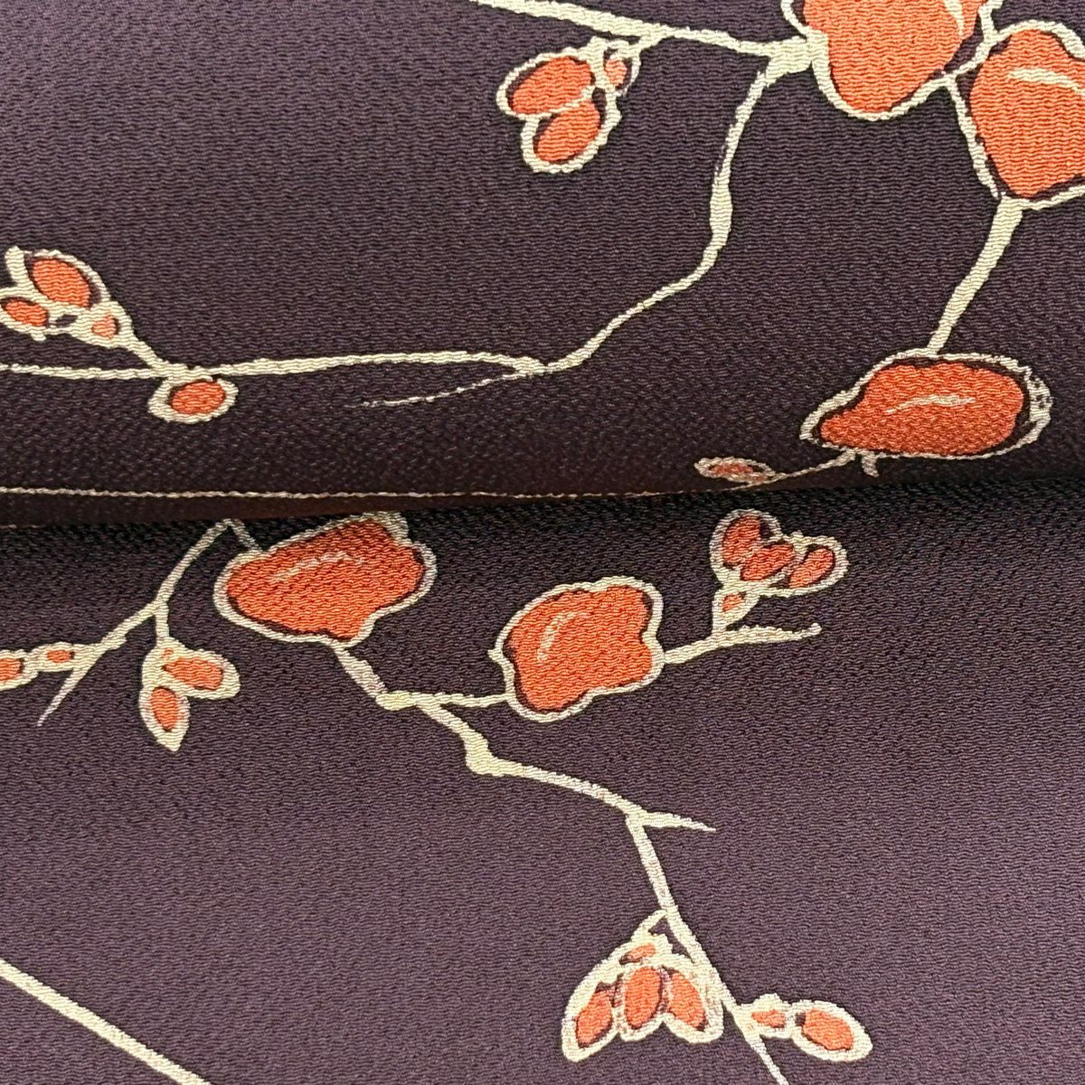 反物 秀品 小紋 枝梅 縮緬 茶紫 正絹