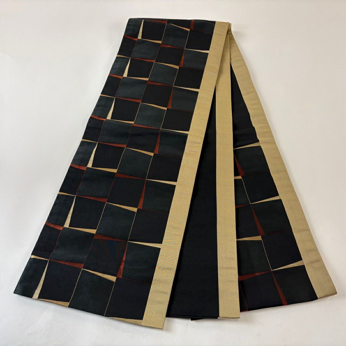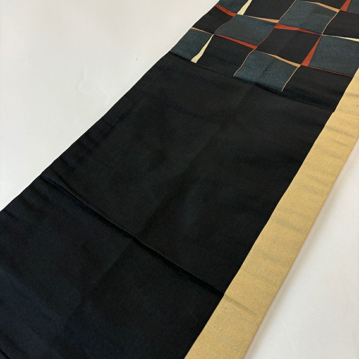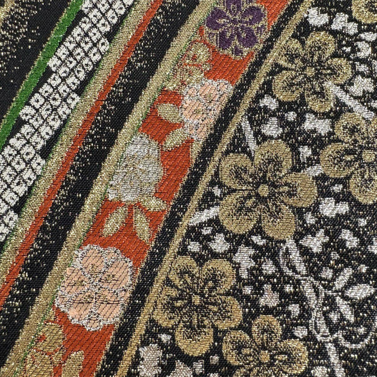 名古屋帯 秀品 幾何学模様 箔 黒 正絹