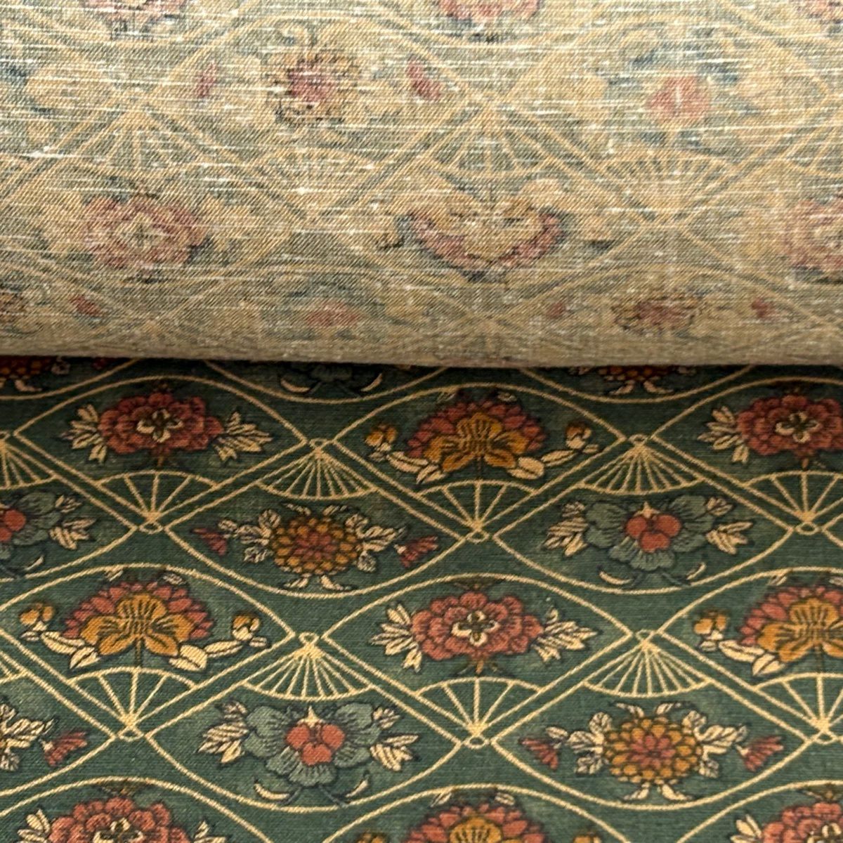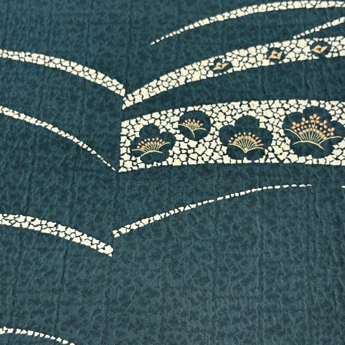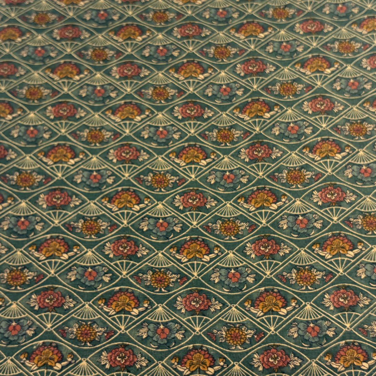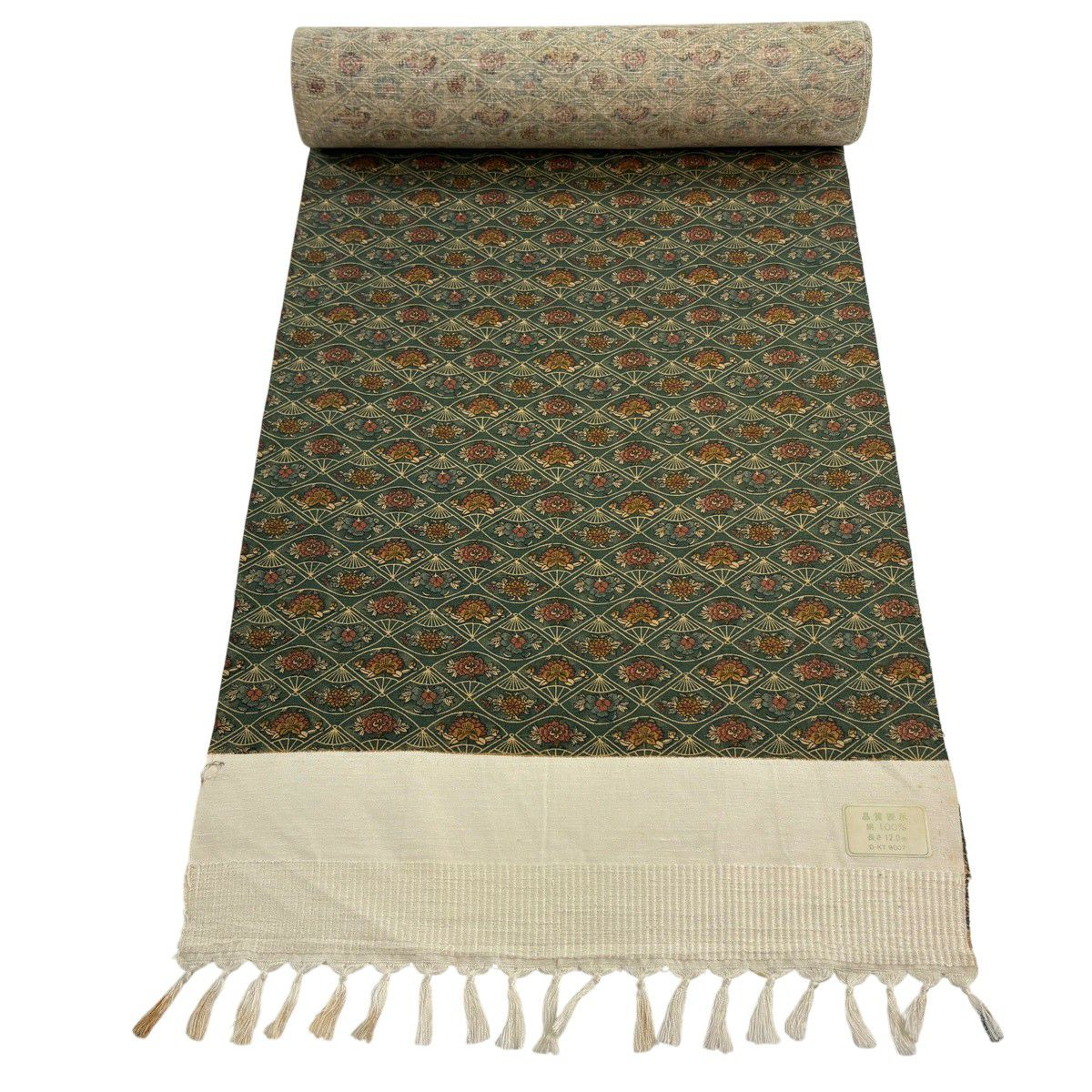 反物 秀品 小紋 紬地 扇 椿 緑 正絹