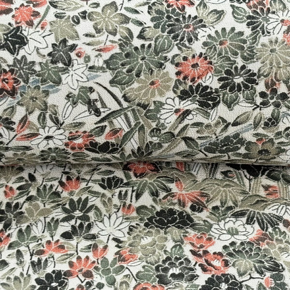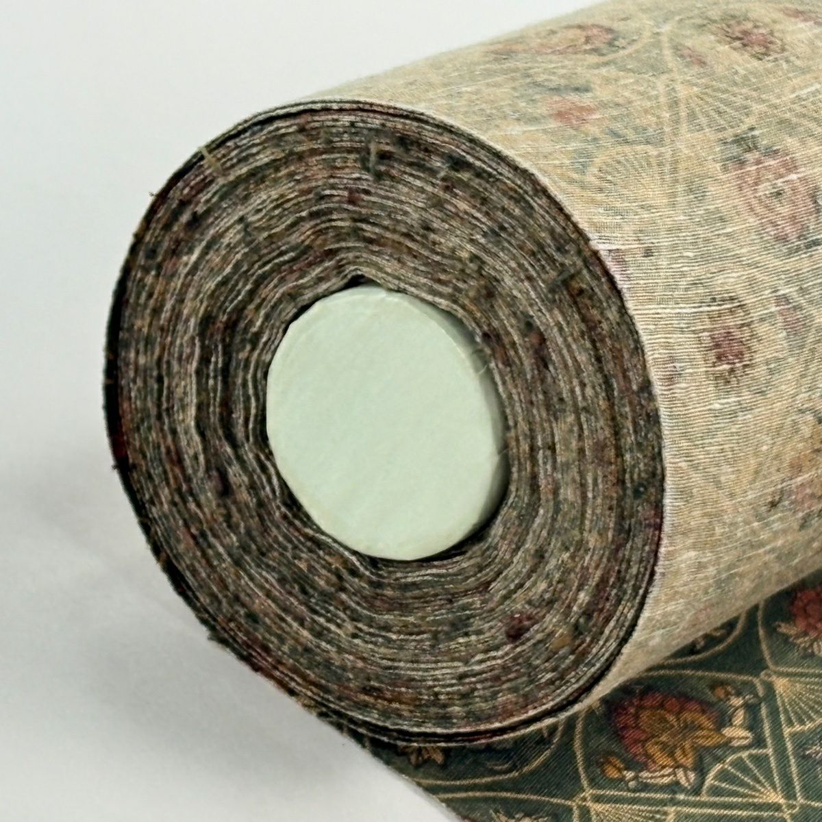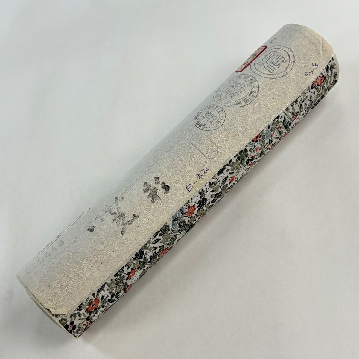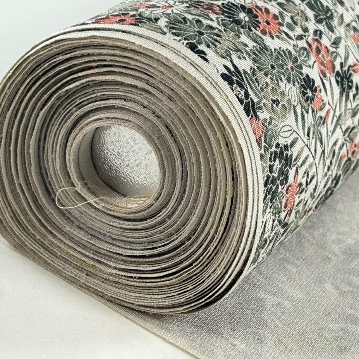 反物 秀品 小紋 草花 流水 灰緑 正絹