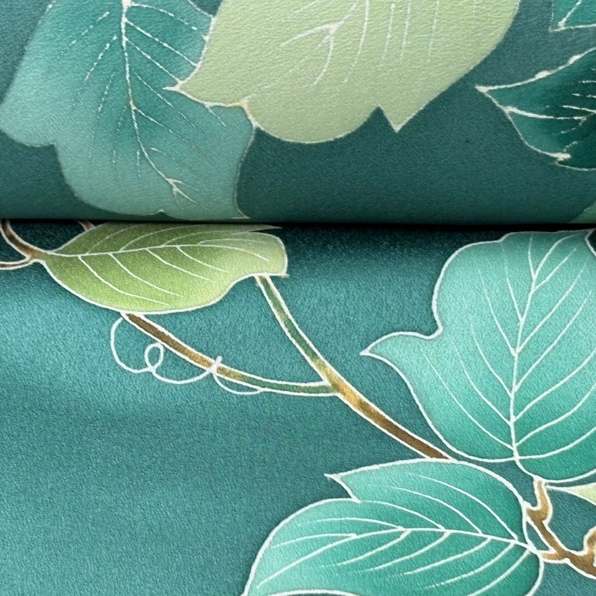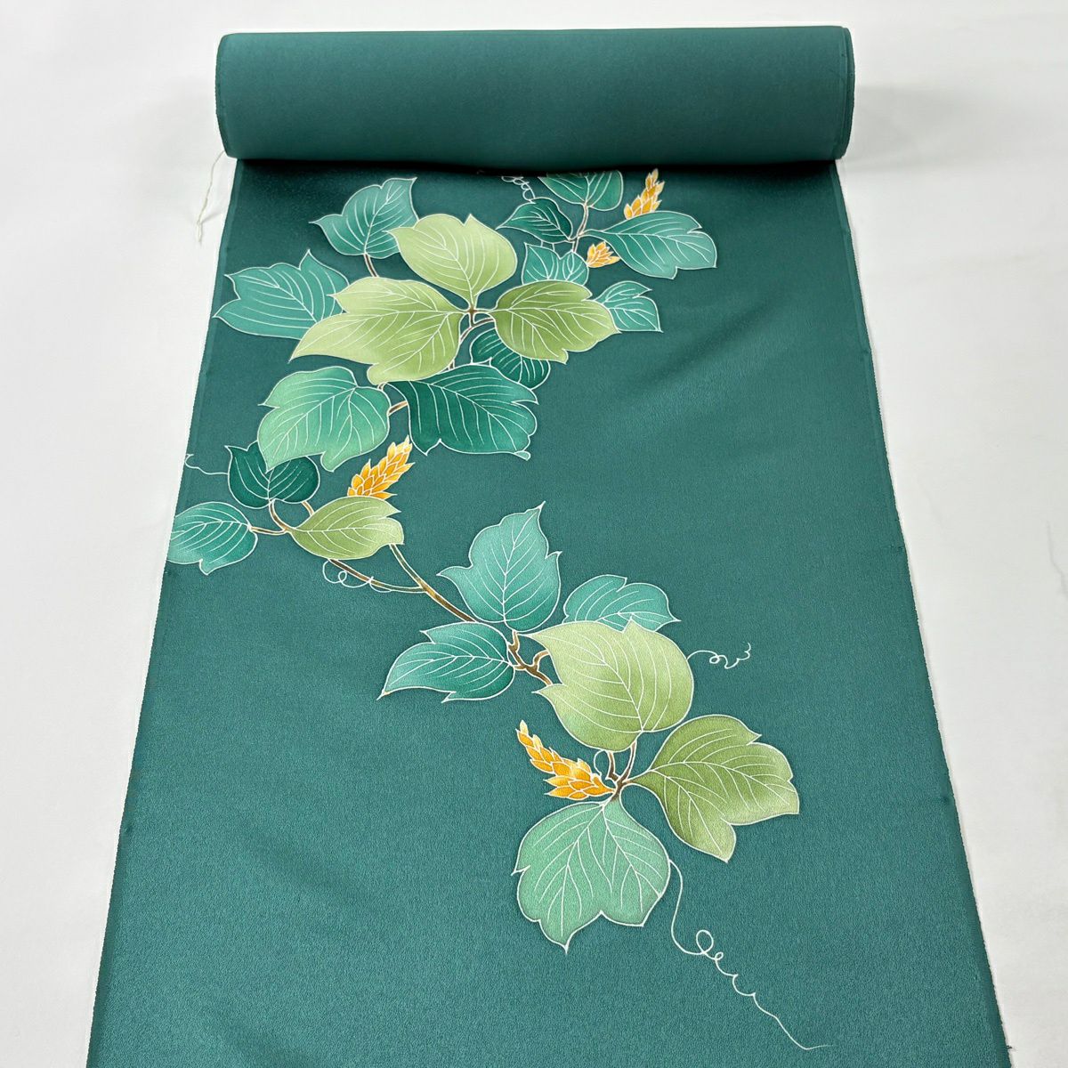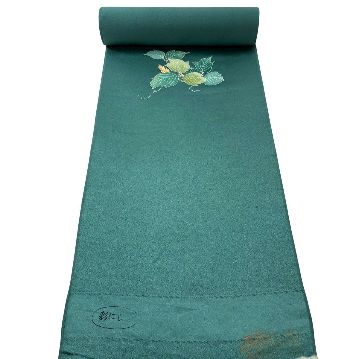 反物 秀品 付下げ 枝花 地紋 緑 正絹
