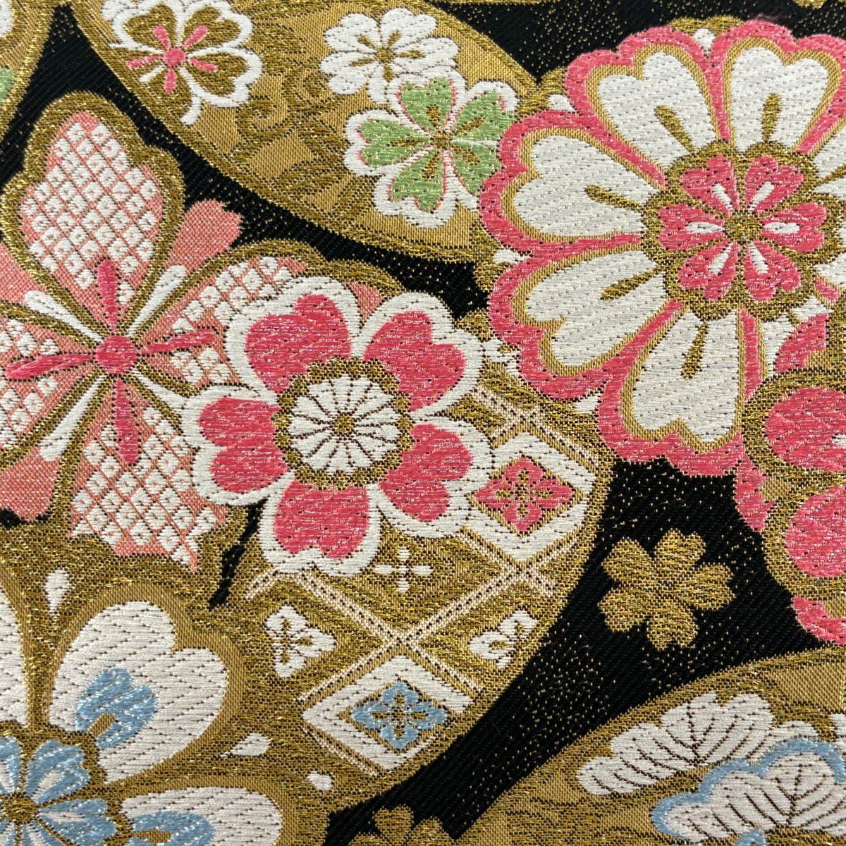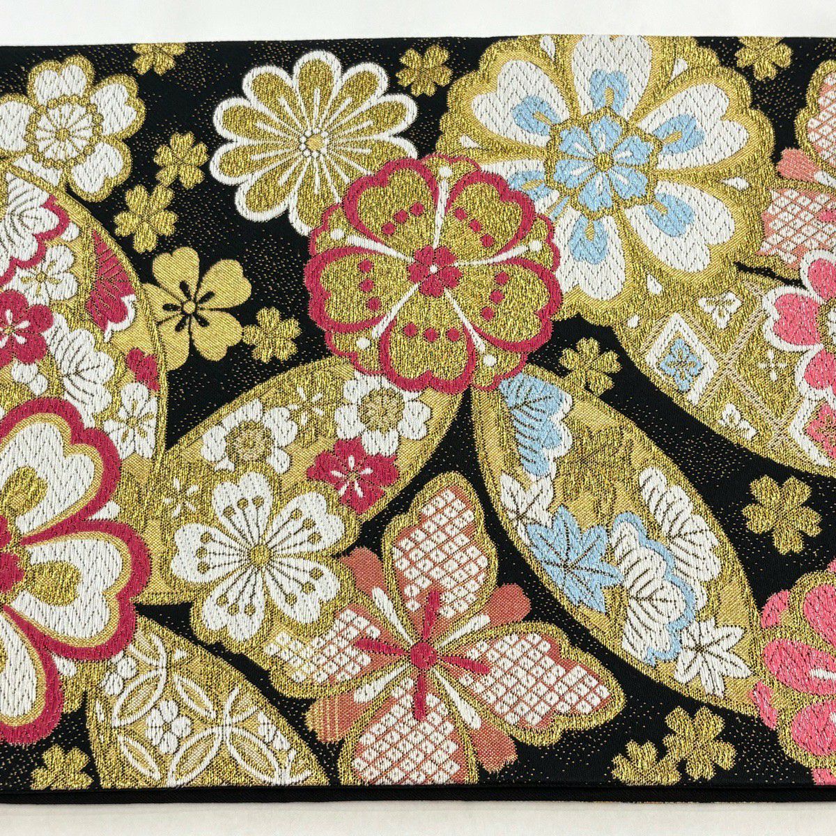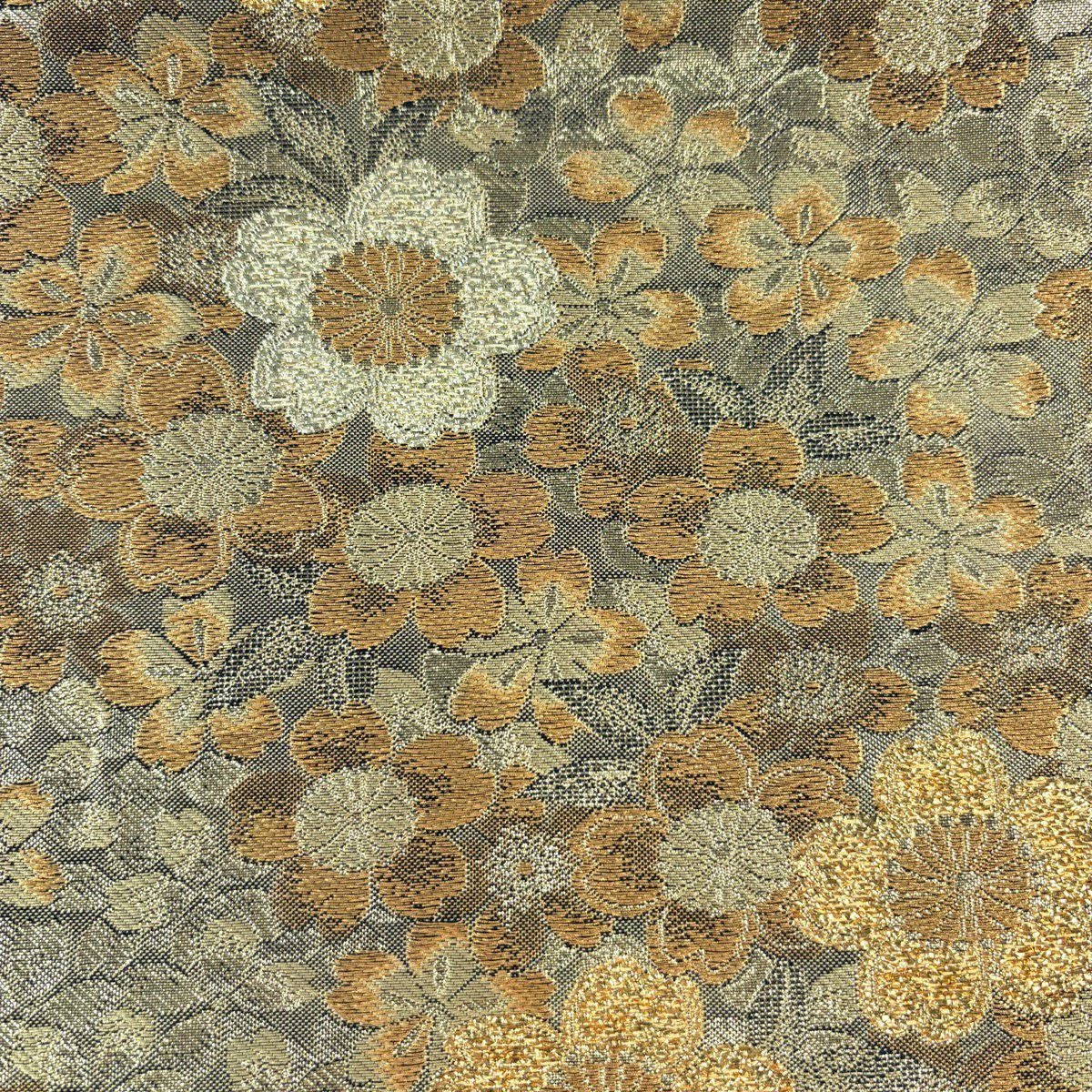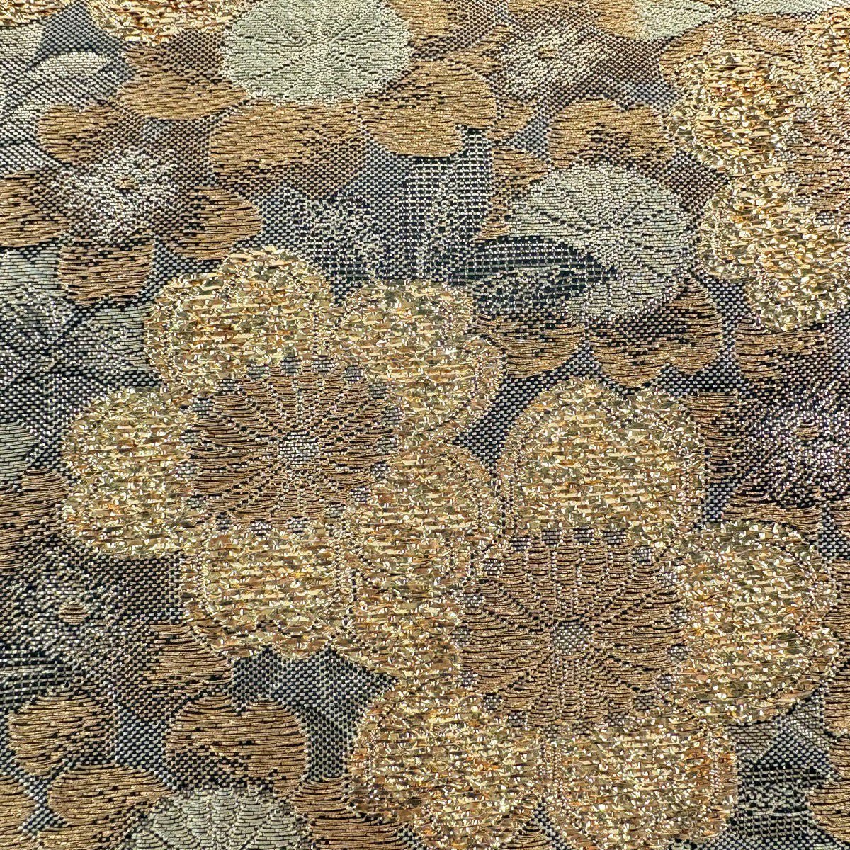 袋帯 秀品 桜 箔 金糸 黒 六通 正絹