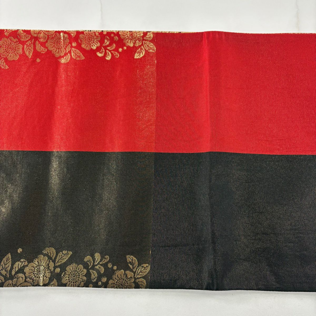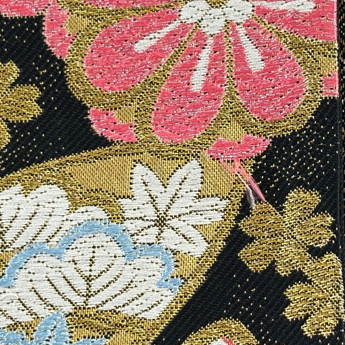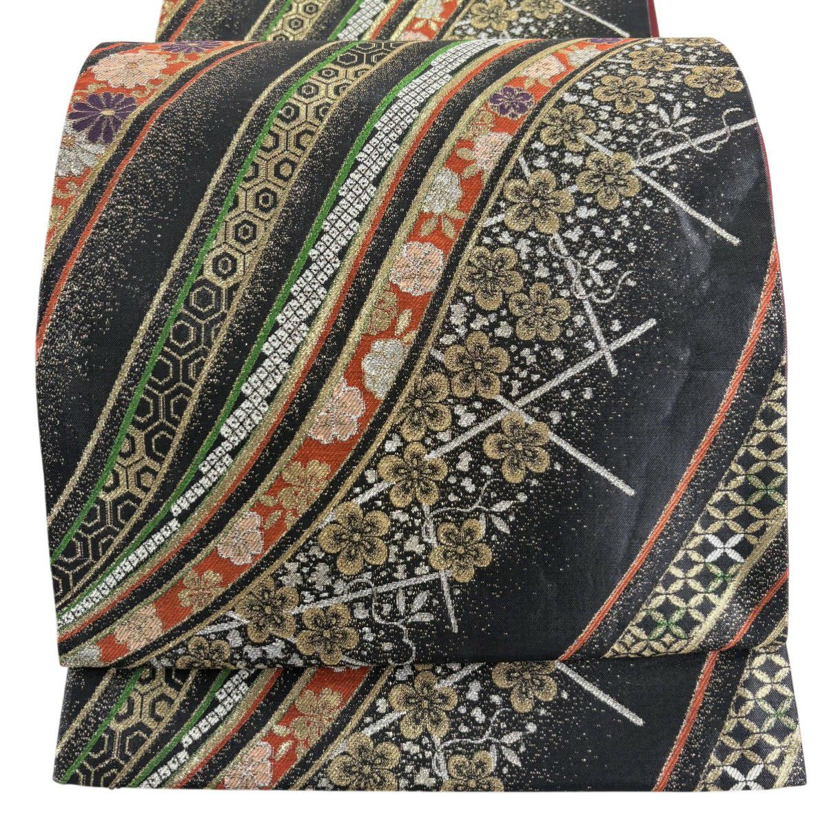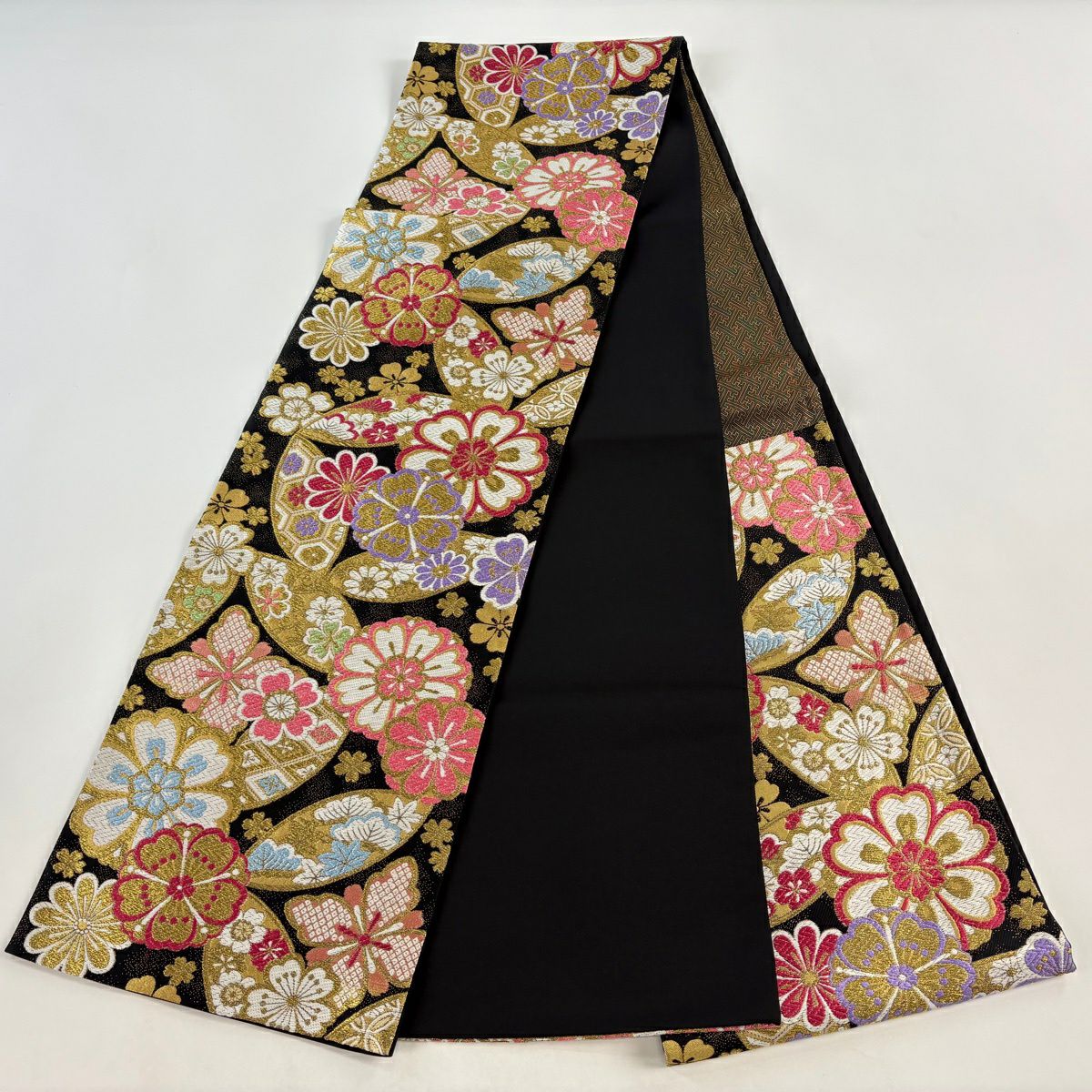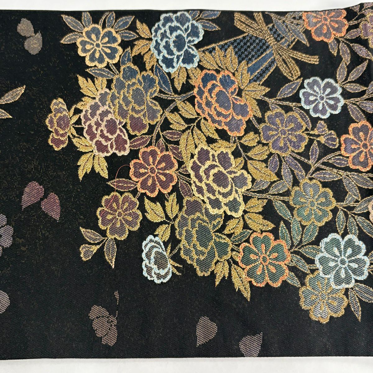 袋帯 秀品 桜 箔 金糸 黒 六通 正絹