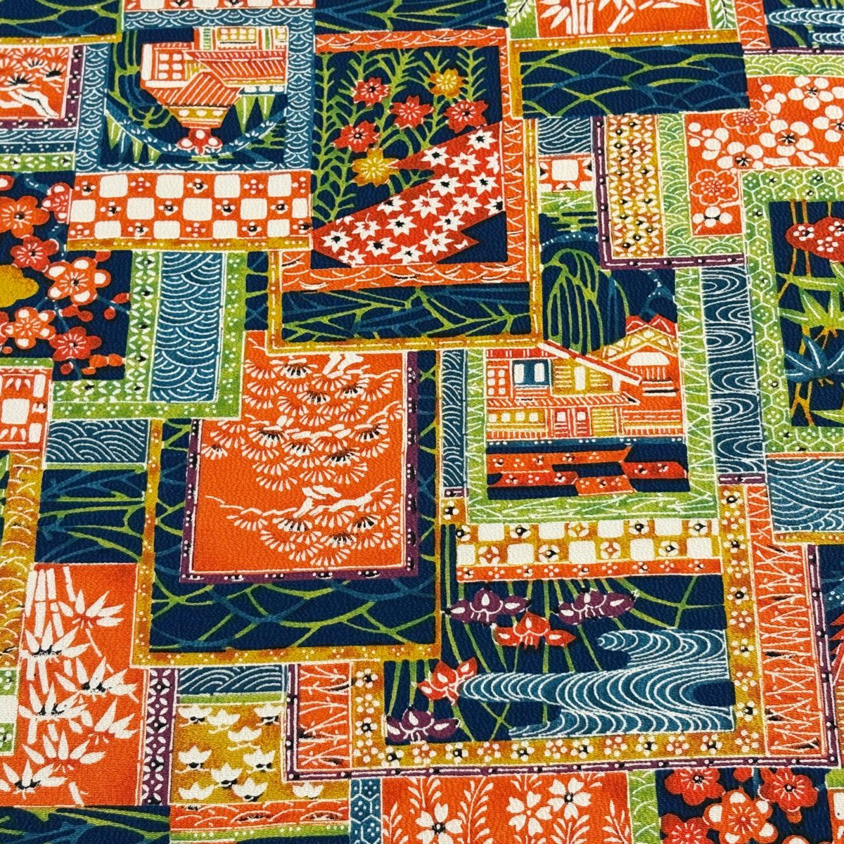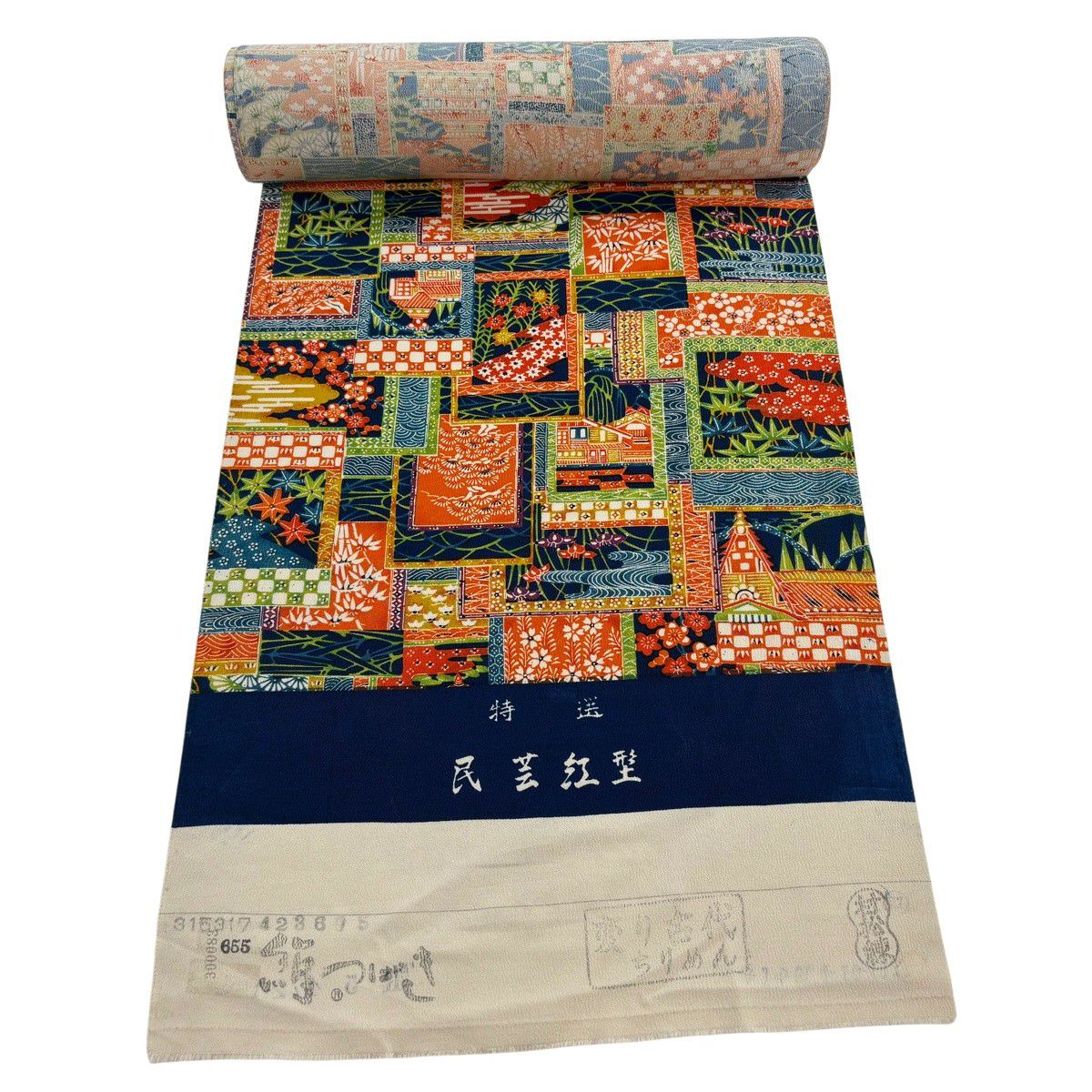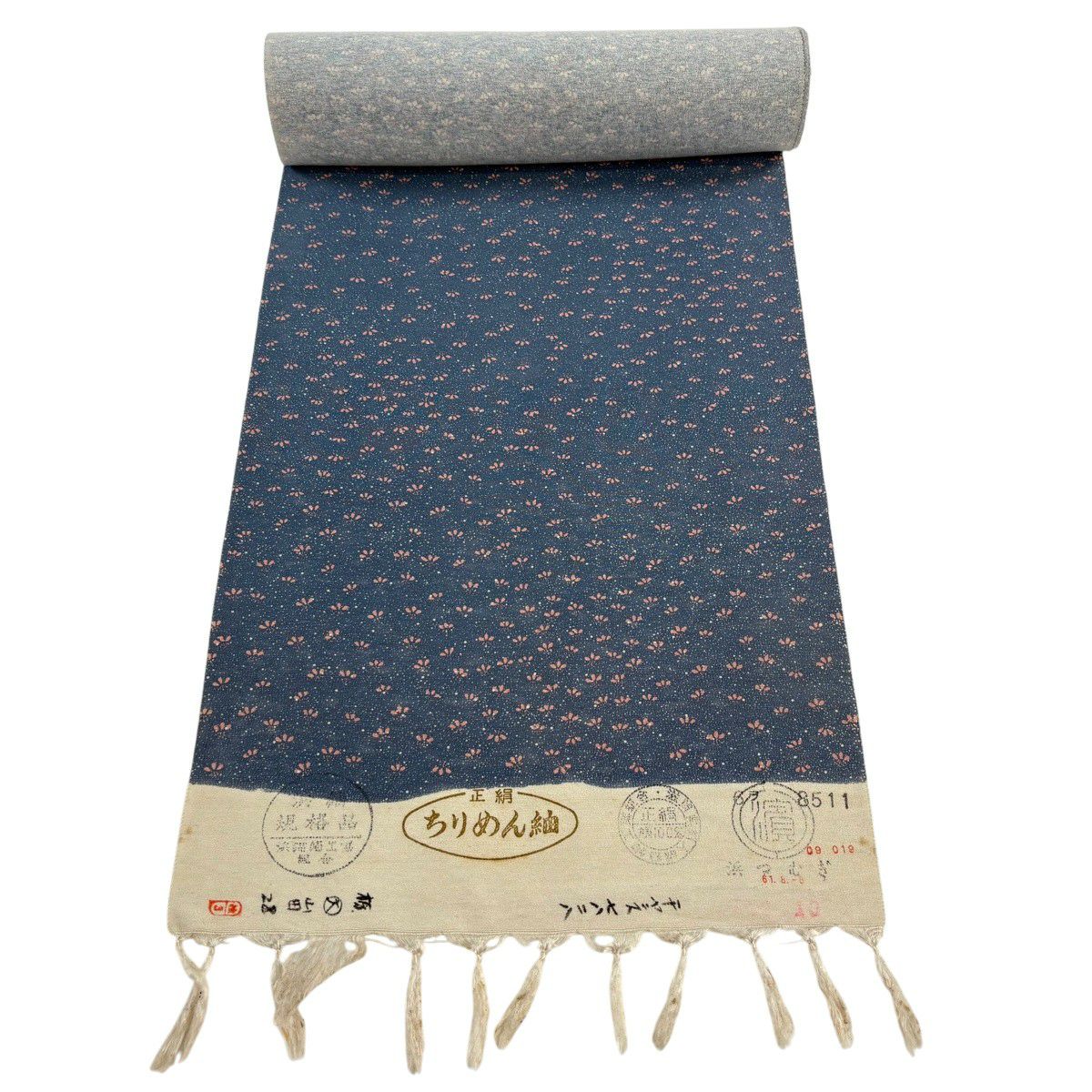 反物 秀品 小紋 草花 建物 紺色 正絹