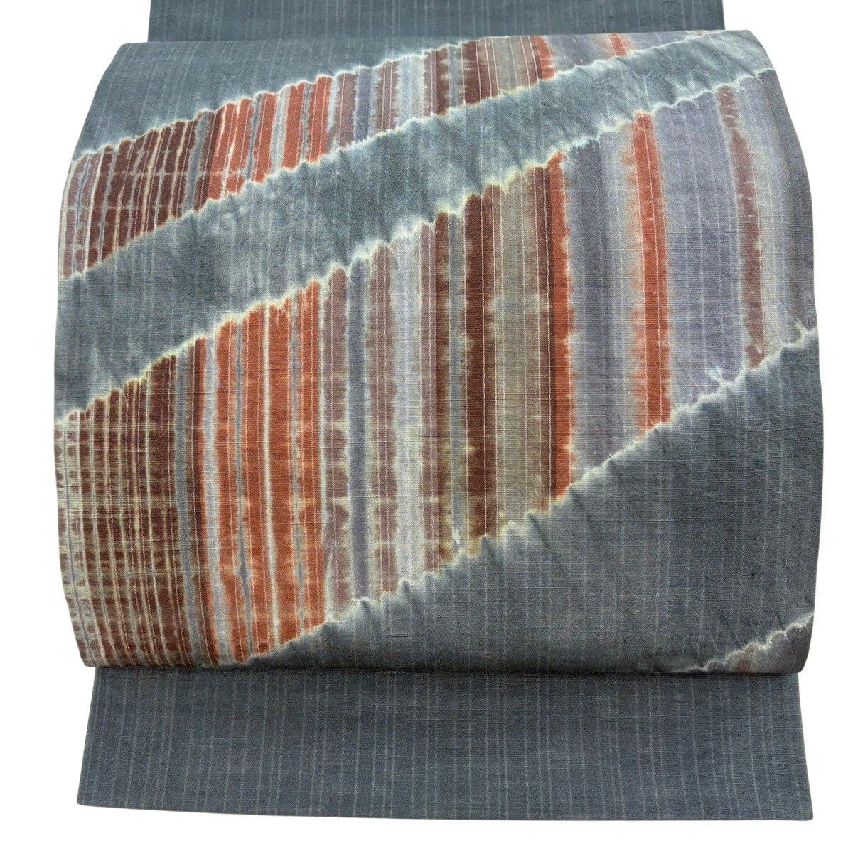 袋名古屋帯 秀品 縞 絞り 青灰色 正絹