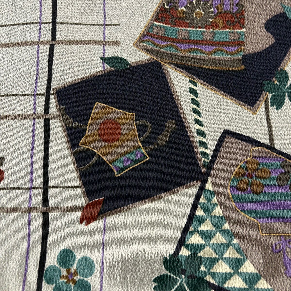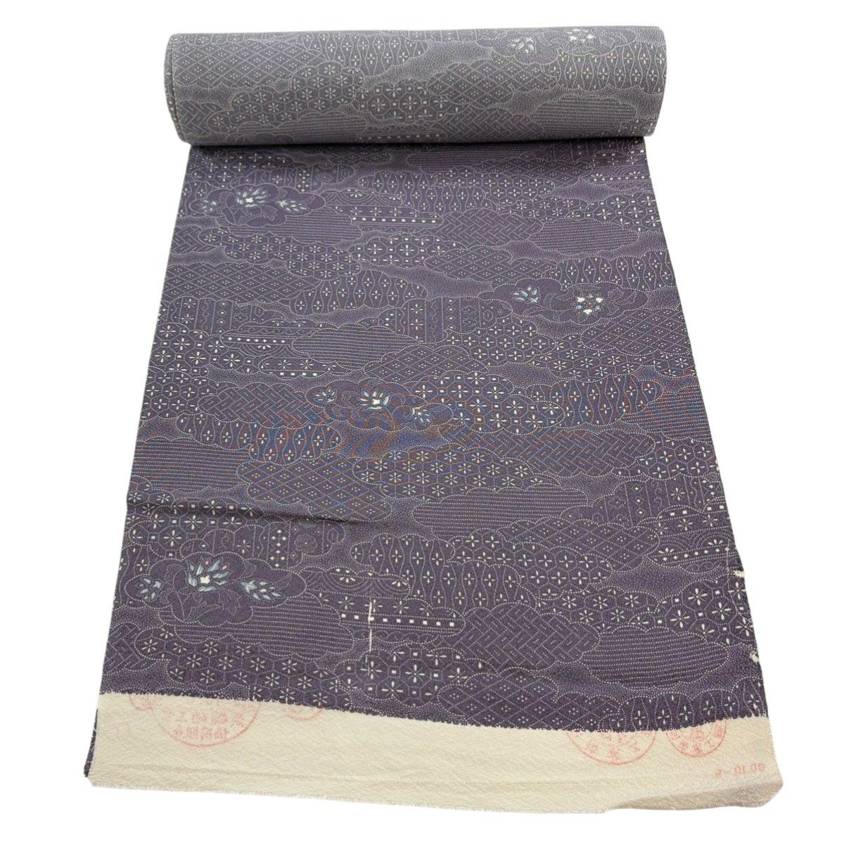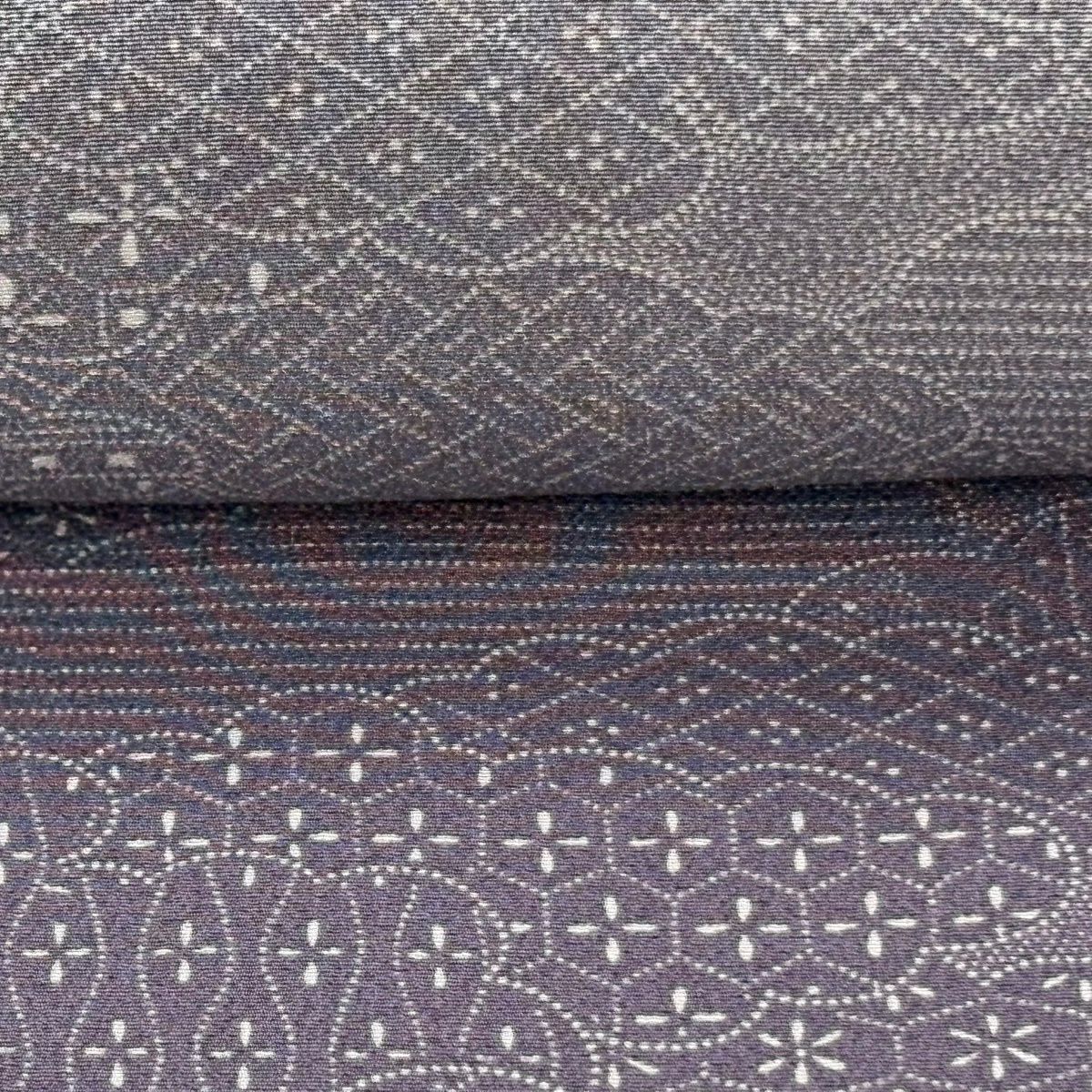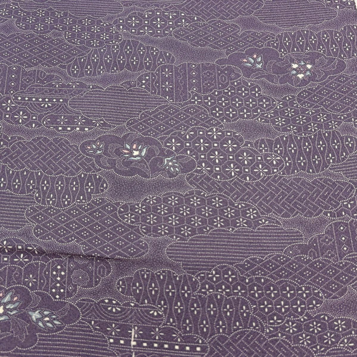 反物 秀品 小紋 花 幾何学 灰紫 正絹
