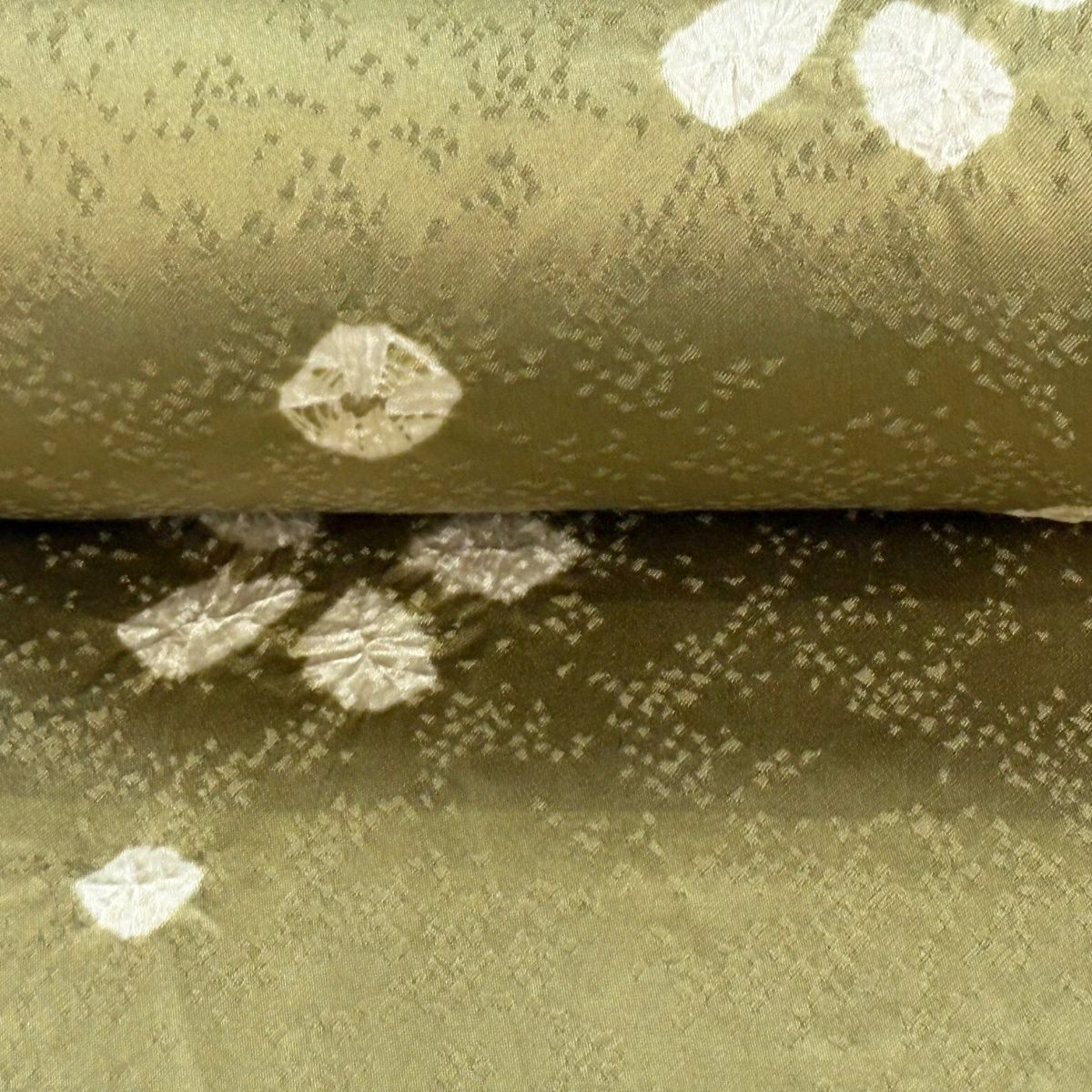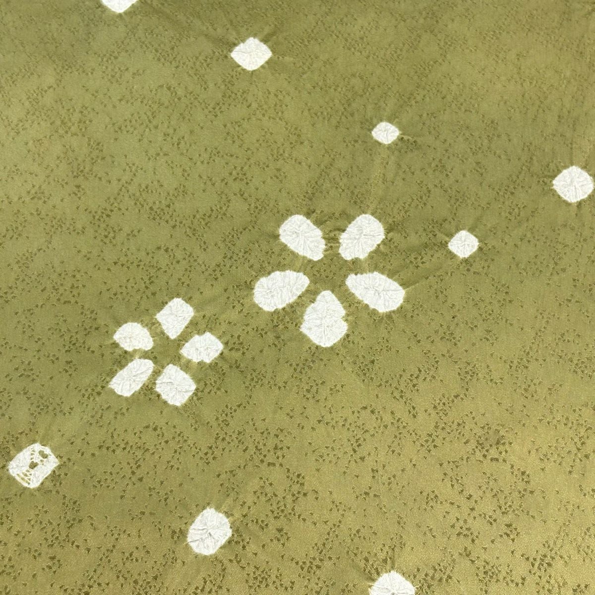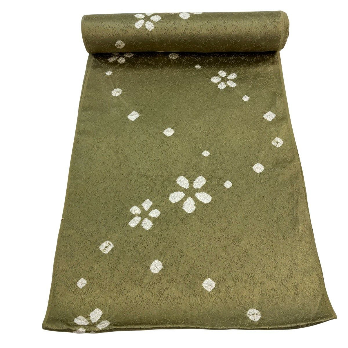 反物 秀品 小紋 花 絞り 茶緑色 正絹