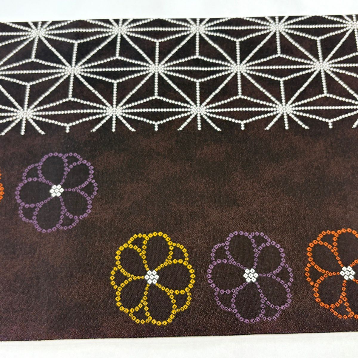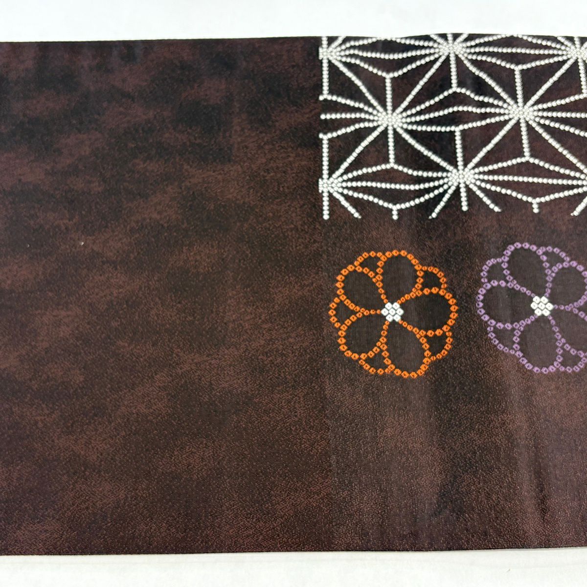 袋帯 秀品 麻の葉 花 茶紫 六通 正絹