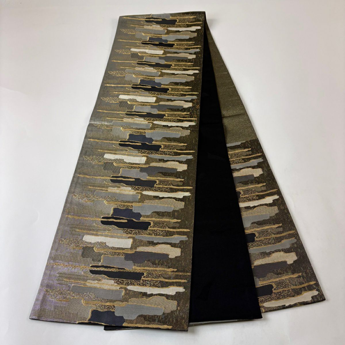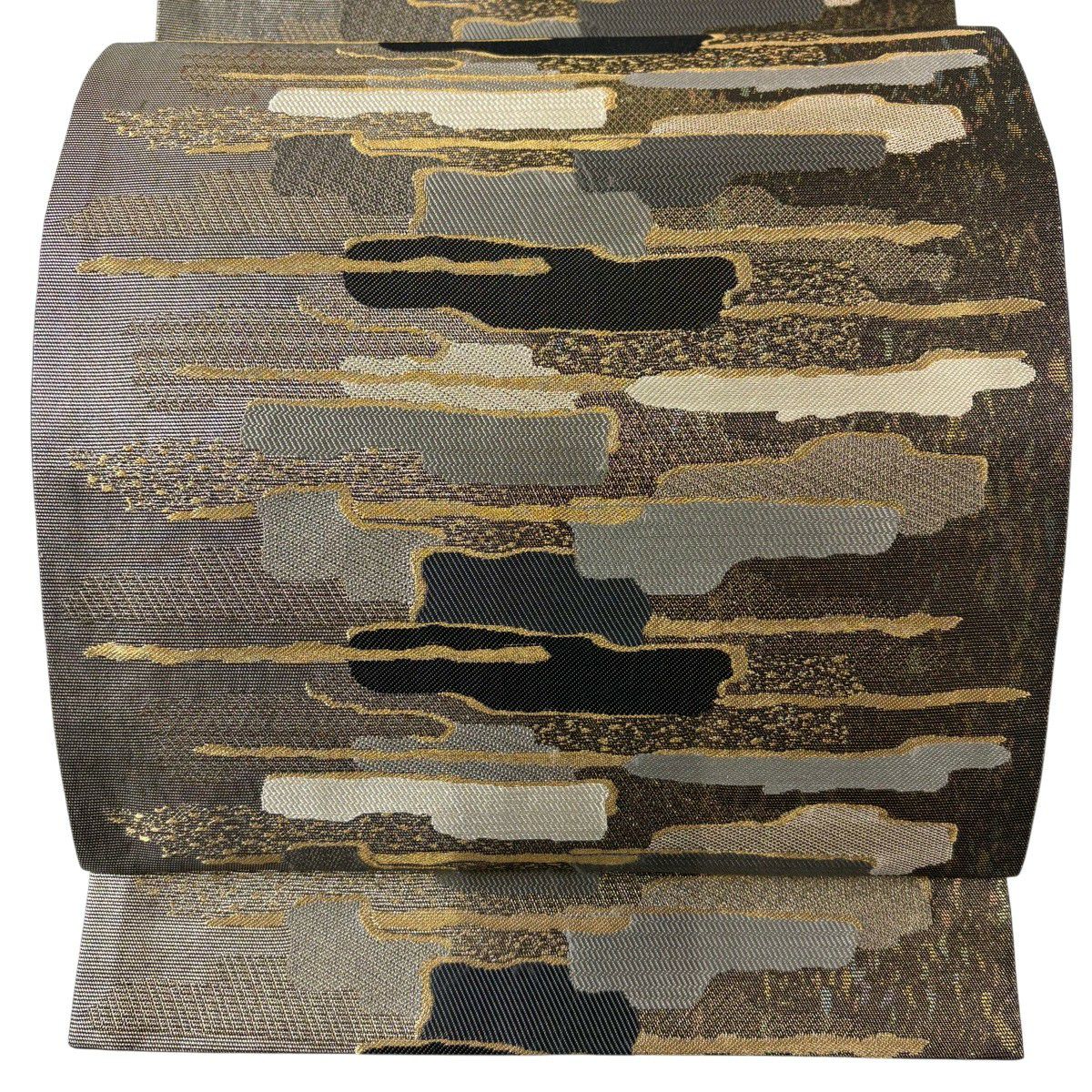 袋名古屋帯 秀品 幾何学 箔 墨色 正絹