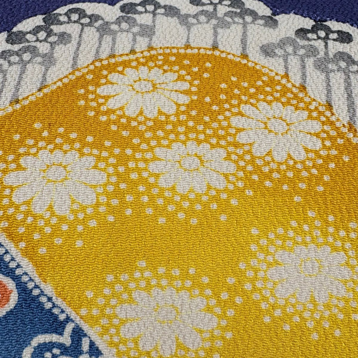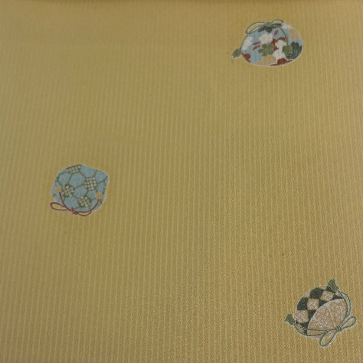 反物 秀品 小紋 巾着 地紋 黄色 正絹