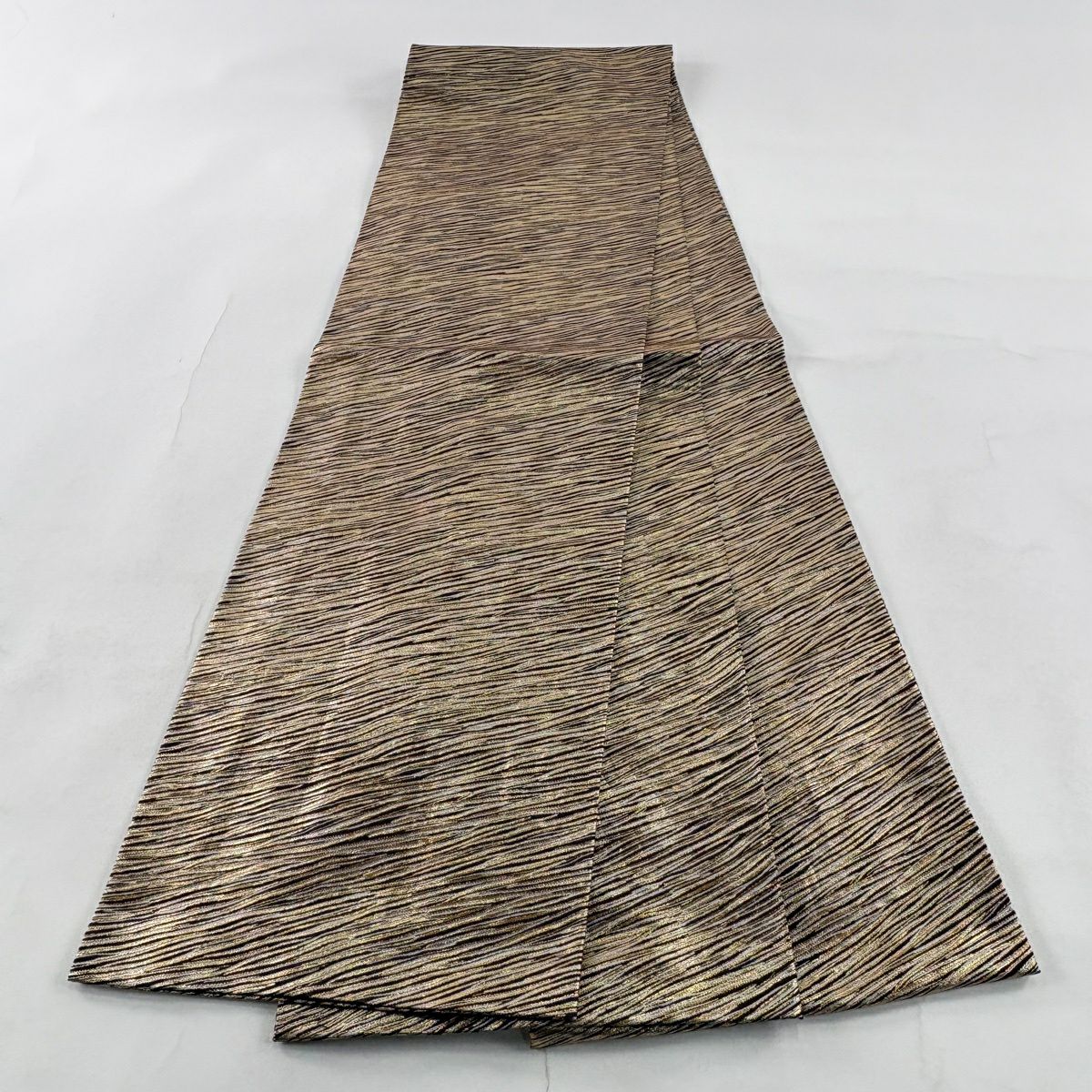 袋帯 秀品 縞 金糸 金茶 お太鼓柄 正絹