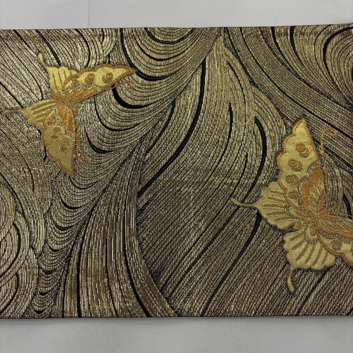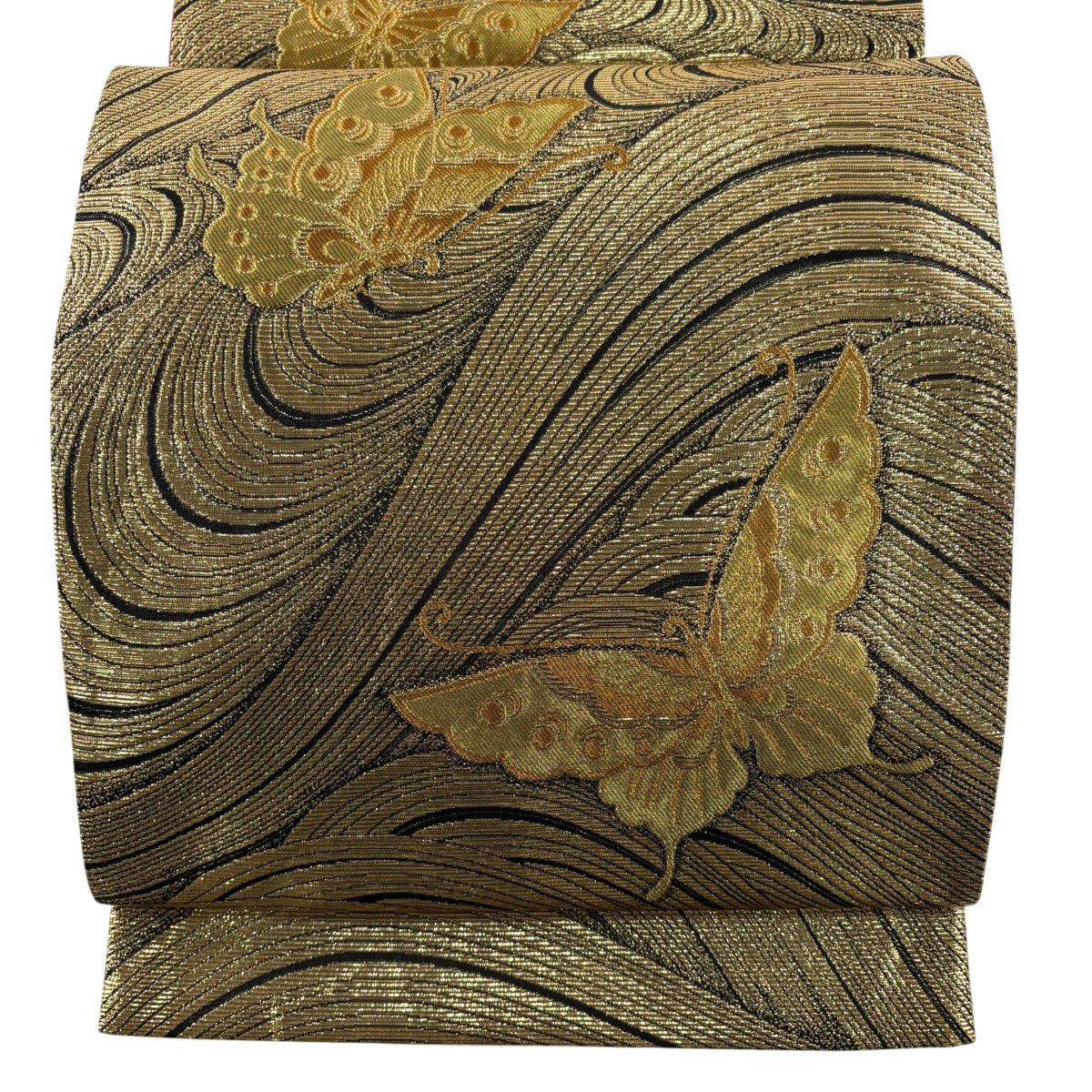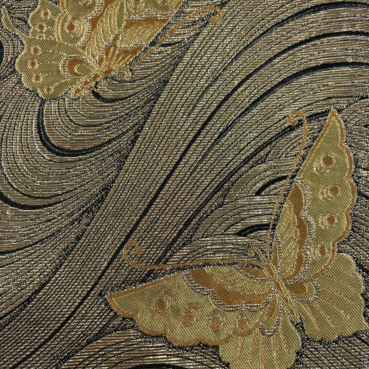 袋帯 秀品 蝶 波 箔 金色 全通 正絹