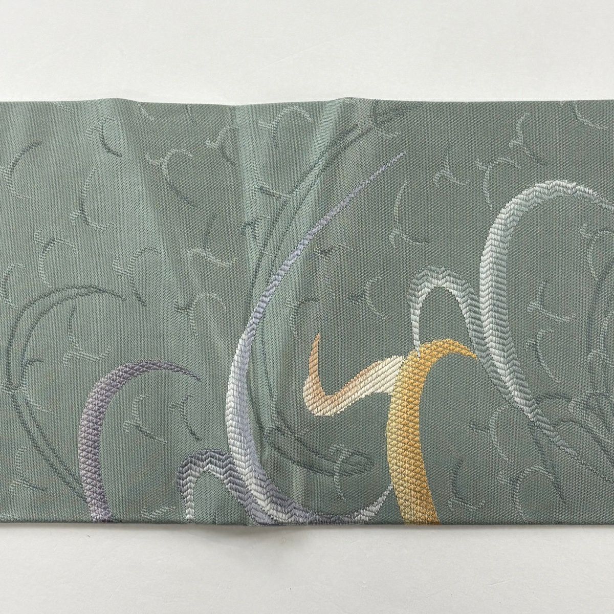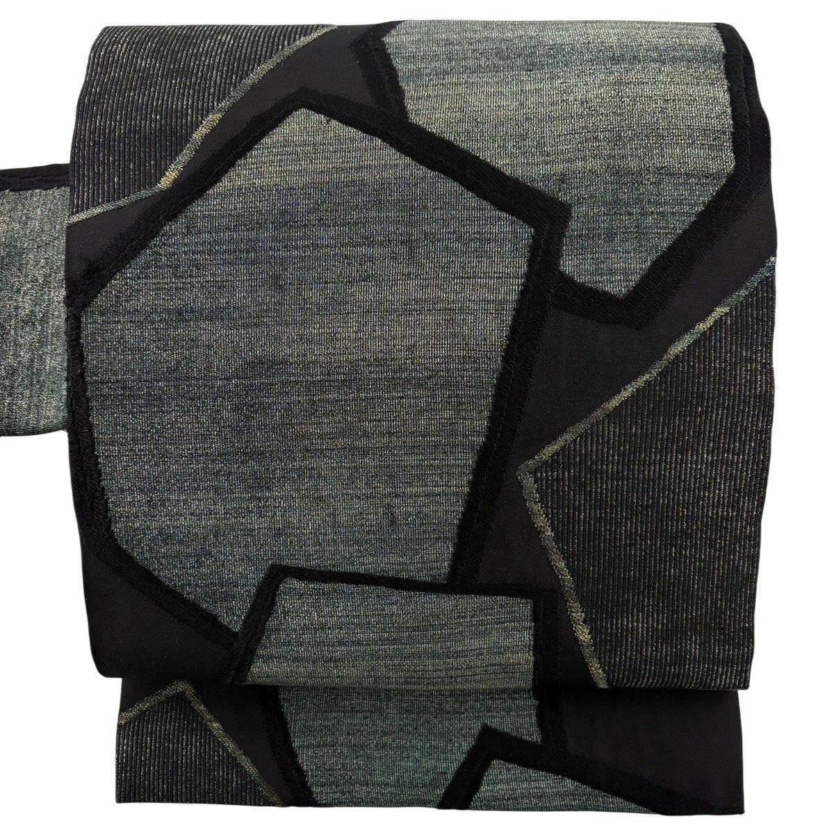 名古屋帯 秀品 幾何学 金彩 灰緑 正絹