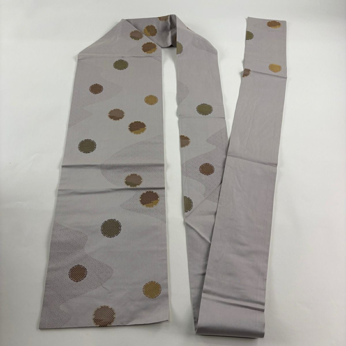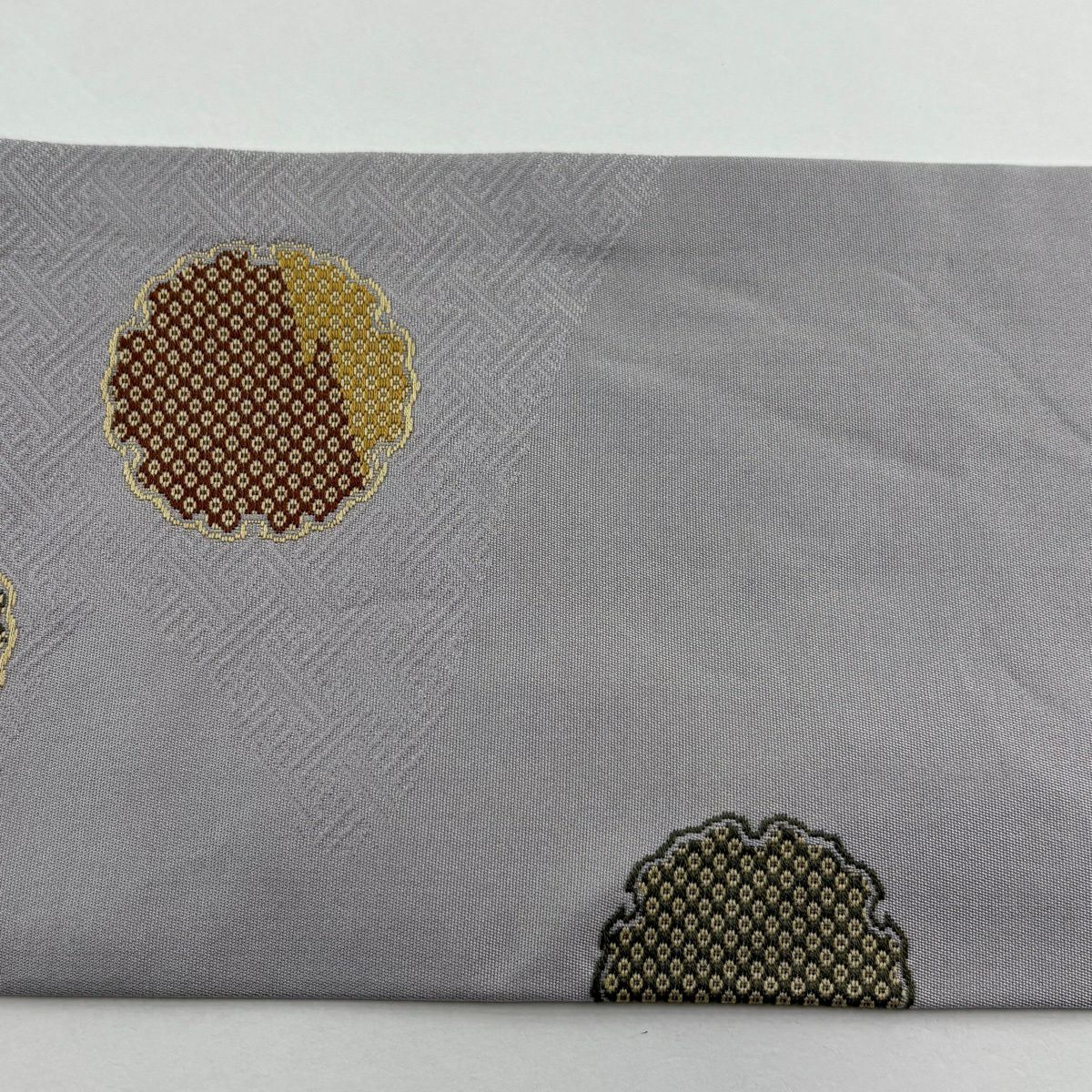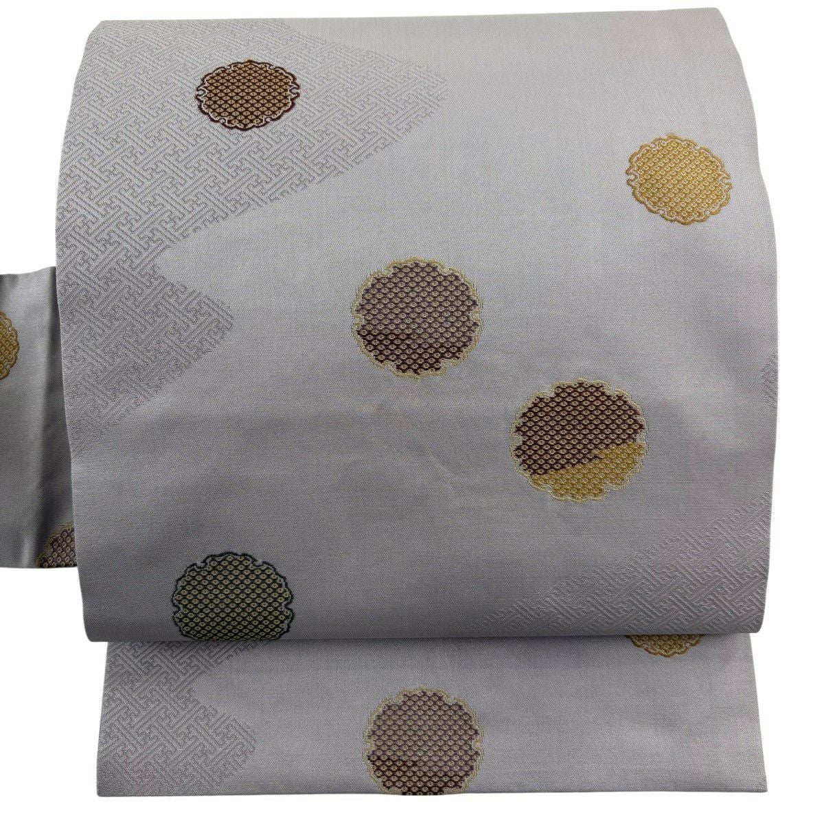 名古屋帯 秀品 雪輪 紗綾型 灰紫 正絹