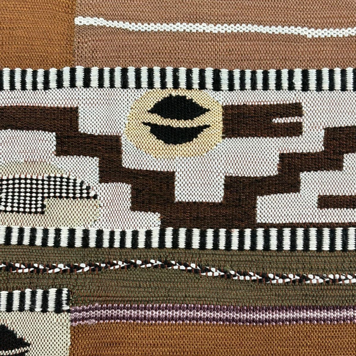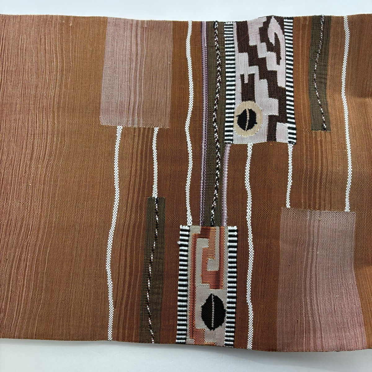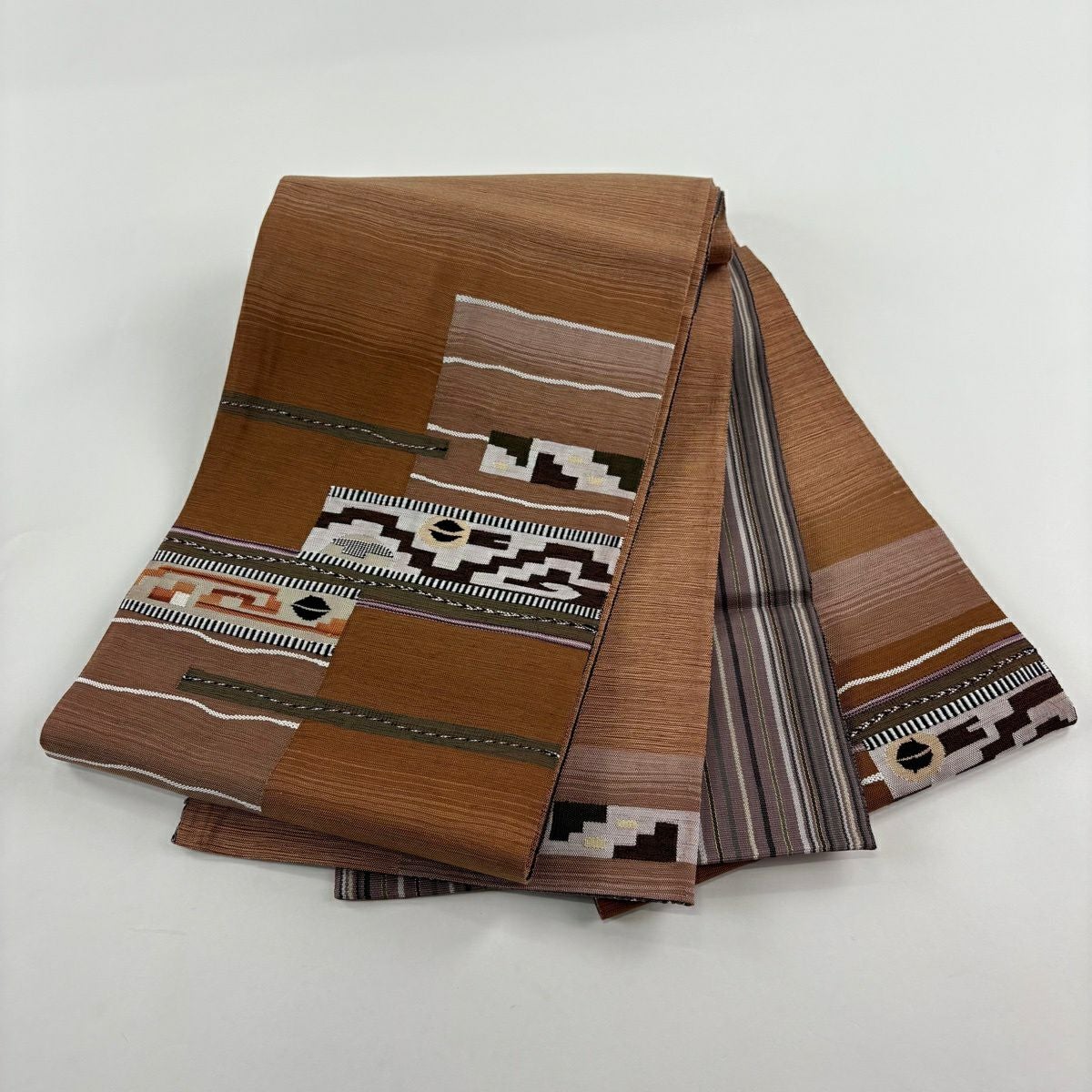 袋帯 秀品 幾何学 茶色 お太鼓柄 正絹
