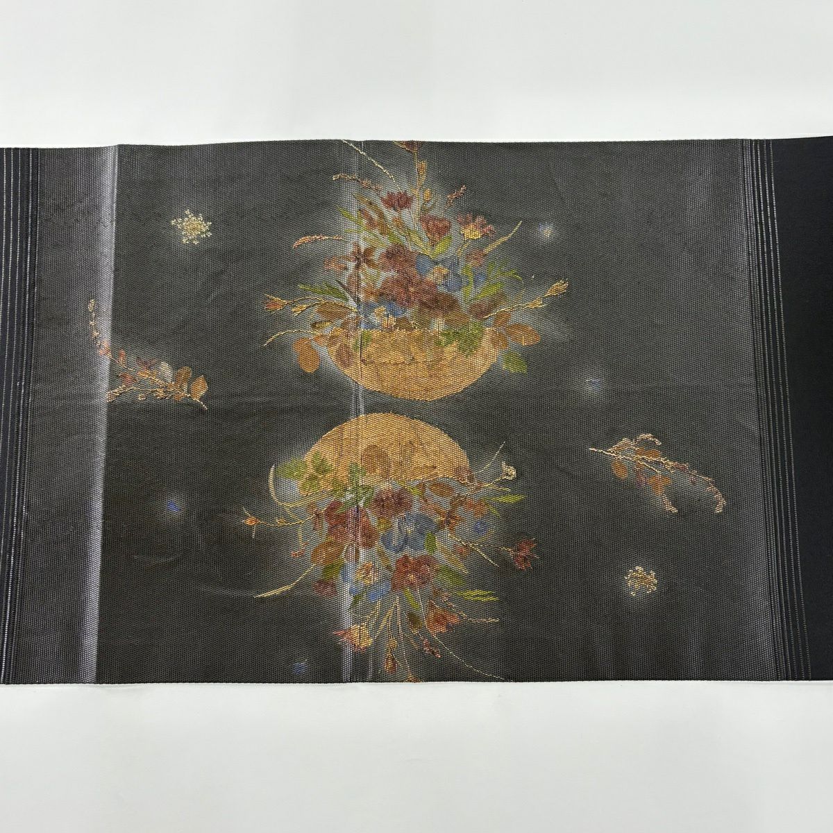 袋帯 秀品 花束 桜 箔 黒 六通 正絹
